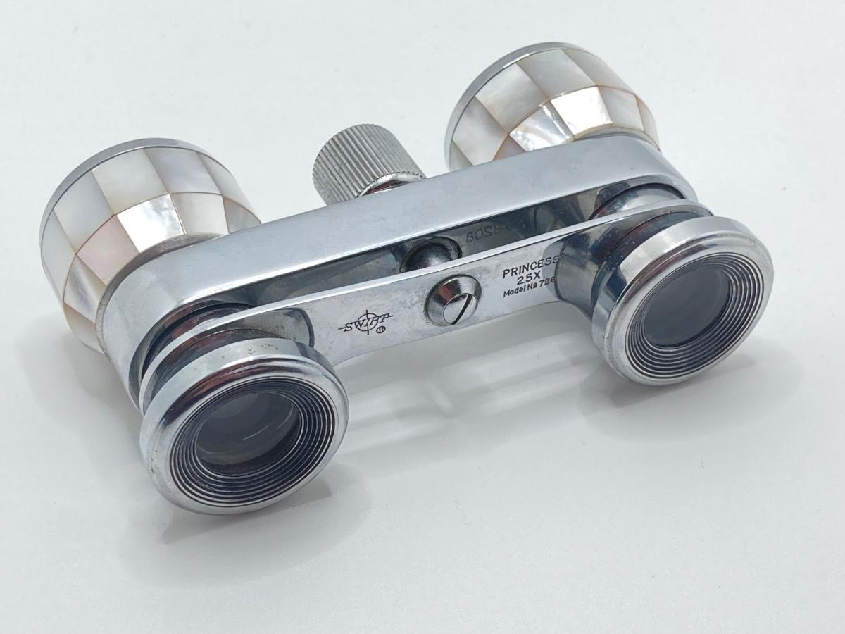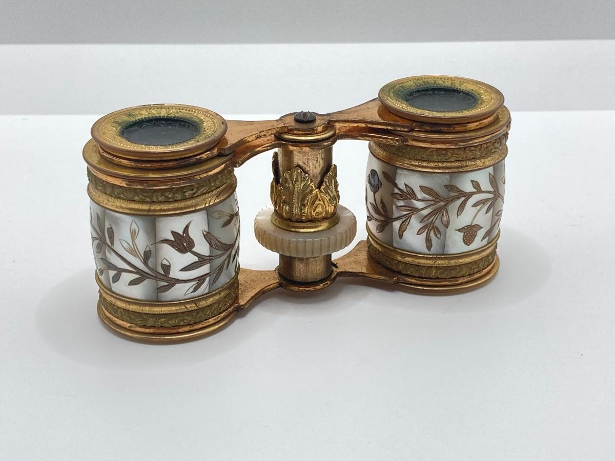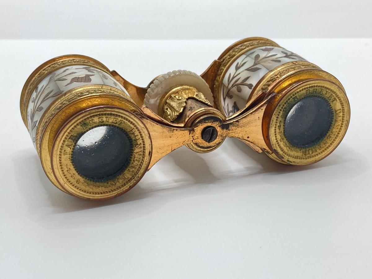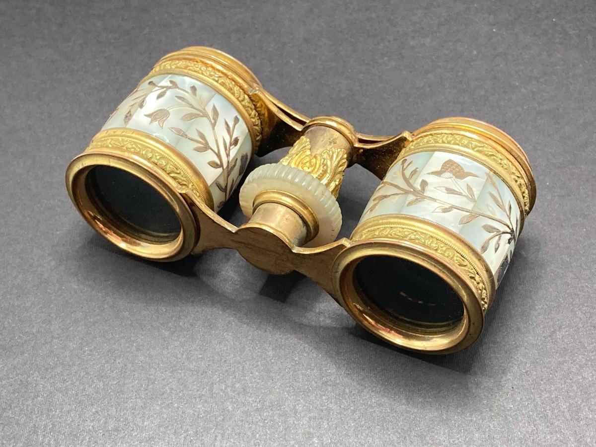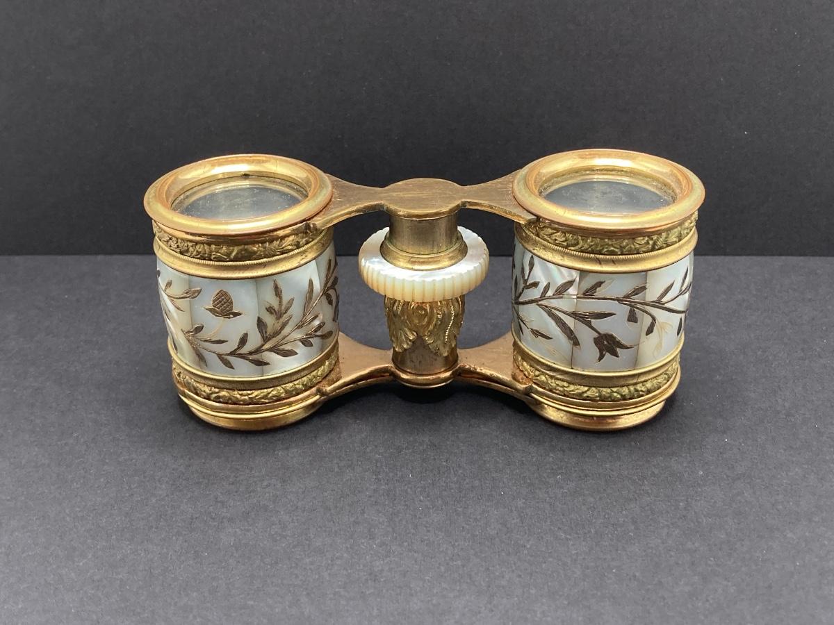 LOT 252: Pair of Stunning Mother of Pearl Opera Glasses with Cases - French Par Brevet Dinvention and Swift Princess 25X Model No 726