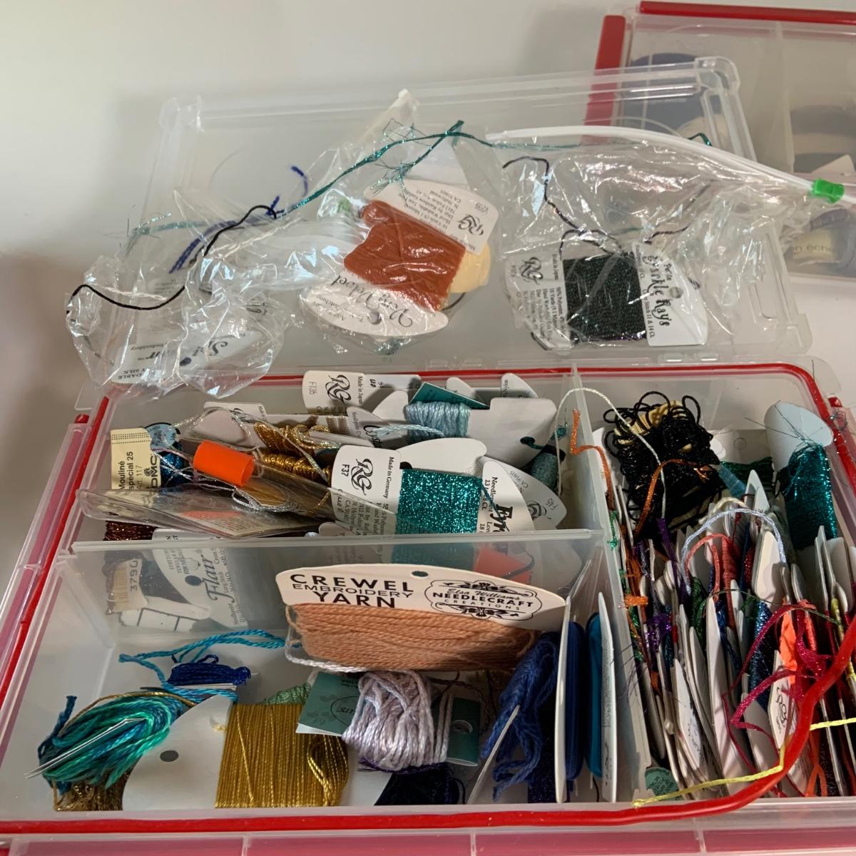 LOT:281: Embroidery Floss/Yarns, Beads, Scissors, Books on Traditional Jewish Crafting, Misc Supplies