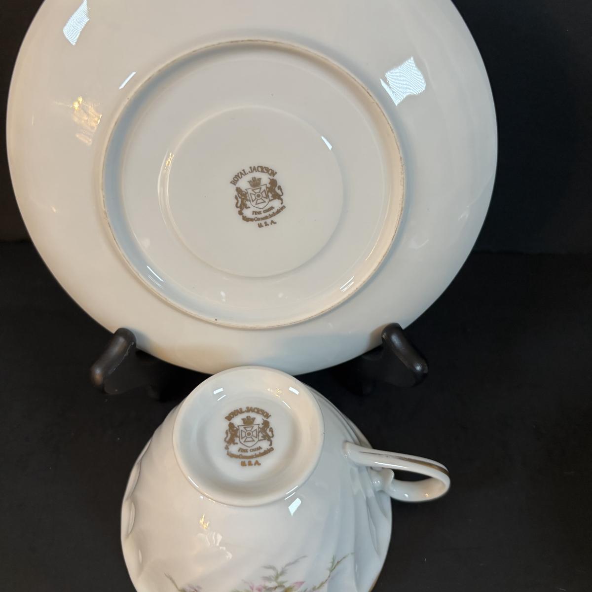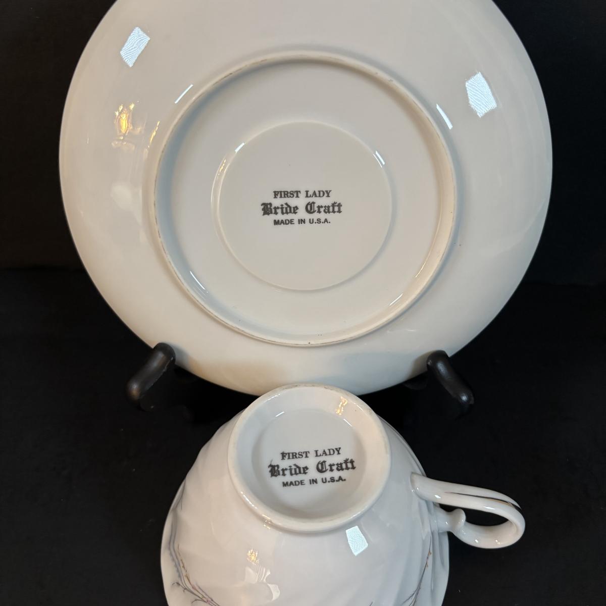 LOT 302: Vintage Teacups & Dessert Plates: Imperial Bohemian, Czechoslovakia: Churchill, Made in England: Bavaria: Royal Jackson: First Lady Bride Craft & Others