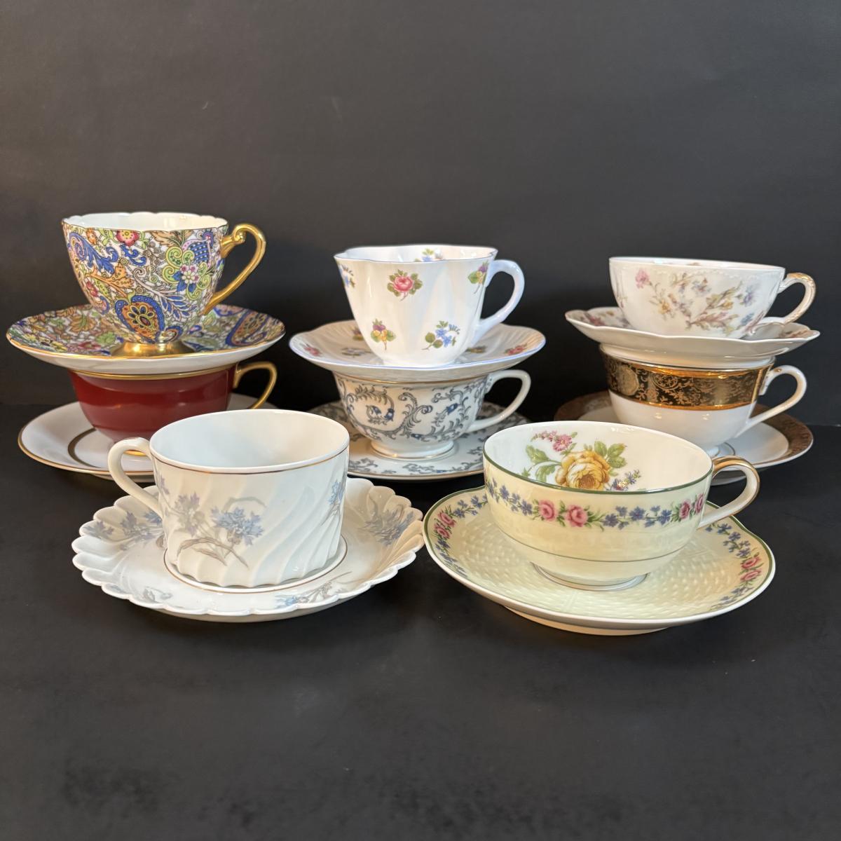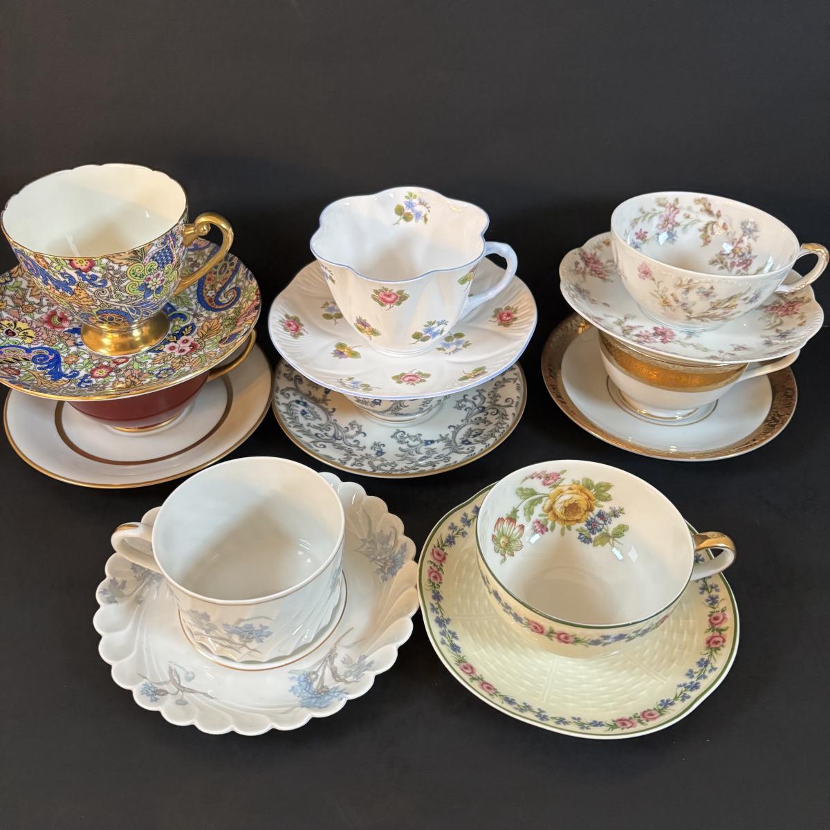 LOT 304: Vintage Teacup Collection Featuring a Wright Tyndale & Van Roden of Philadelphia Limoges Teacup, Bergere Limoges, Shelly & Others