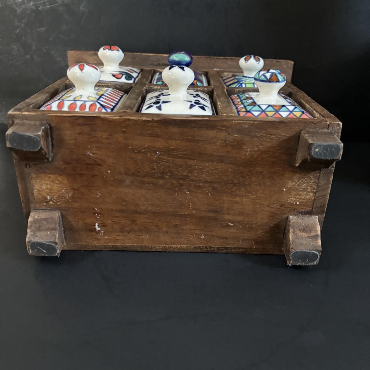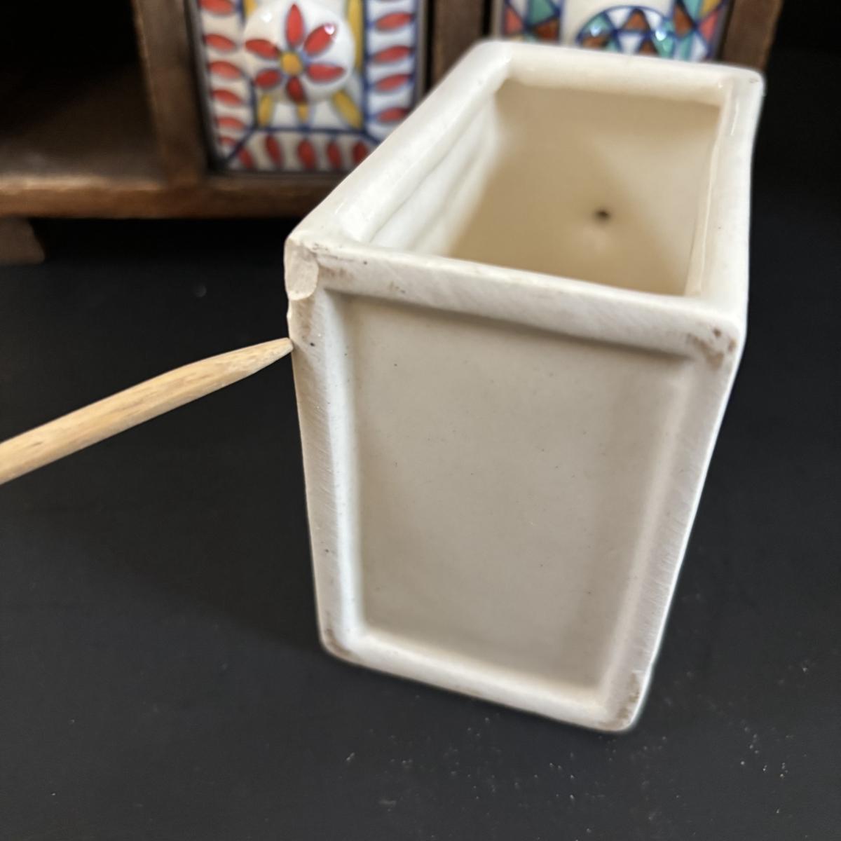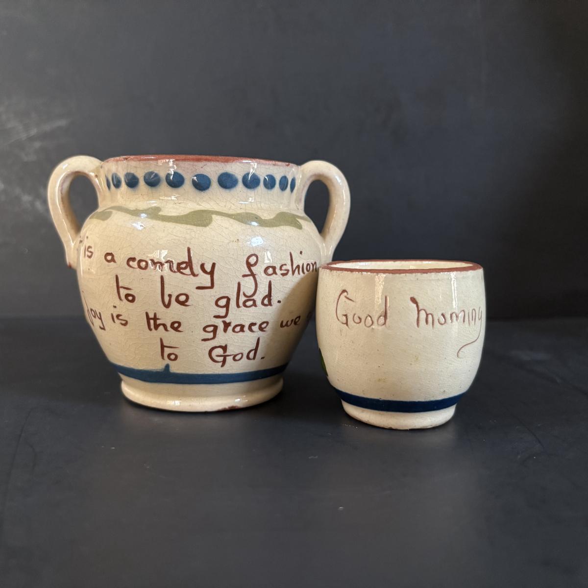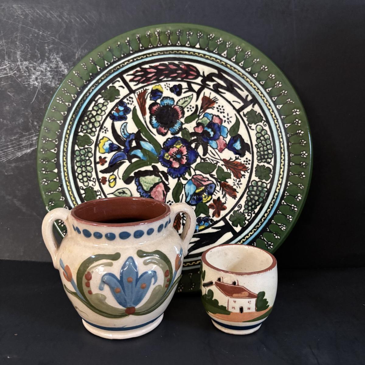 LOT 313: Wooden & Ceramic Apothecary/Spice Cabinet, Hecho En Mexico Pottery Hen Planter, Pottery, Devon Motto Ware Egg Cup & More