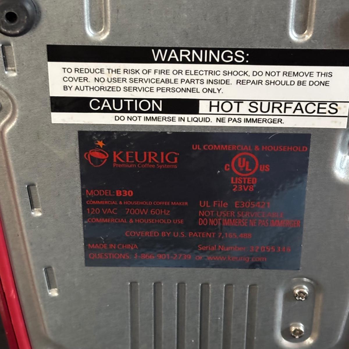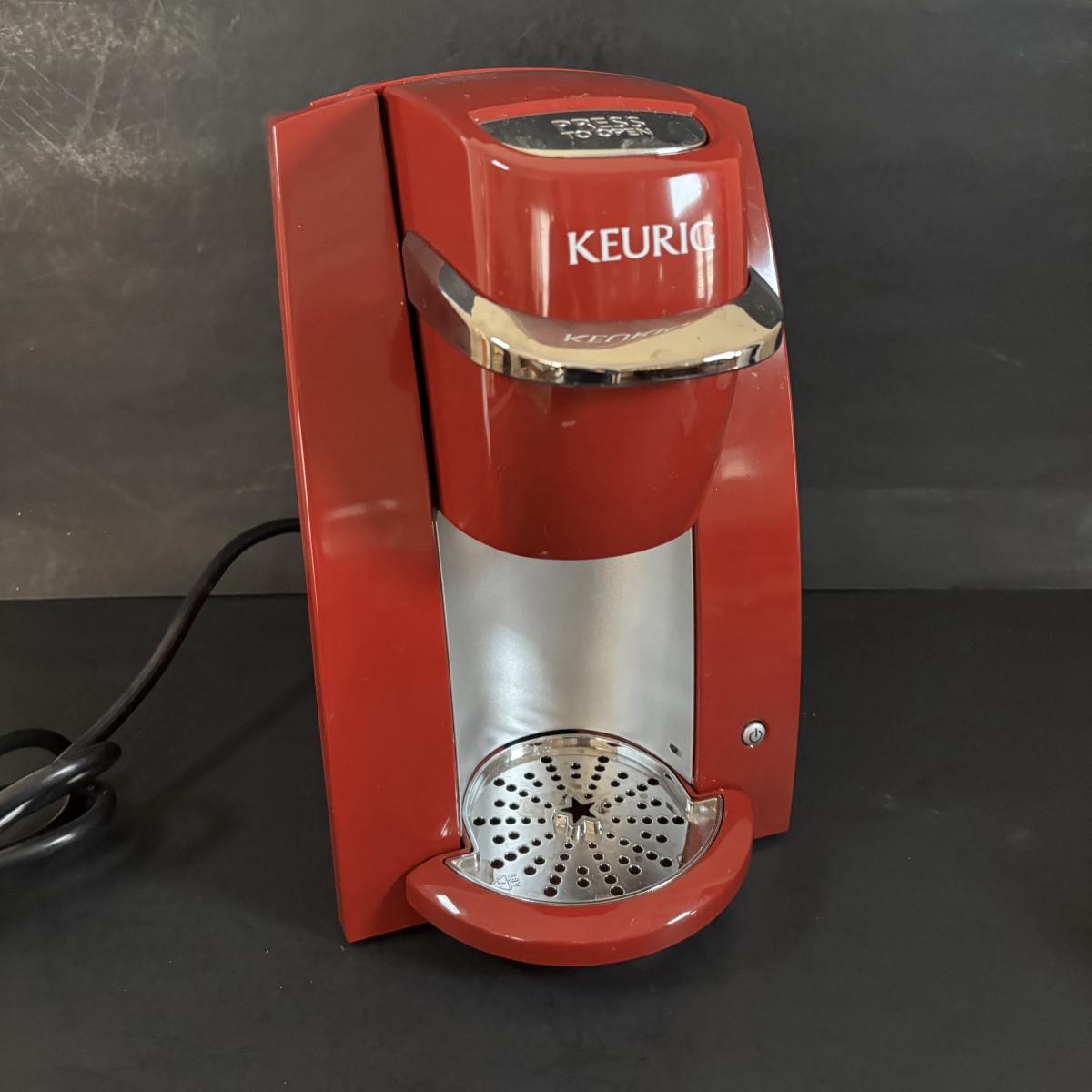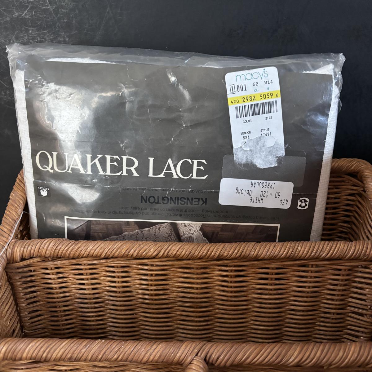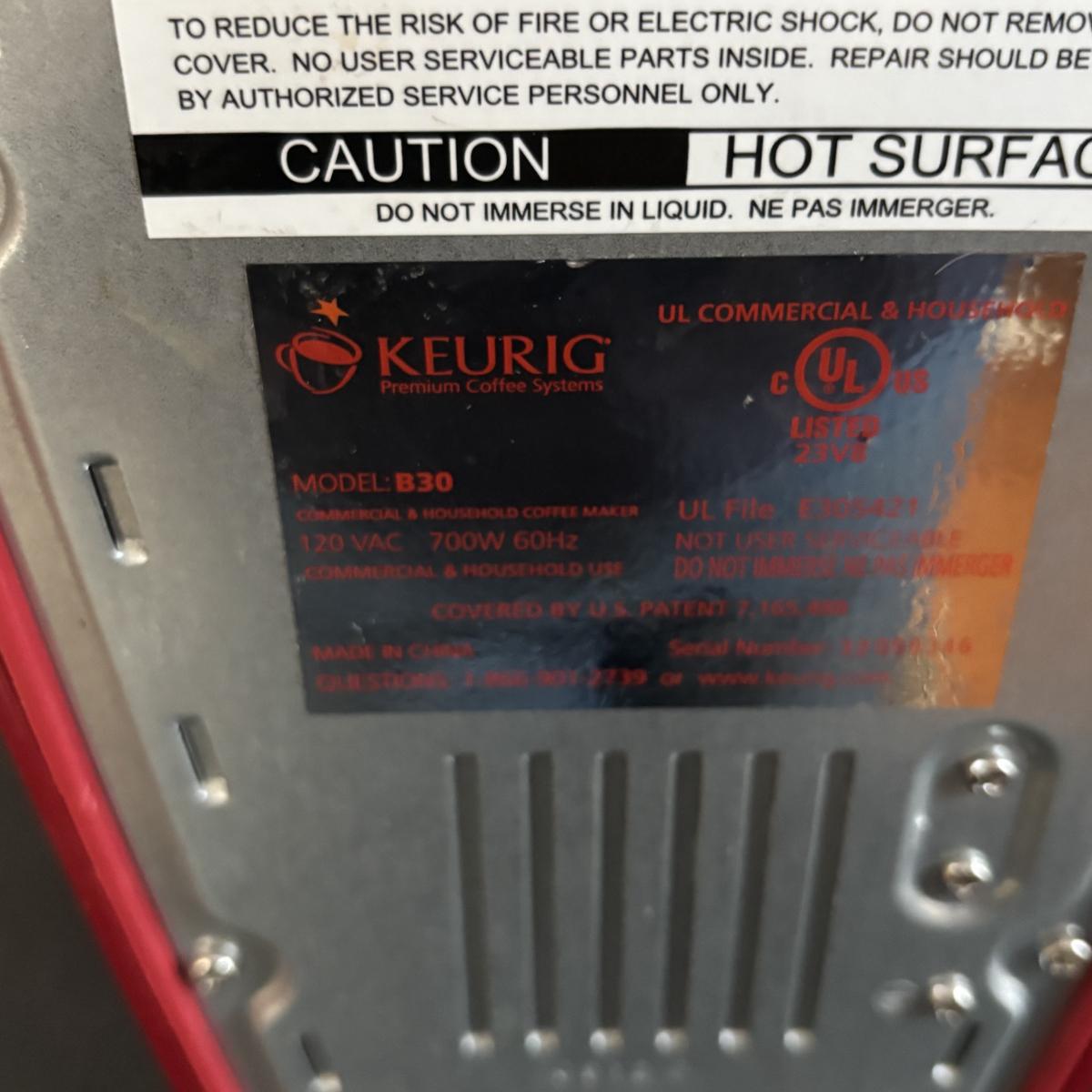 LOT 318: Keurig Model B30, Coffee Mugs, Candles, Quaker Lace Tablecloth & Organizing Basket