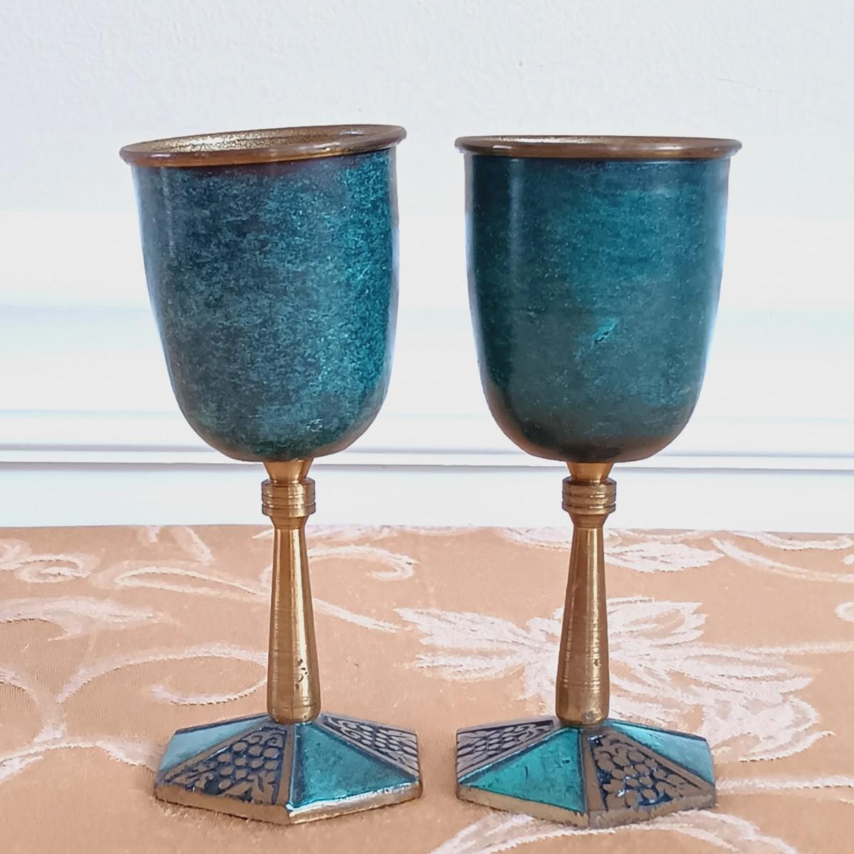 LOT 336: Vintage Brass Kiddush Goblets, Solid Brass Menorah, Embossed Brass Queen of Sheba Plaque & More