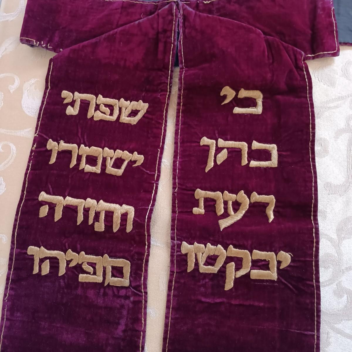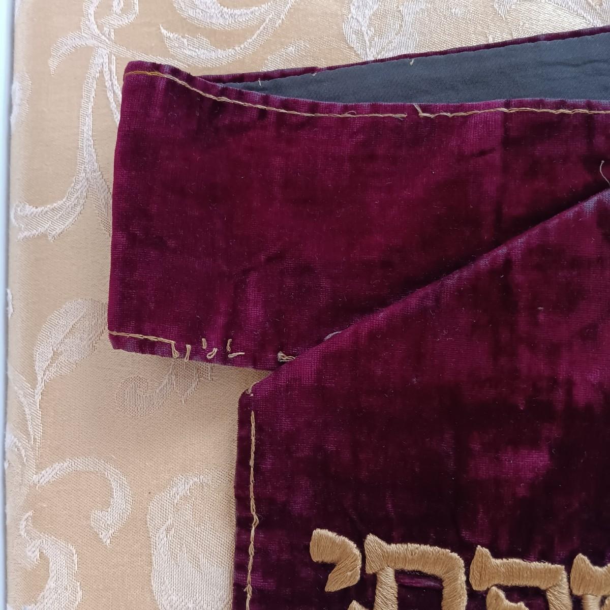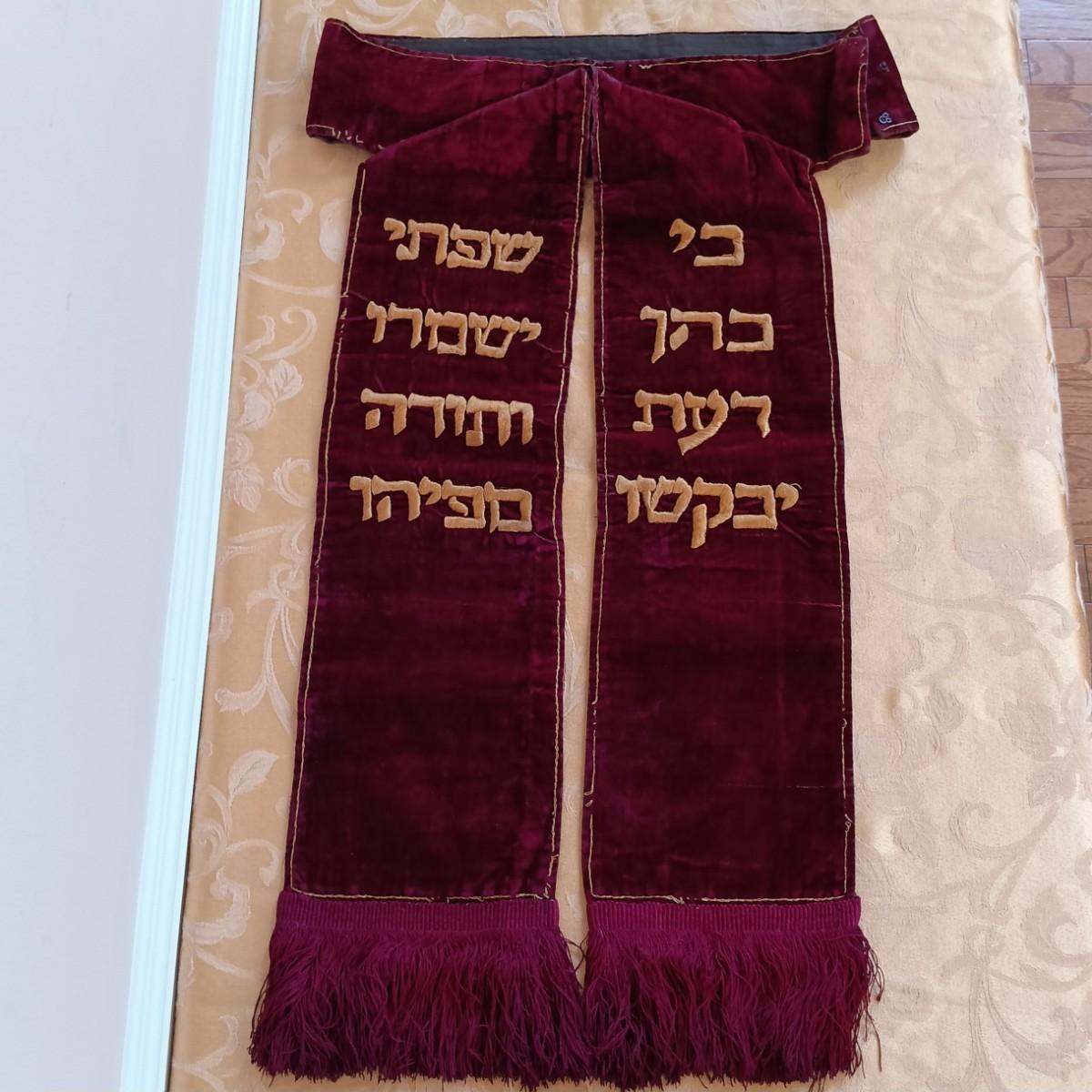 LOT 337: Vintage Velvet Belt with Verse from Malachi, Bronze Grand Street Boys Plaque, Portuguese Synagogue Tile & More