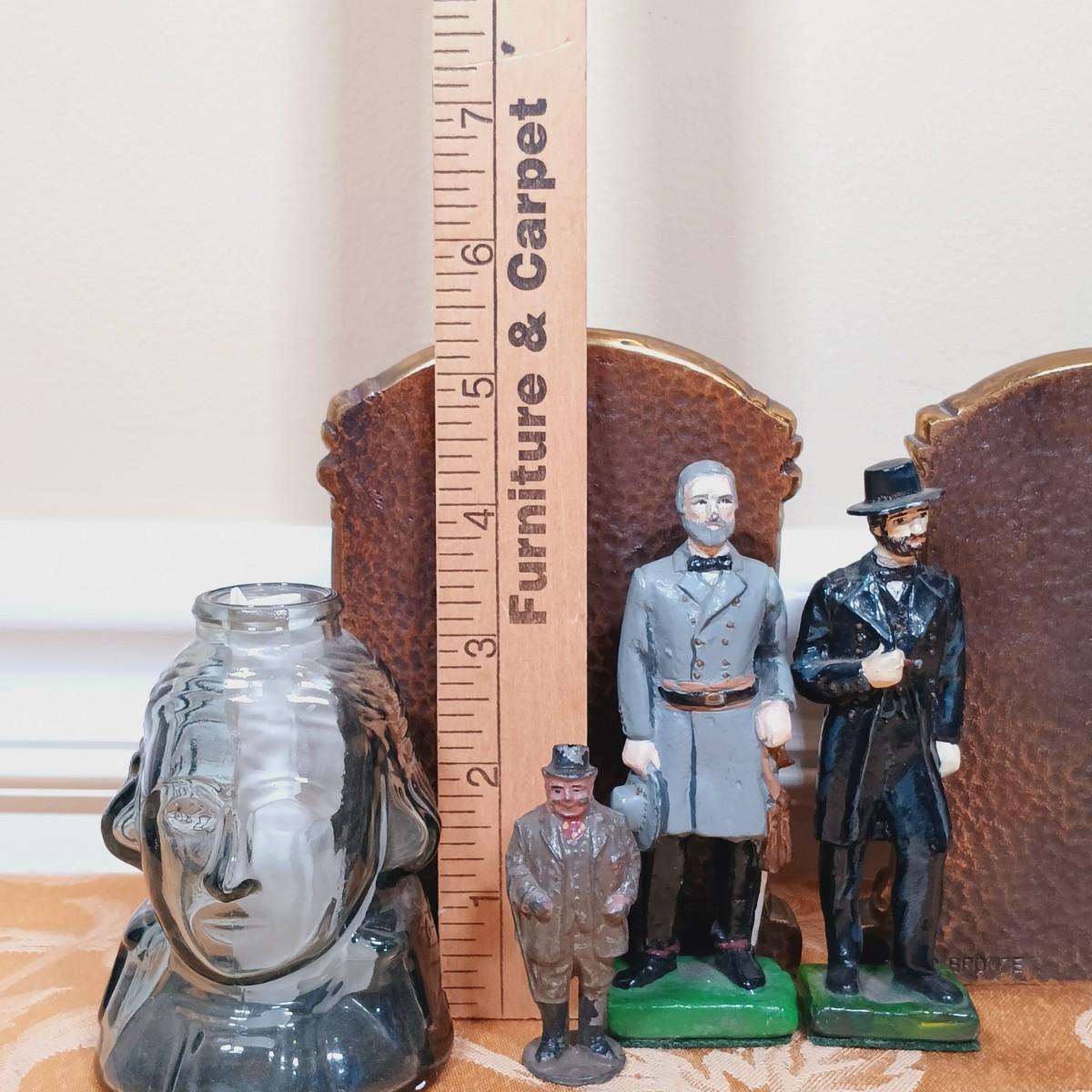 LOT 341: Solid Bronze 'Thinking Man' Bookends, Wheaton George Washinton Ink Bottle & More