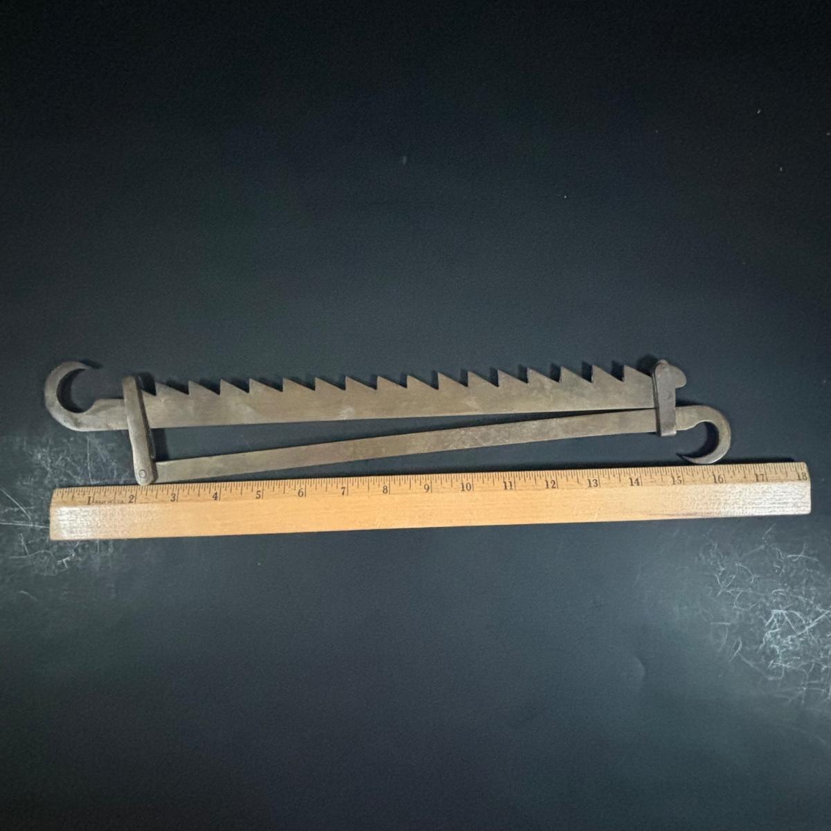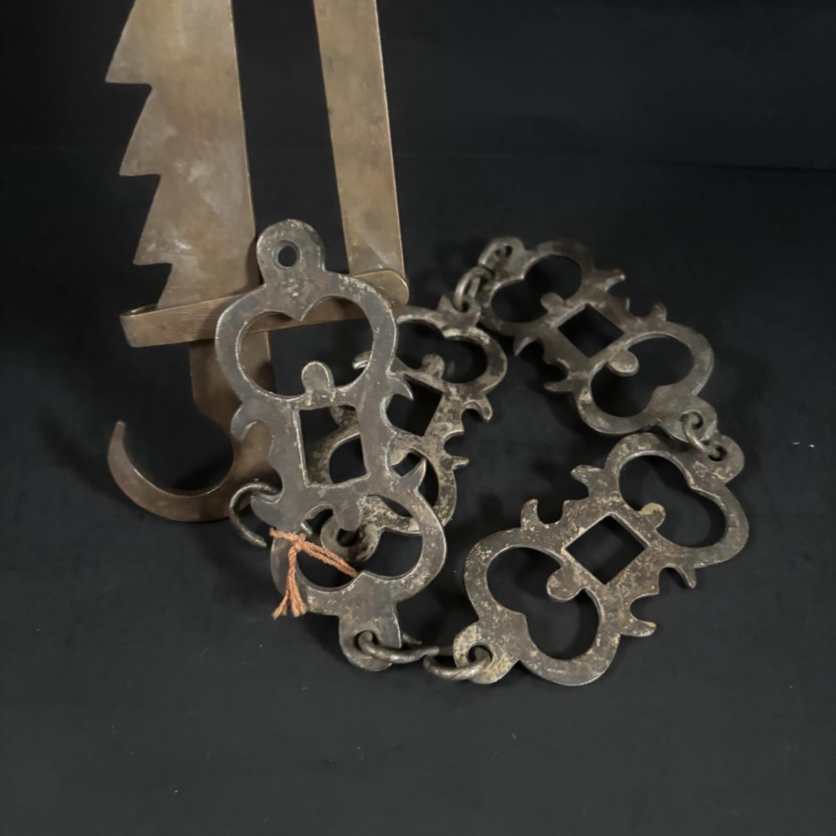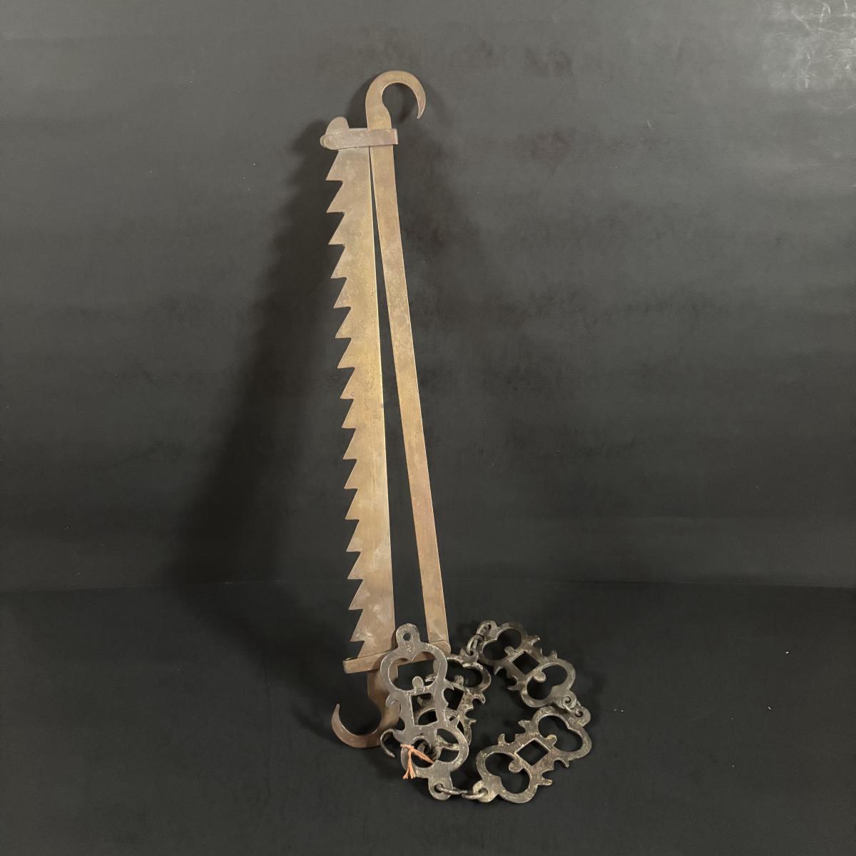 LOT 354: 19th Century Solid Brass Cooking Trammel Sawtooth and Ornate Chain Links