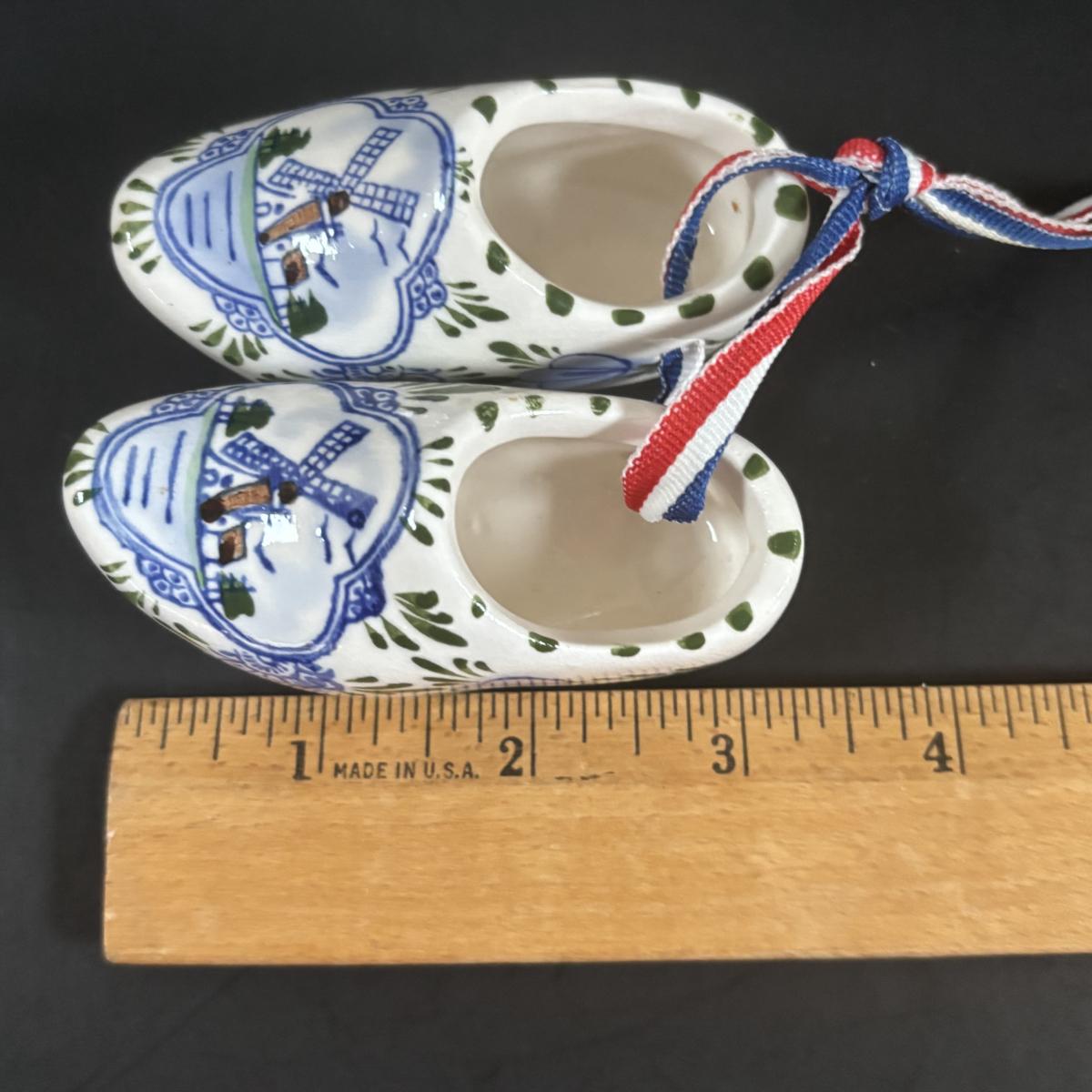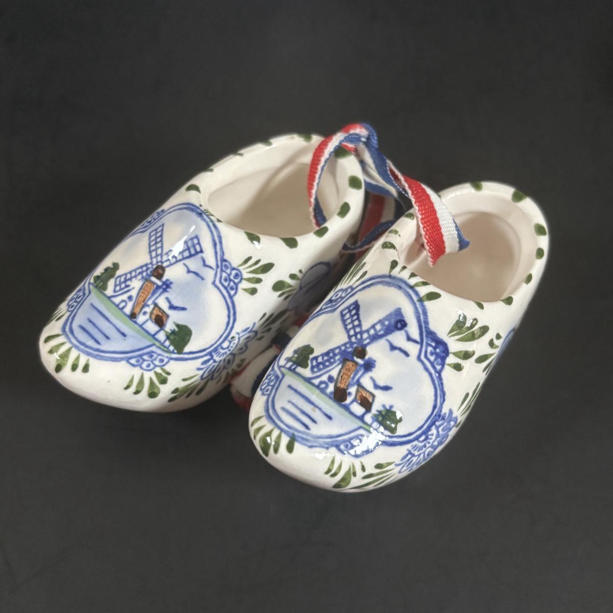 LOT 357: Delft Holland Hand Painted Vase, Wedgewood Style Pill Box & Ceramic Painted Shoes