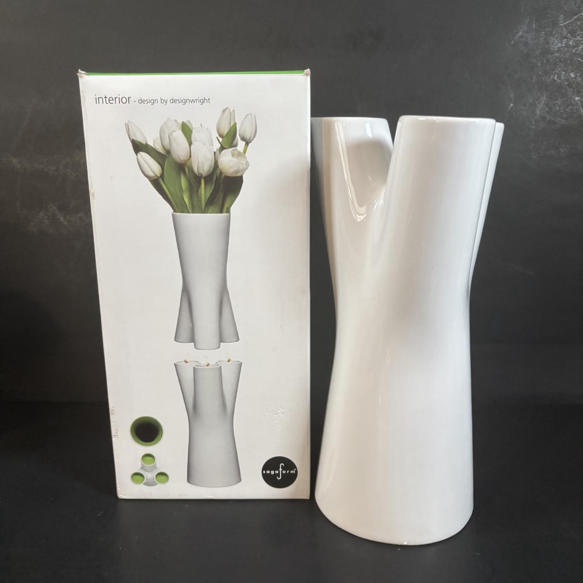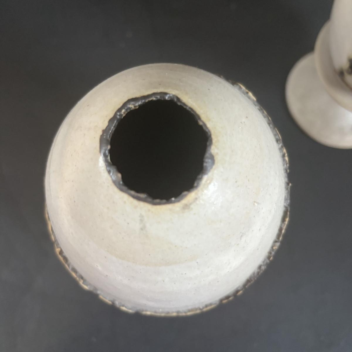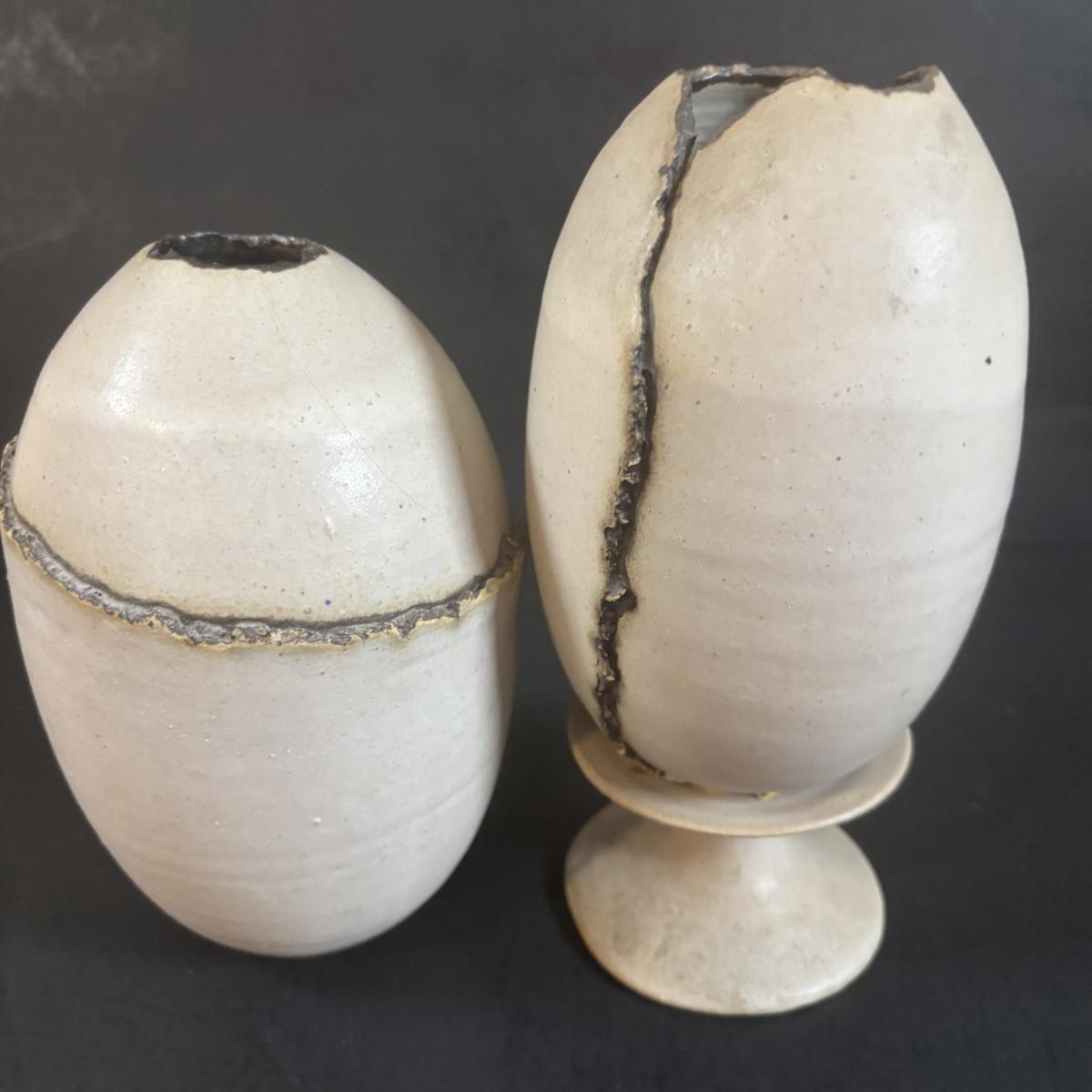 LOT 360: Pottery Egg Shaped Vases,Design by Designwright Upside Down Vase, Pottery Barn Square Metal Flower Holder w/Flower Frog