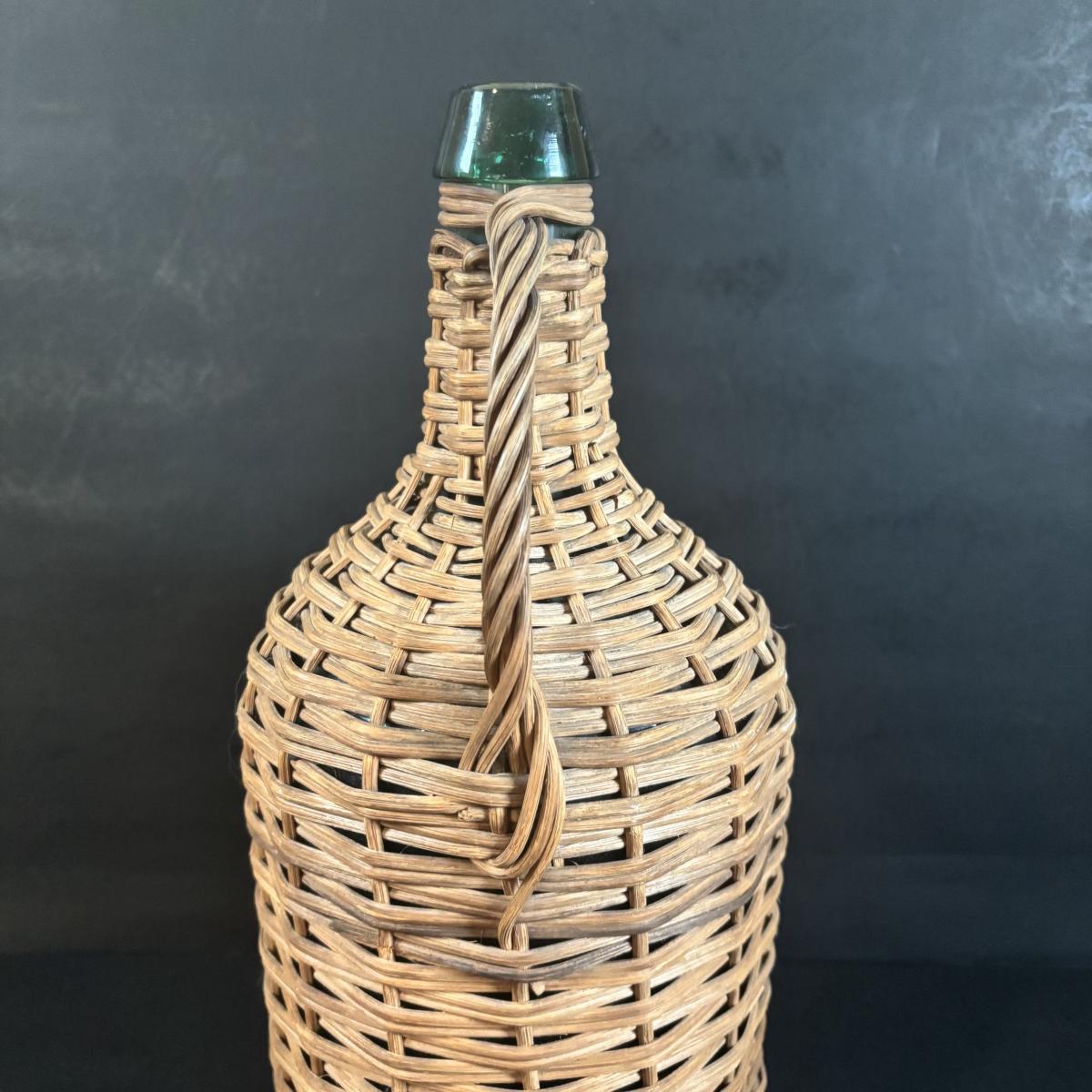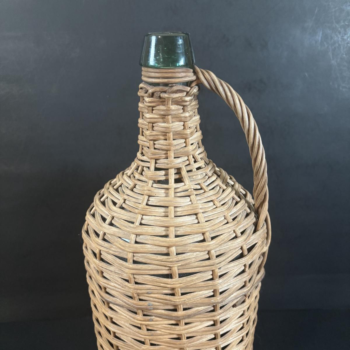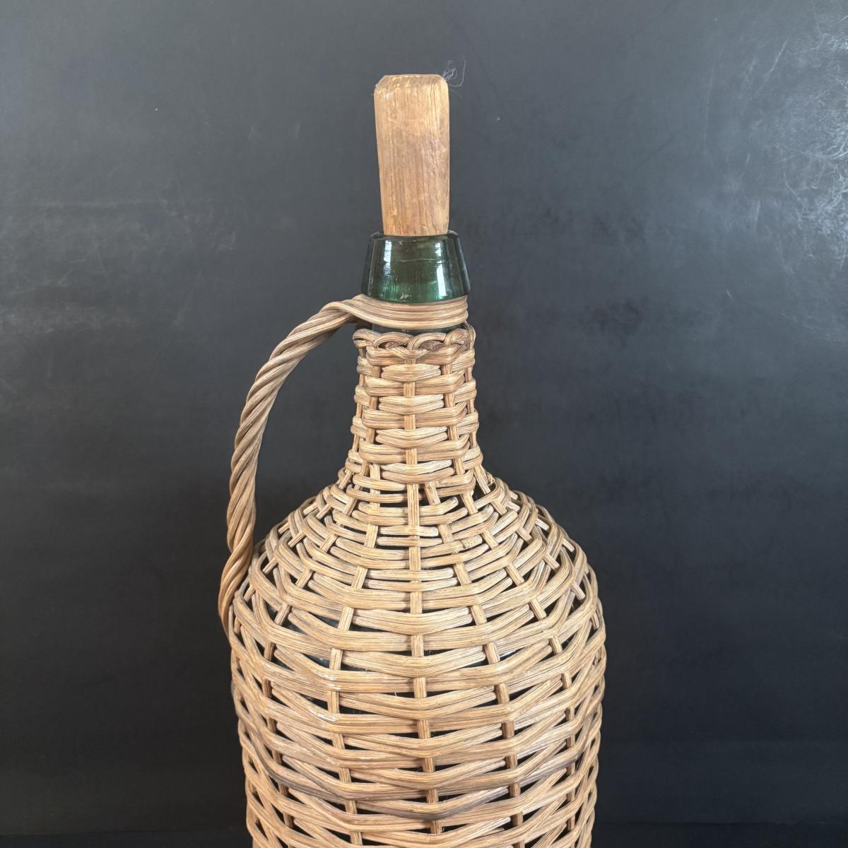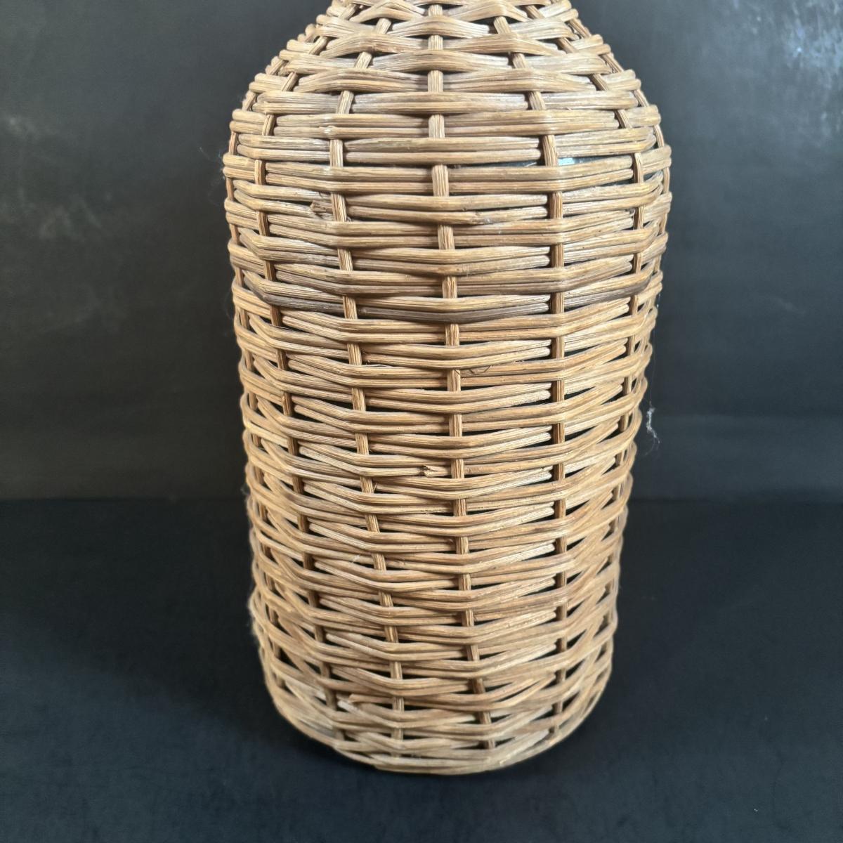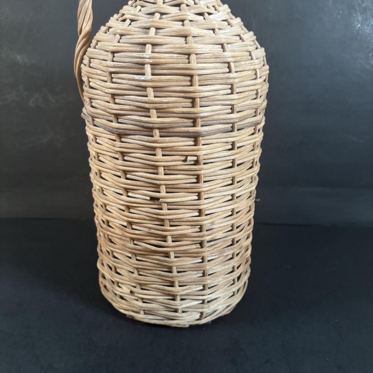 LOT 367: Antique Wicker Wrapped Bottle w/Wooden Stopper & Asbestos Sad Iron