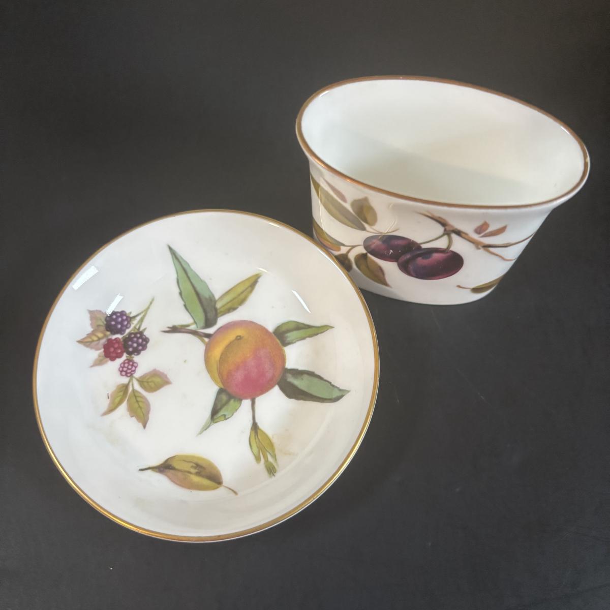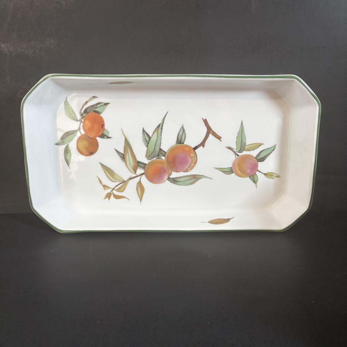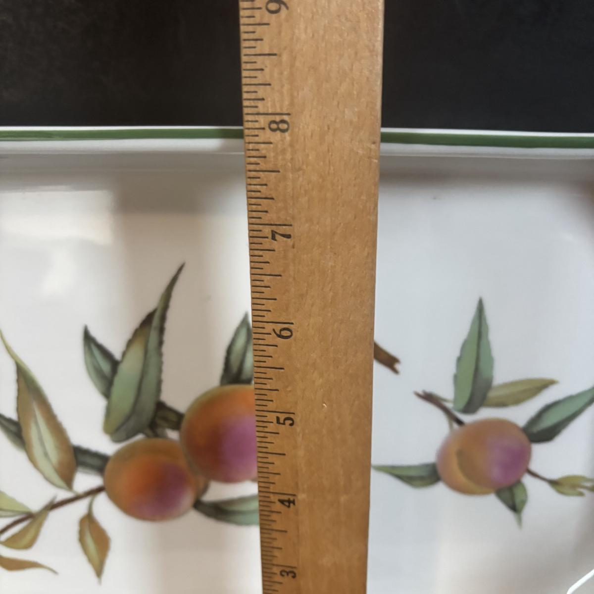 LOT 370: Evesham Vale 1986 Royal Dorchester Casserole Dish, Arden 1974 Royal Dorchester Toothpick Holder & Tray, Mikasa South Seas Frosted Bowl w/Faux Lemons