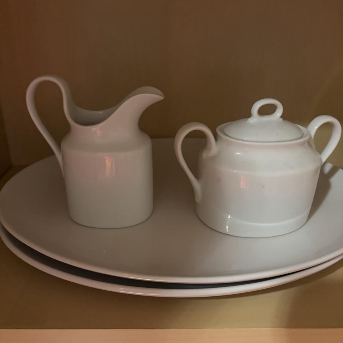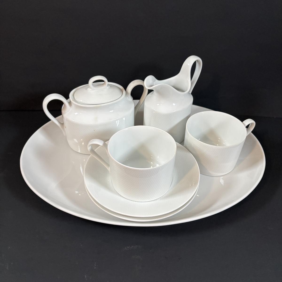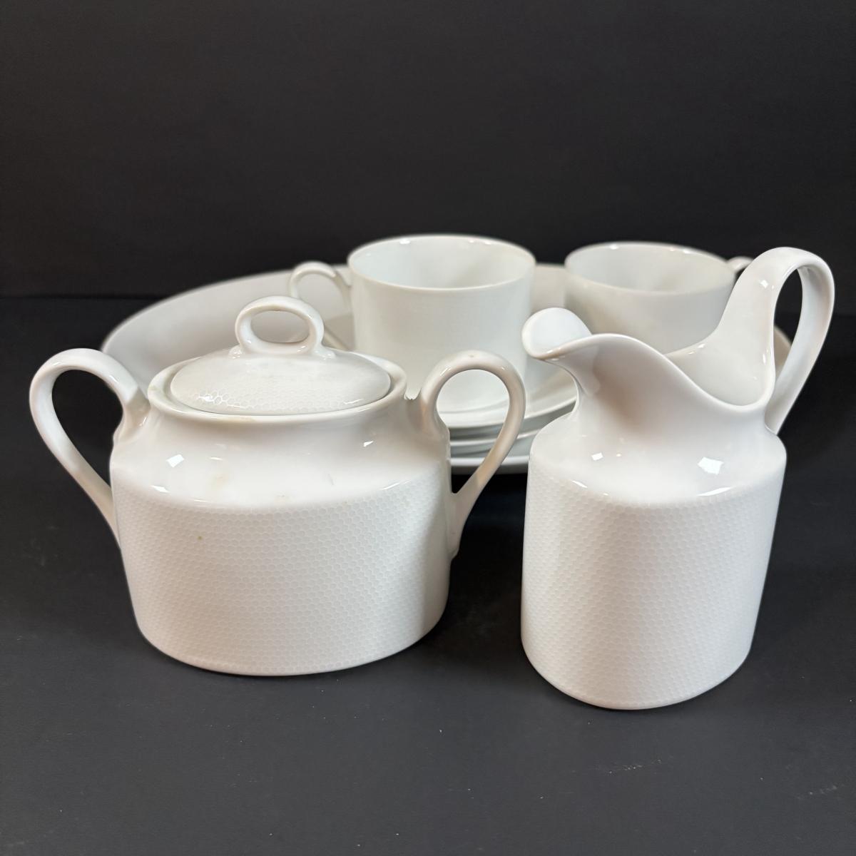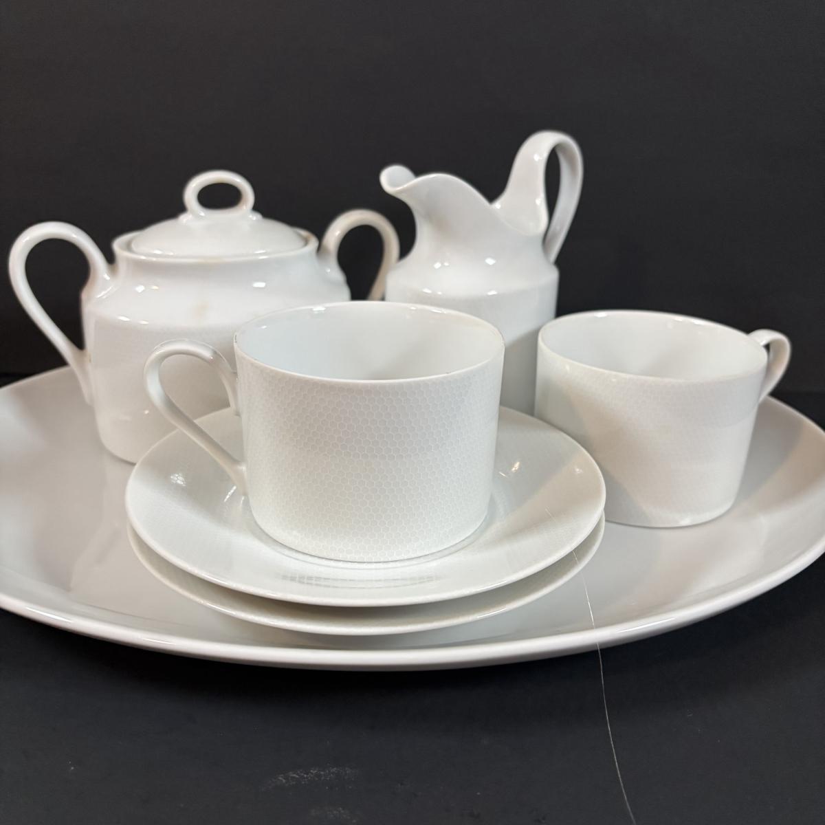 LOT 379: Mikasa L5424 Zephyr White Tea/Coffee Cups, Saucers, Creamer/Sugar