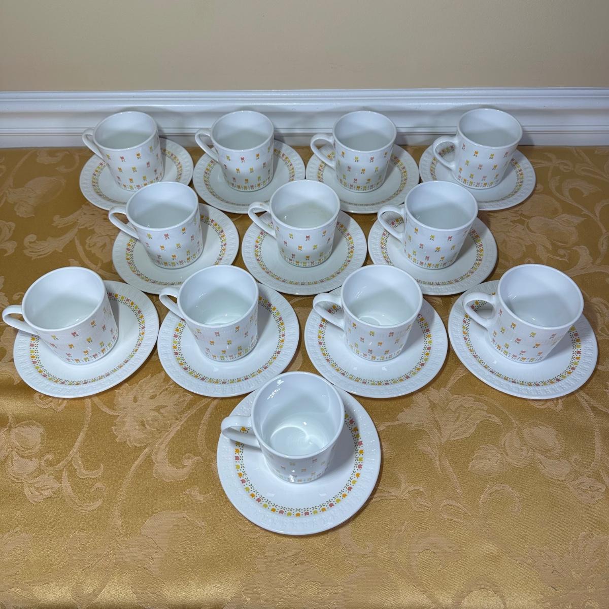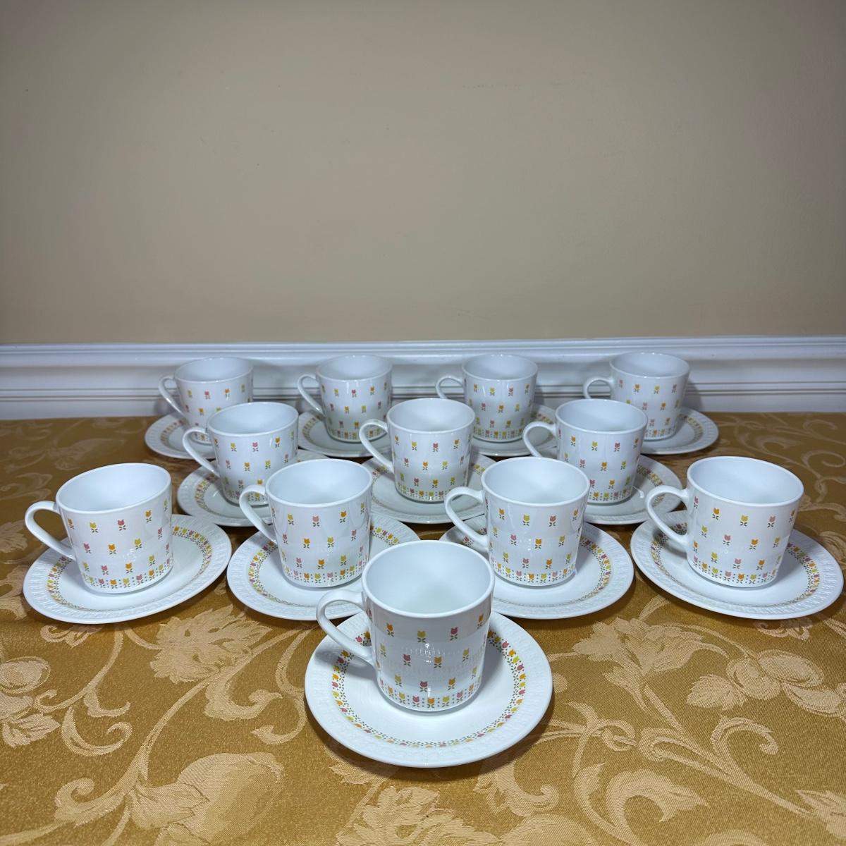 LOT 394: 2 Sets Of Centura by Corning Ware Teacup & Saucer Sets