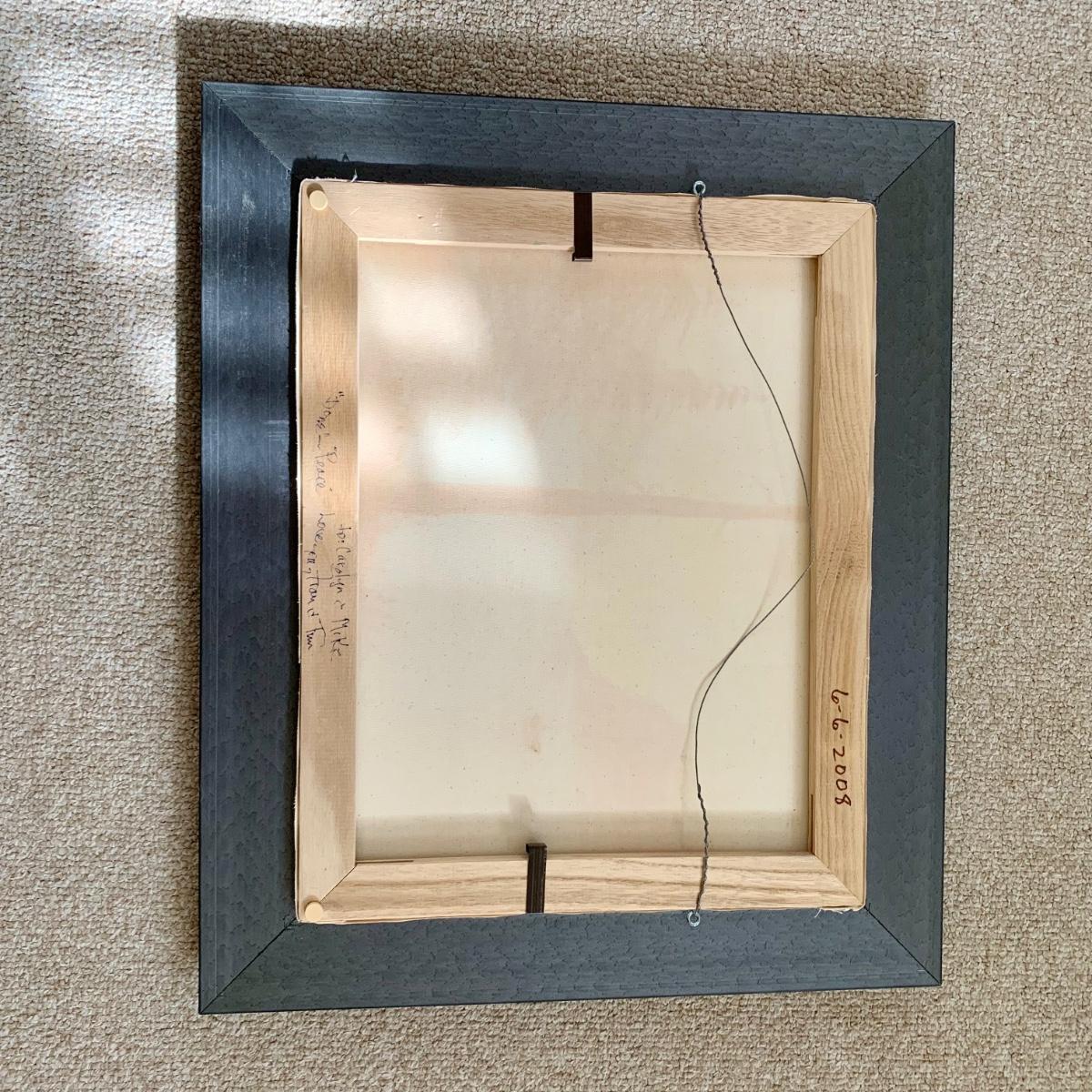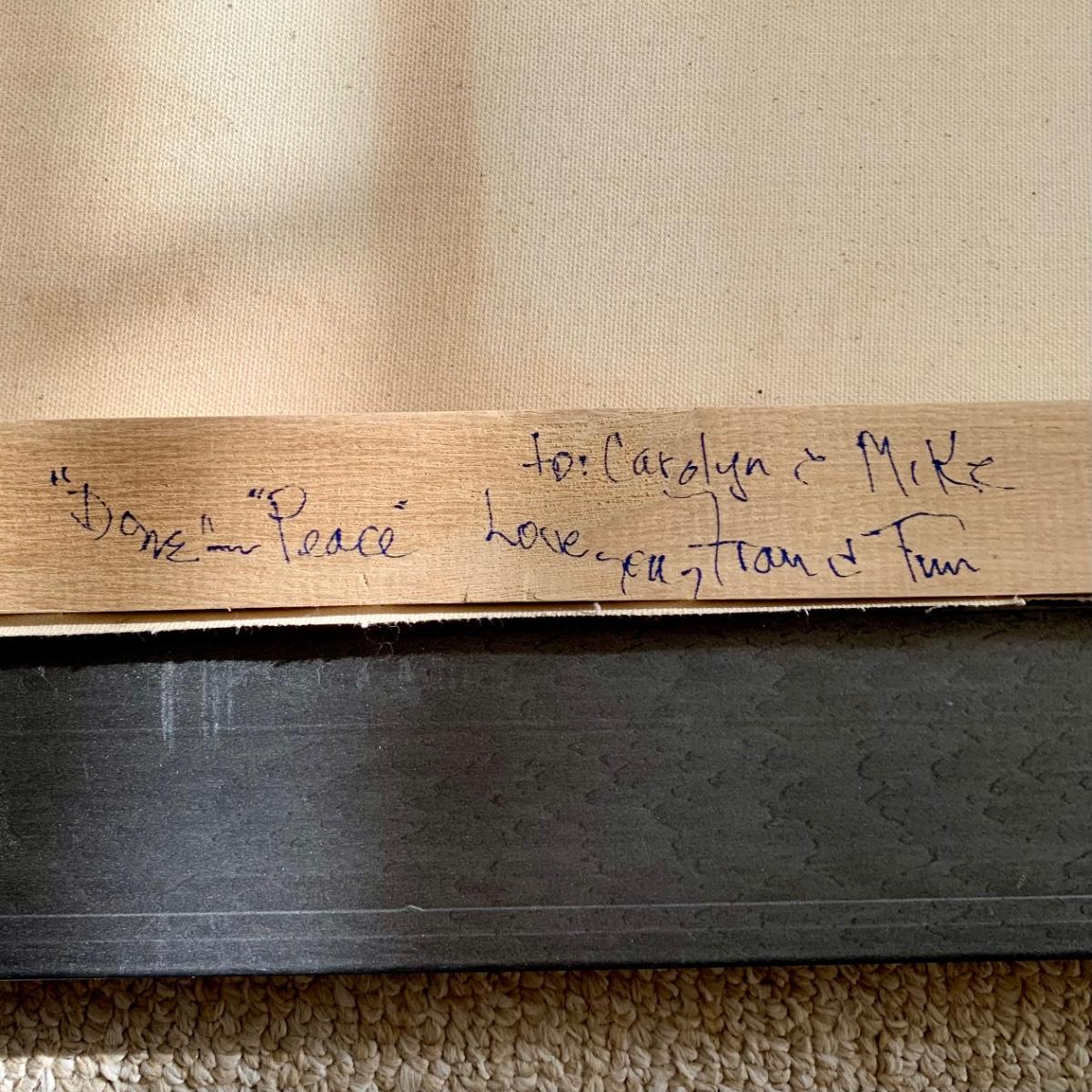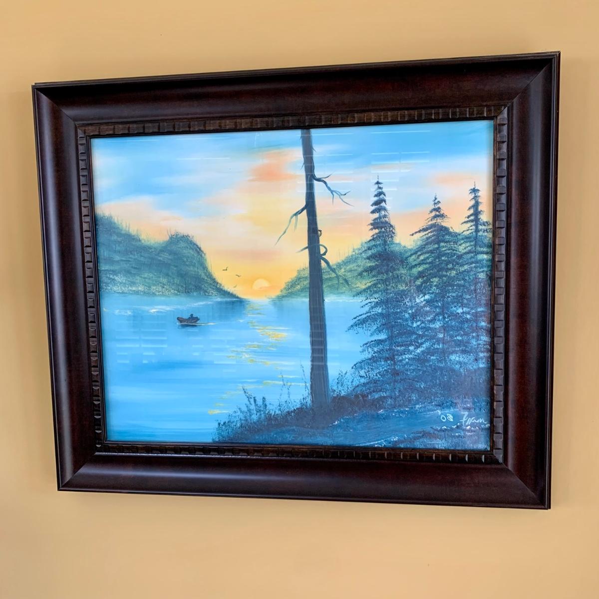 LOT 3 L: Framed & Signed Painting 2008 by Fran "Done - Peace": Boat on Lake at Sunset