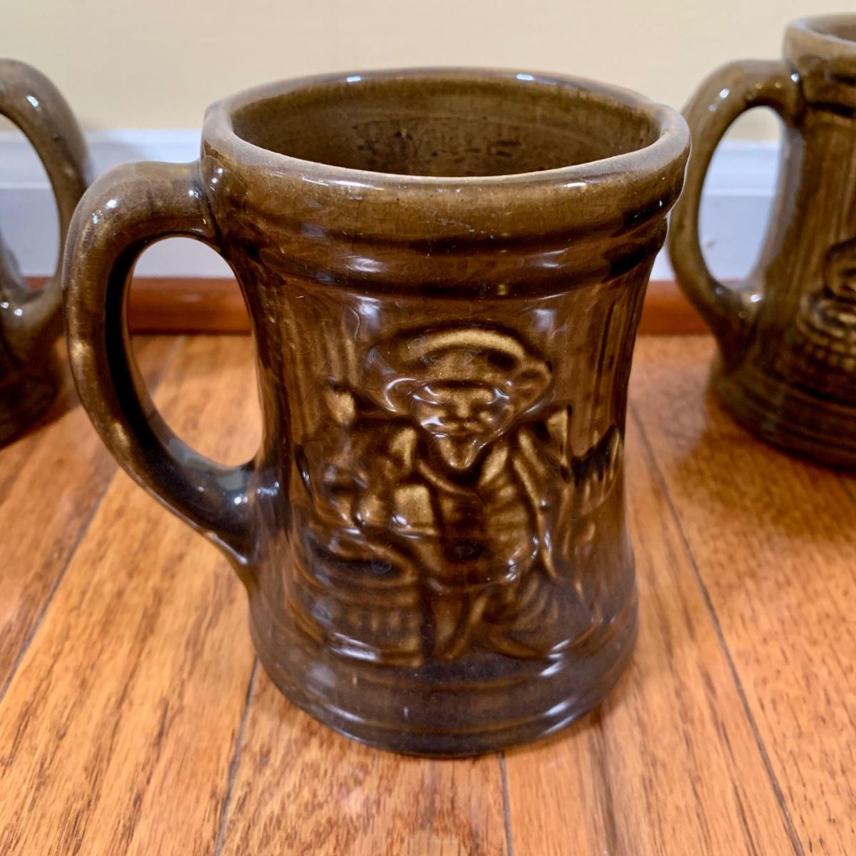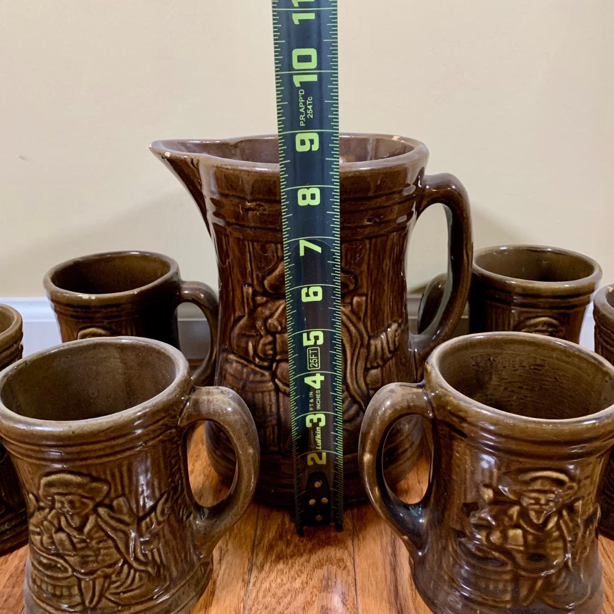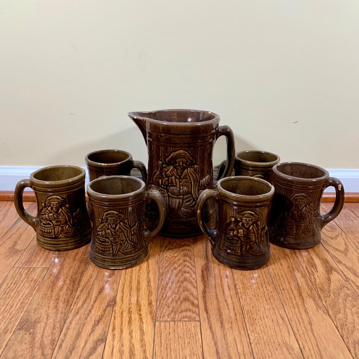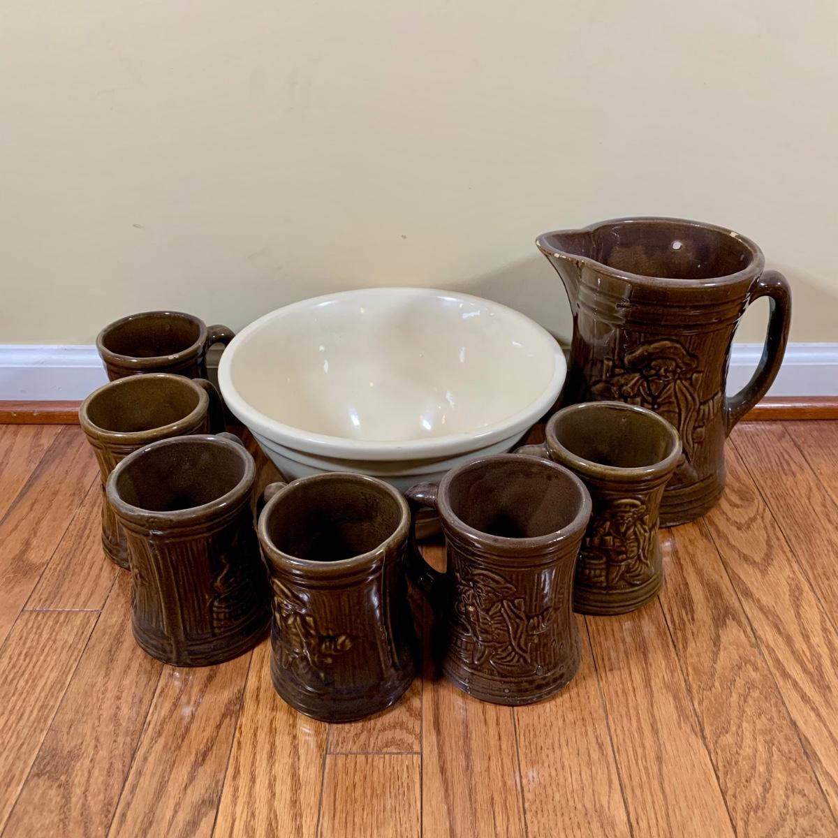 LOT 20 L: 1920's Nelson McCoy Sanitary Co. Buccaneer Pitcher w/ 6 Mugs & McCoy Pottery Mixing Bowl