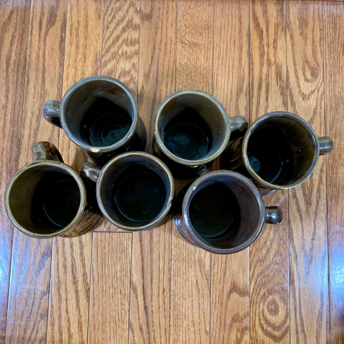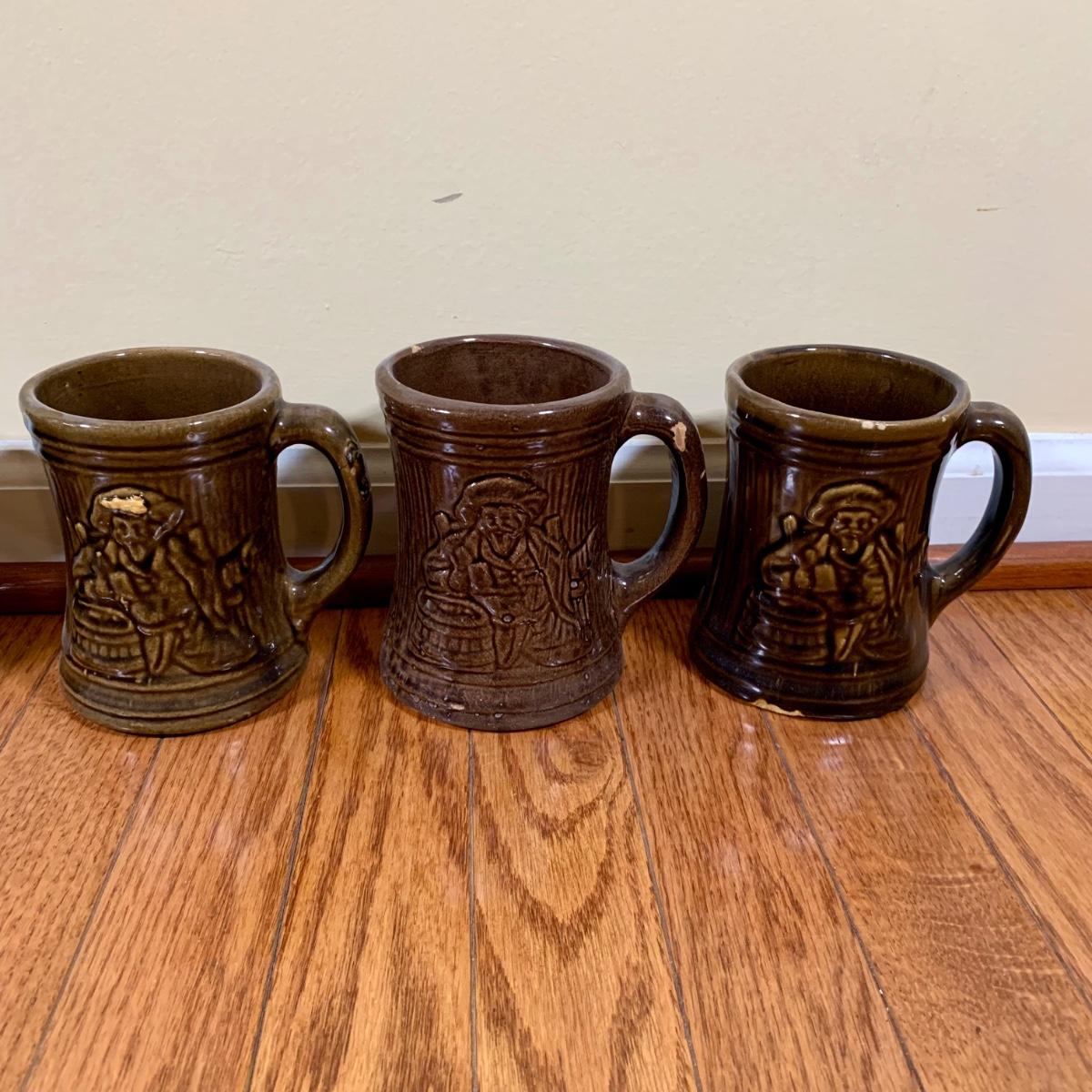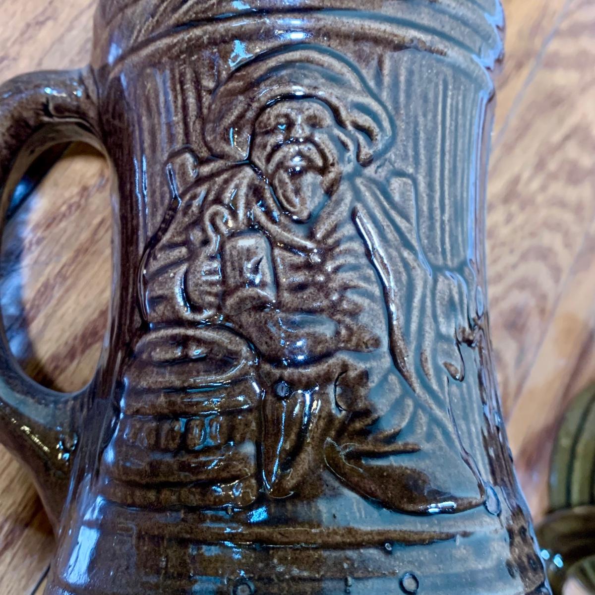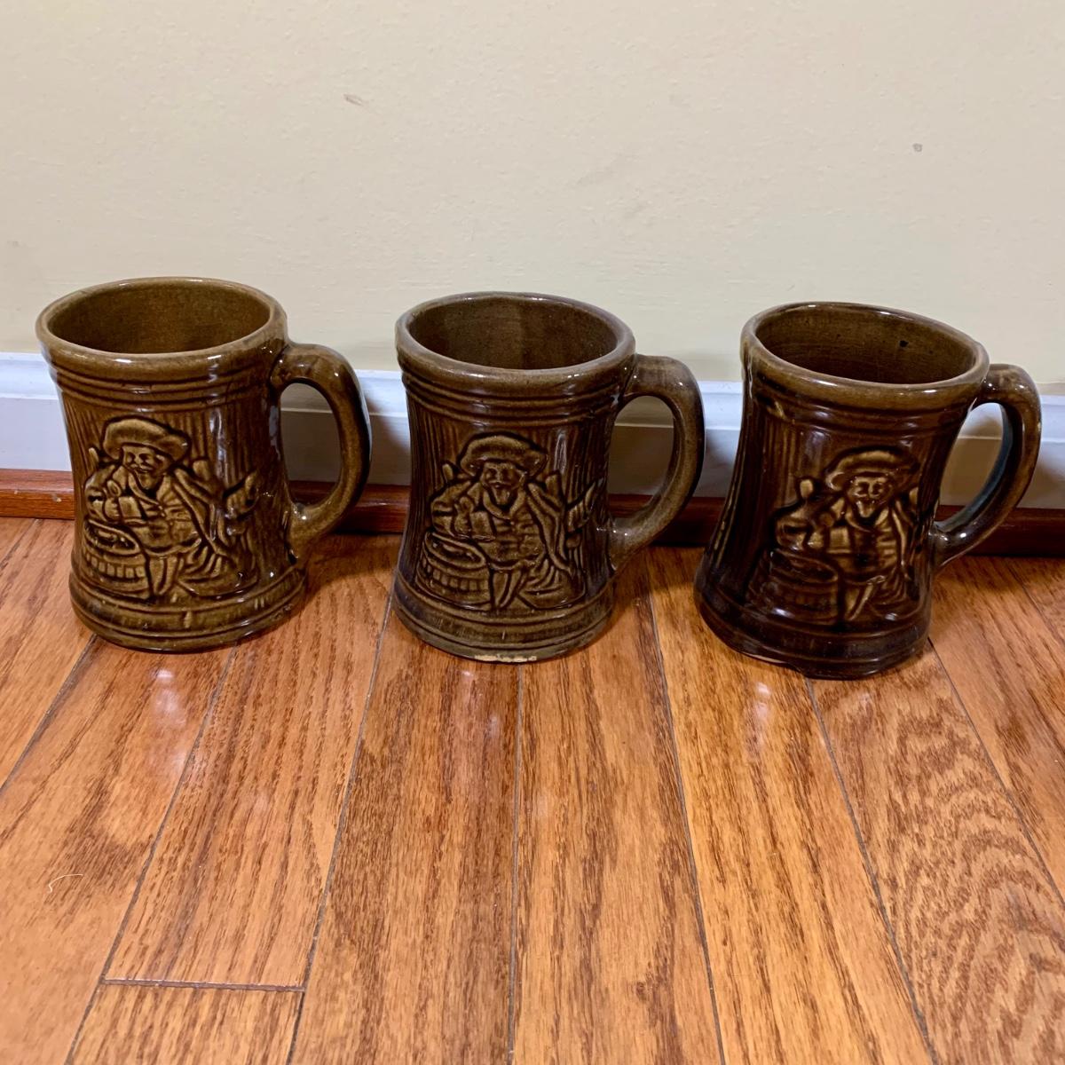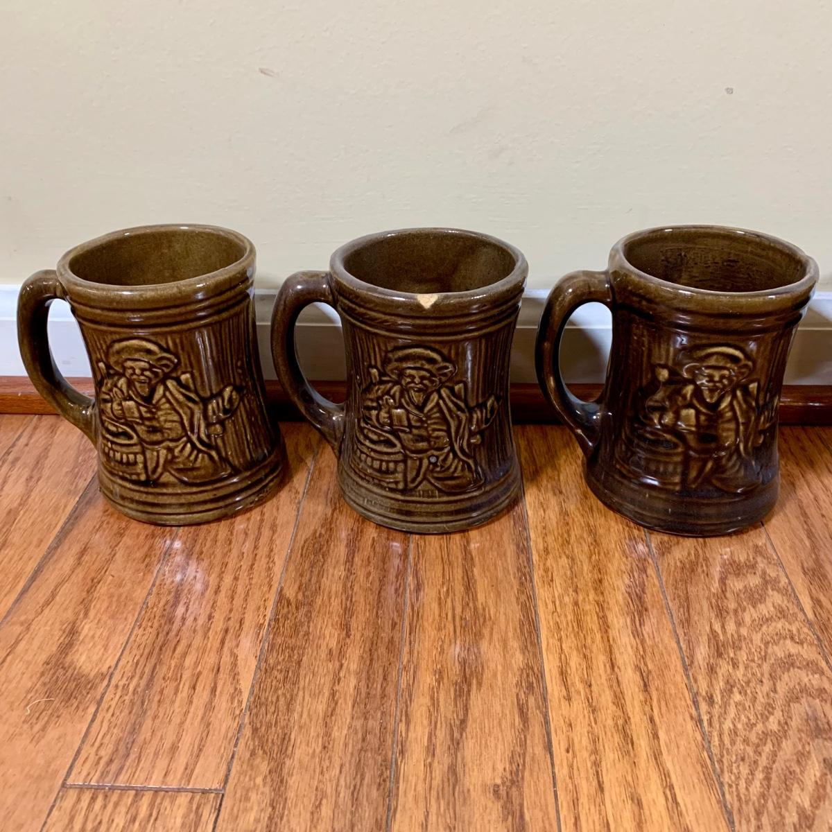 LOT 20 L: 1920's Nelson McCoy Sanitary Co. Buccaneer Pitcher w/ 6 Mugs & McCoy Pottery Mixing Bowl