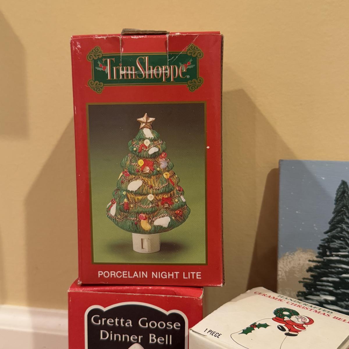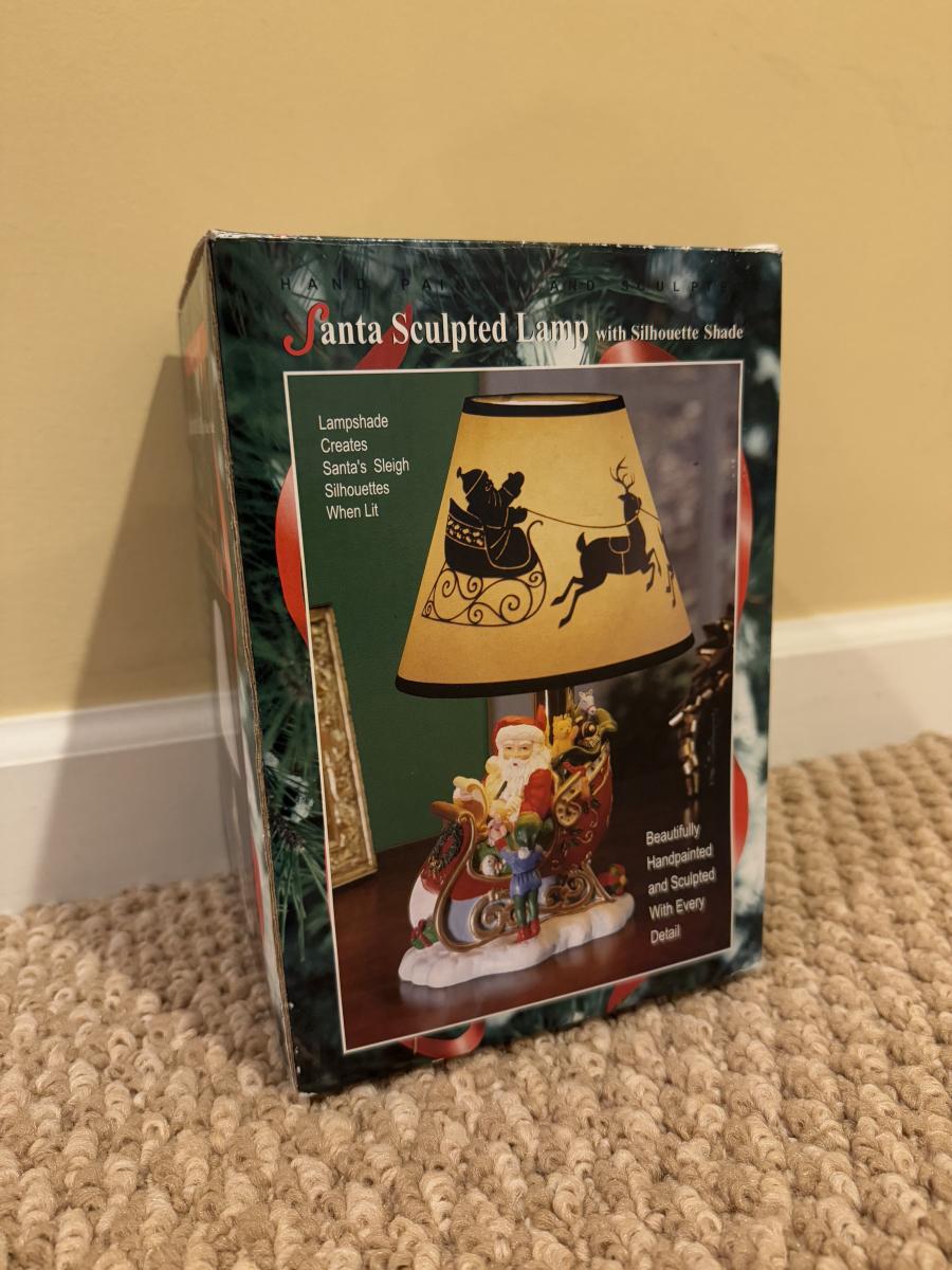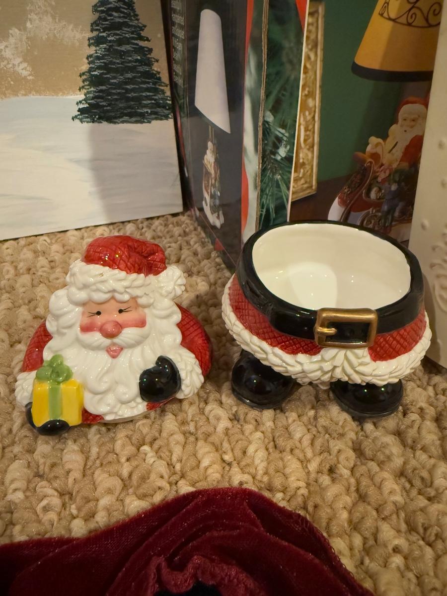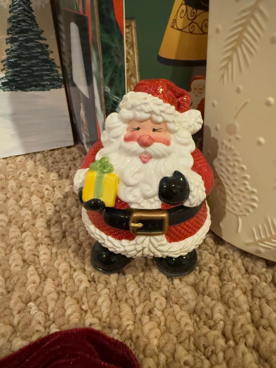 LOT 41B: Christmas Home Decor Collection - Boxed Night Light, Figurines & More w/ Painted Wood Scene, Fitz & Floyd Santa & More
