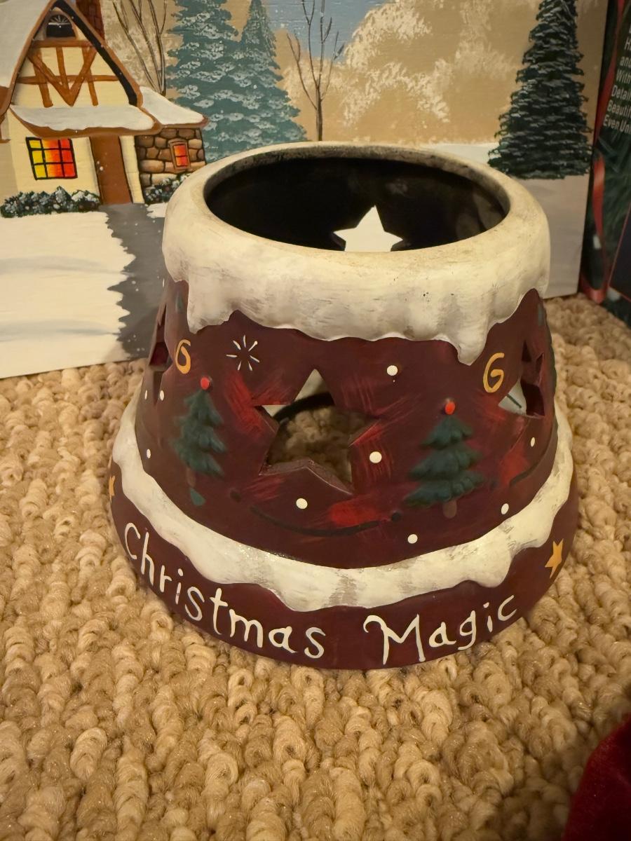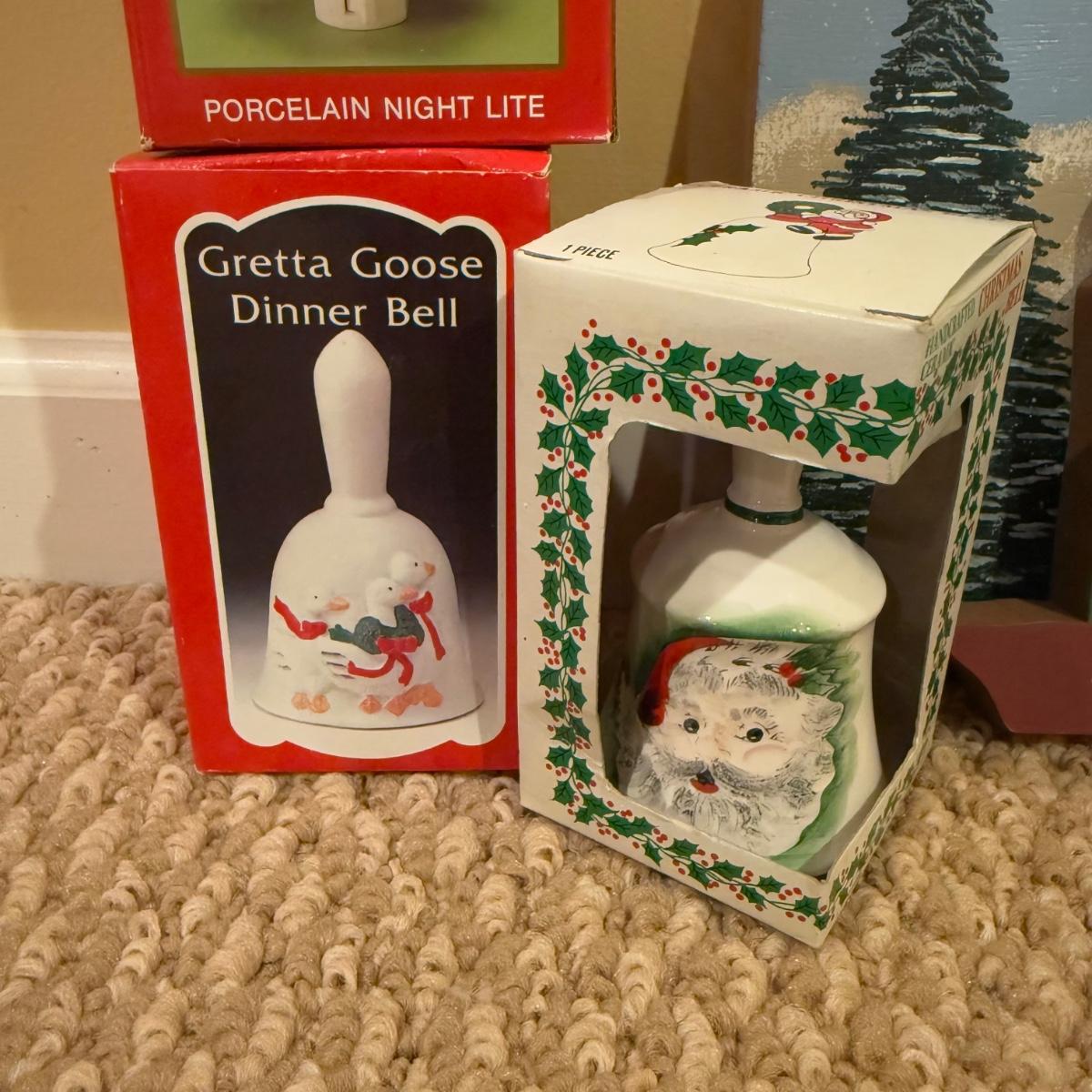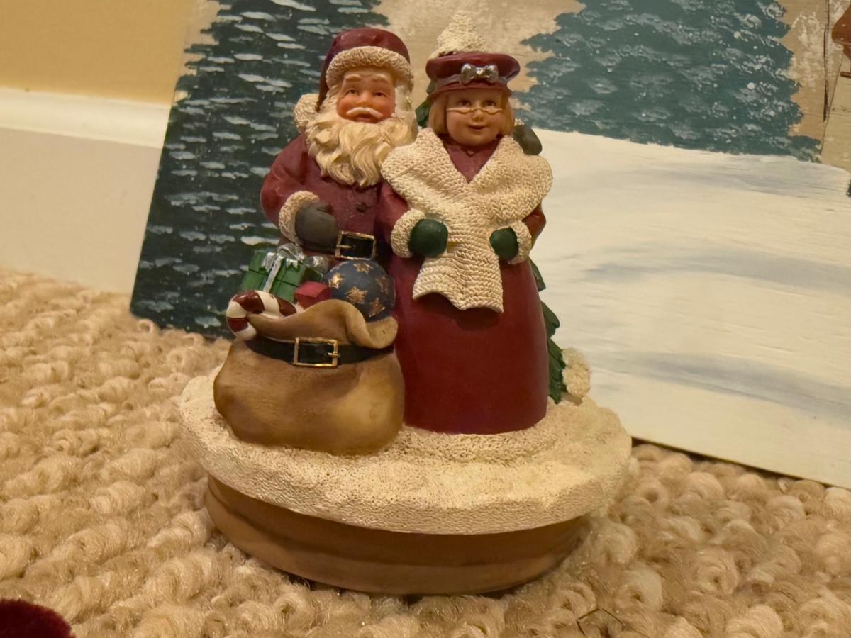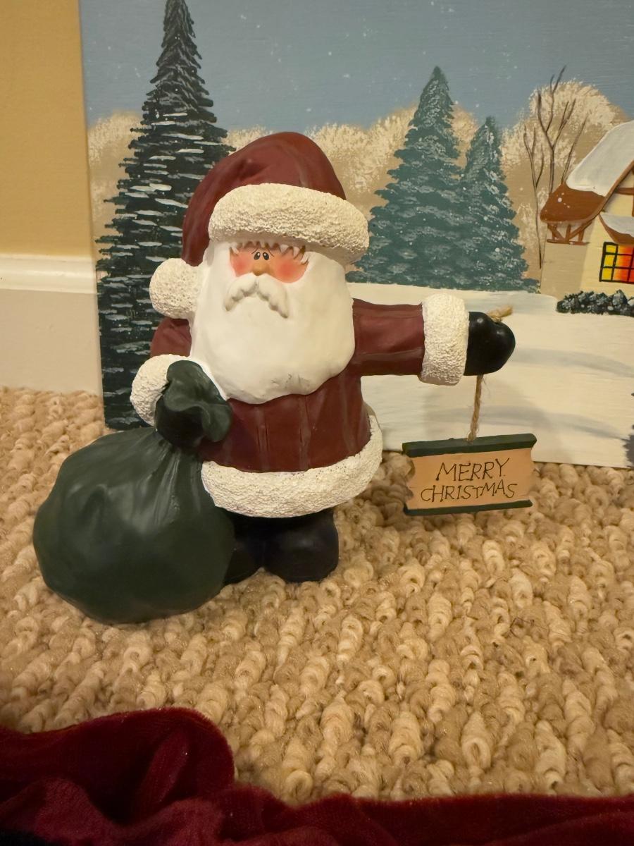 LOT 41B: Christmas Home Decor Collection - Boxed Night Light, Figurines & More w/ Painted Wood Scene, Fitz & Floyd Santa & More