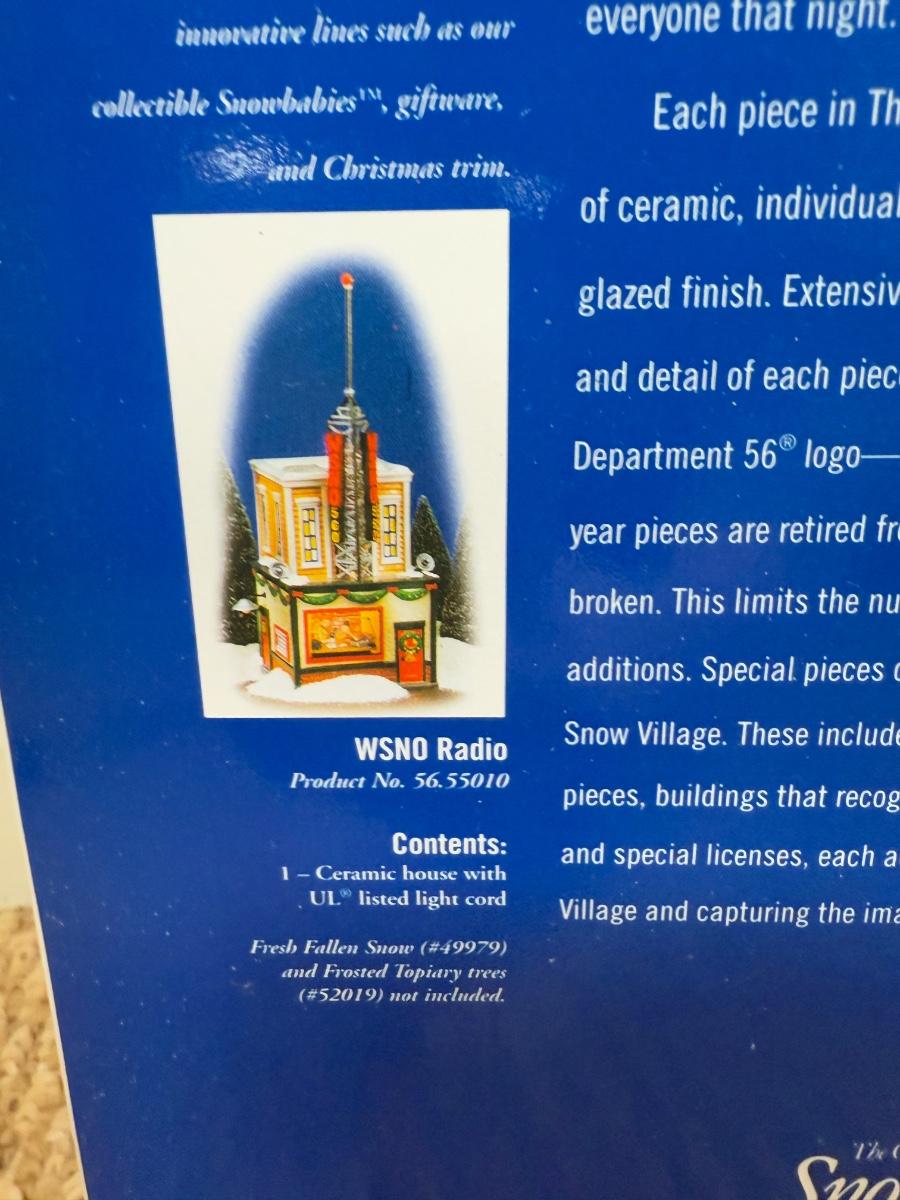 LOT 48B: Department 56 Original Snow Village WSNO Radio w/ Box