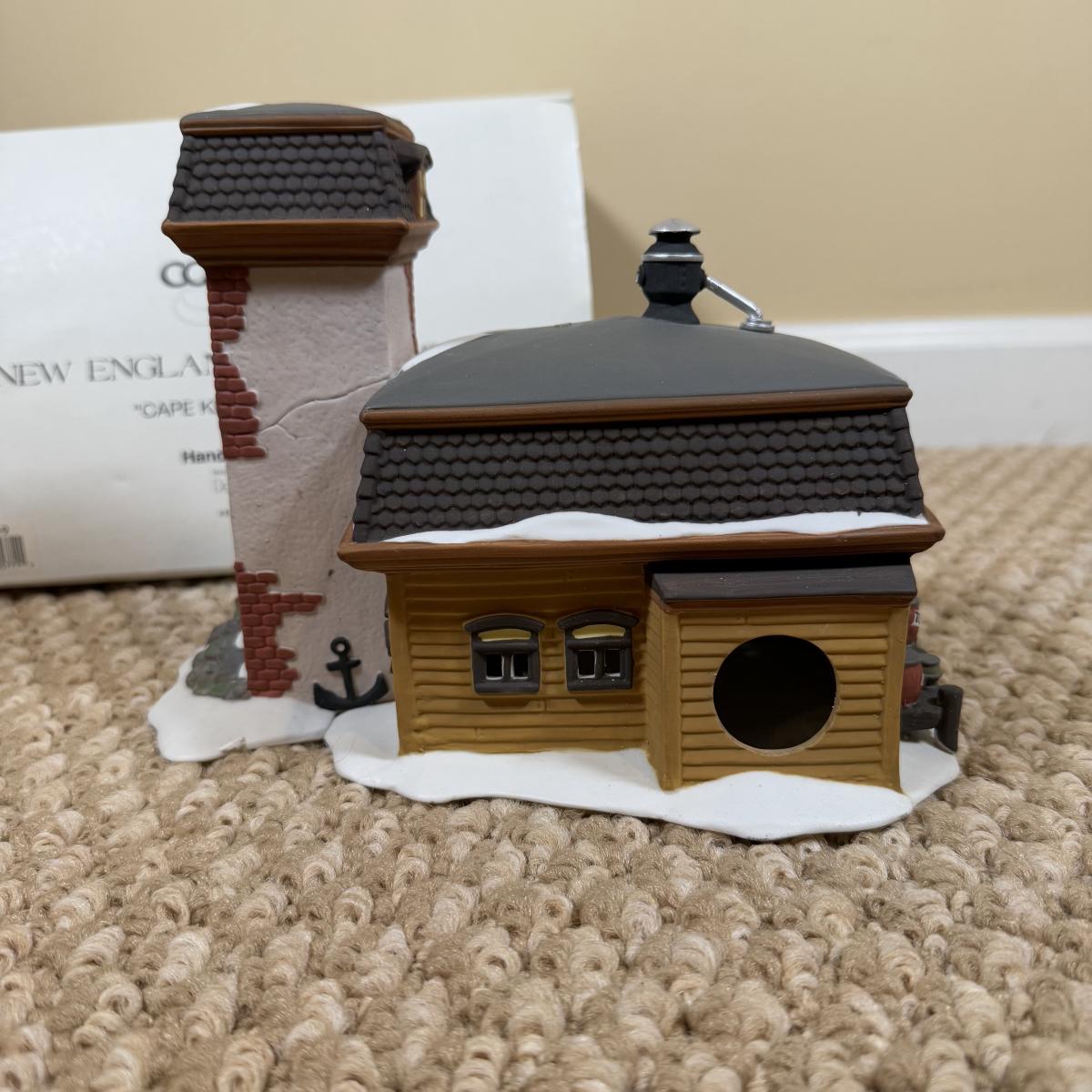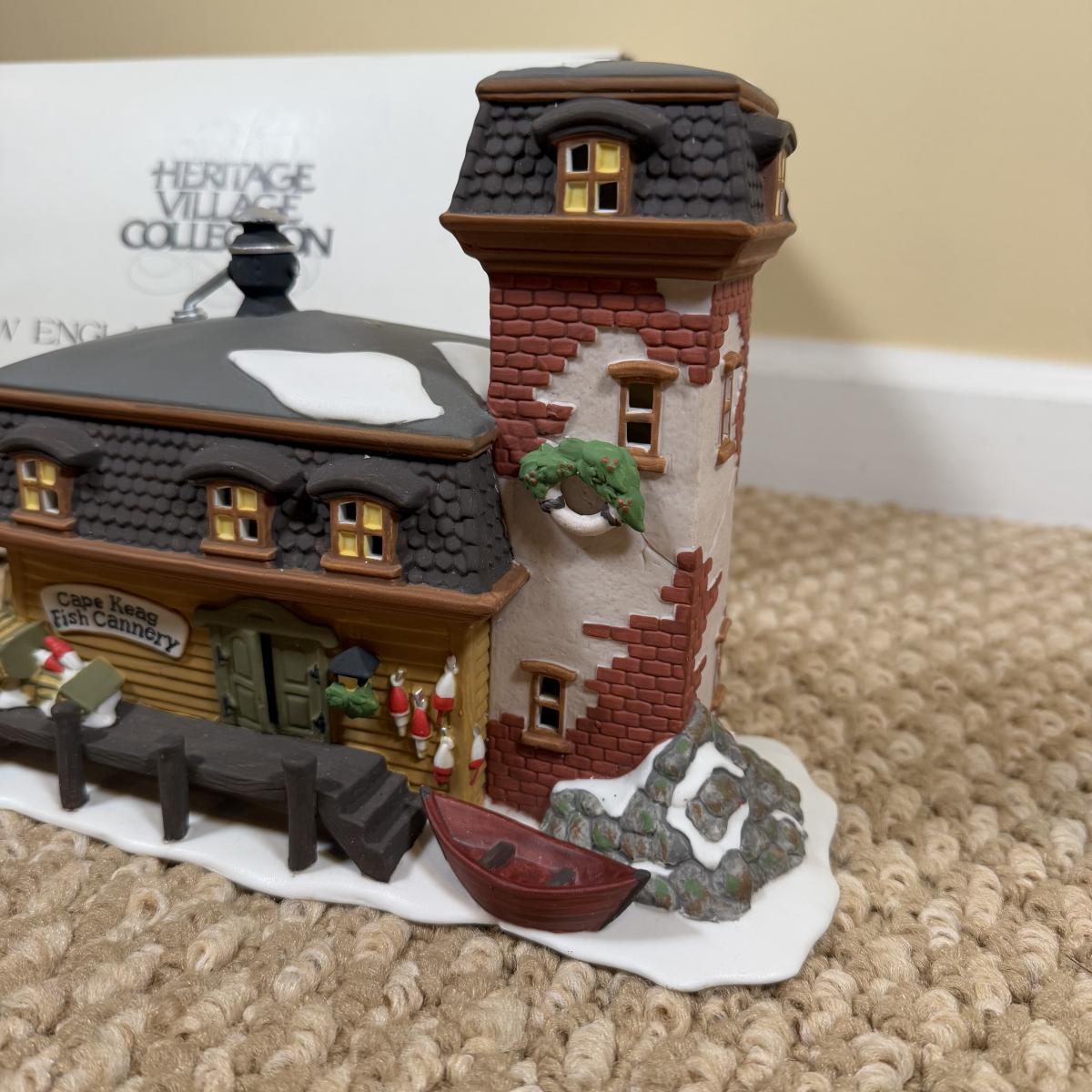 LOT 49B: Dept 56 Heritage Village Collection New England Village Series - Cape Keag Fish Cannery, Craggy Crove Lighthouse & Village Flag Pole