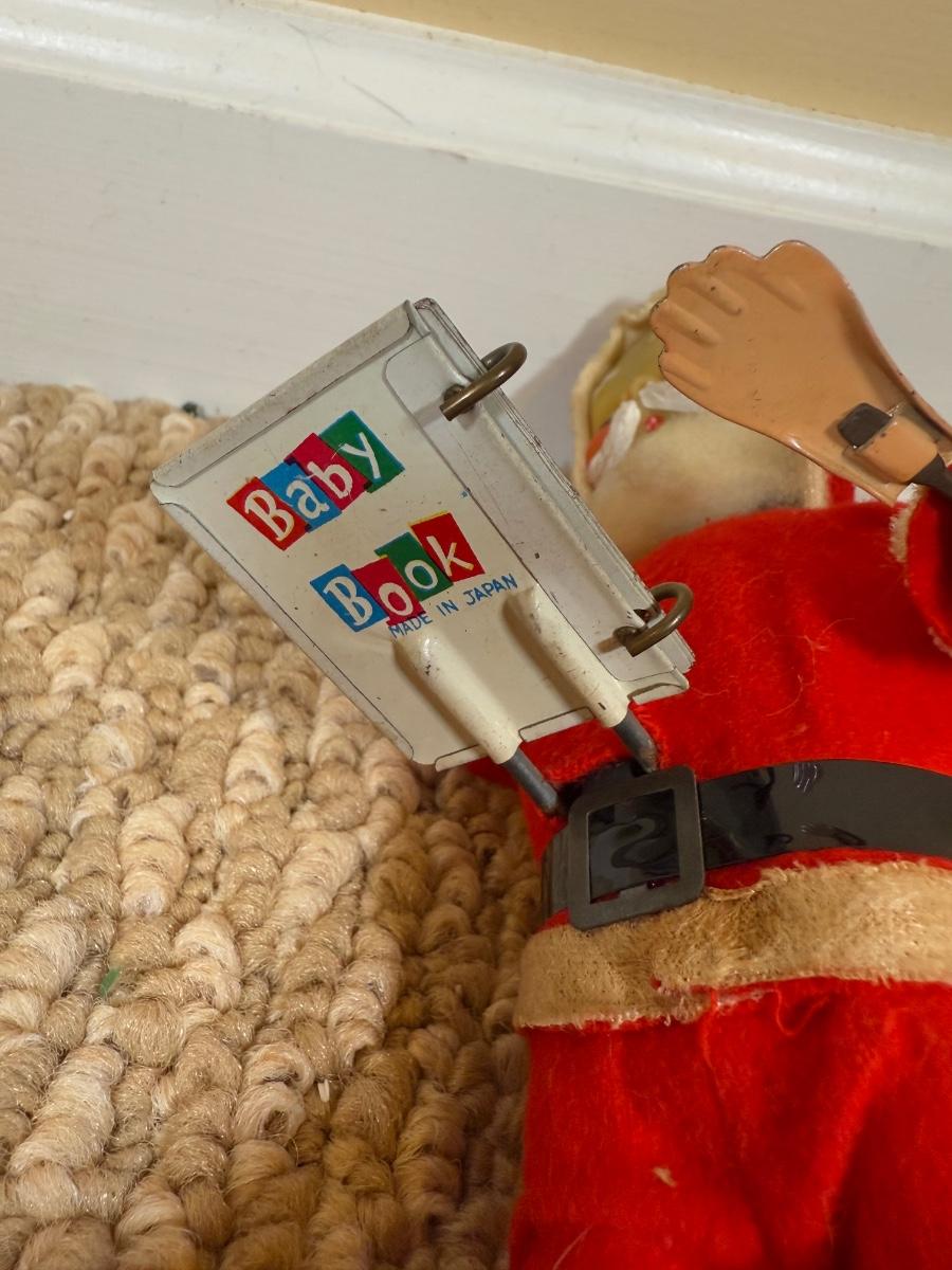 LOT 54B: Vintage 1960s Japan Tin Litho Wind Up Santa w/ Book