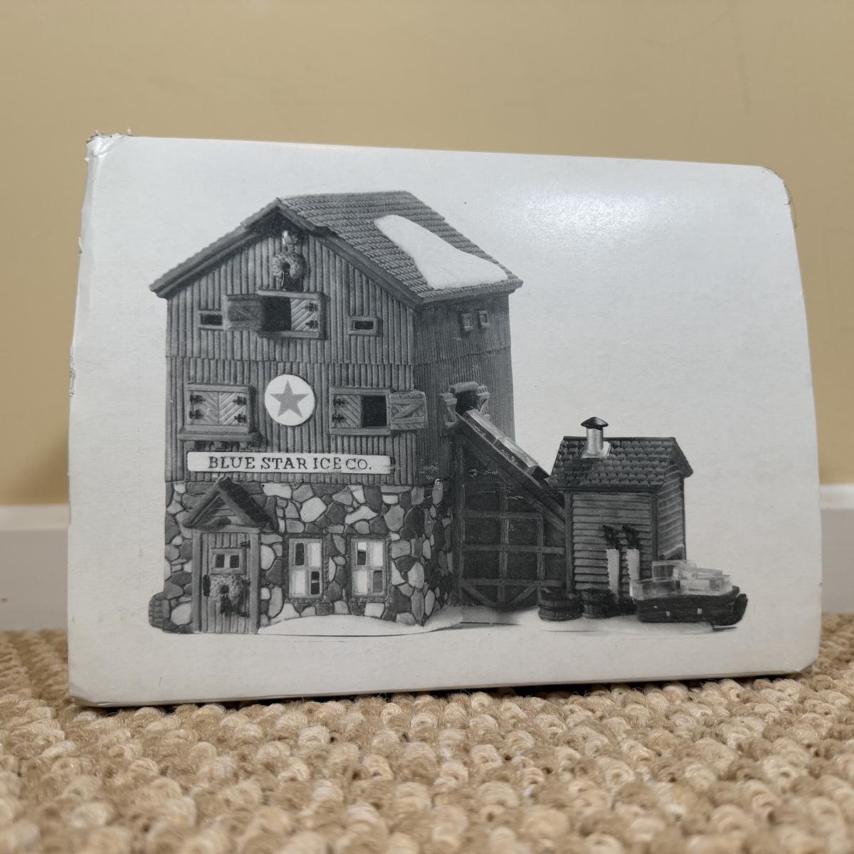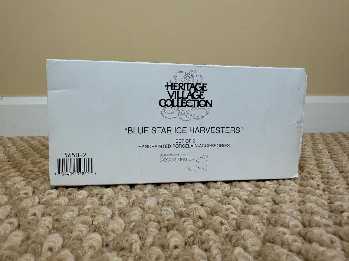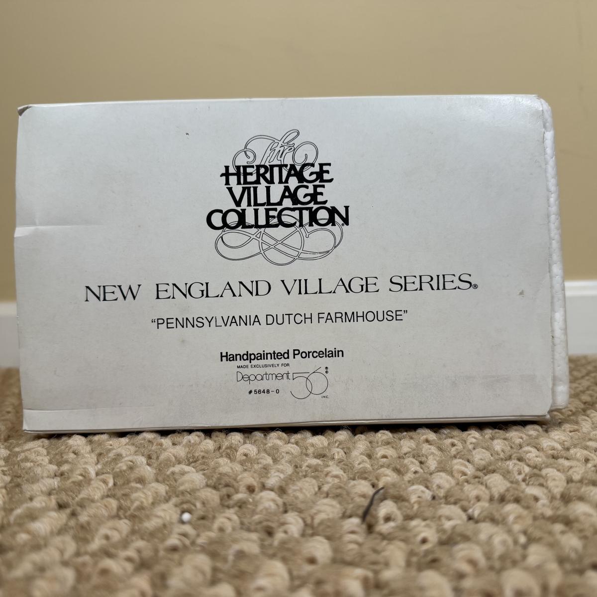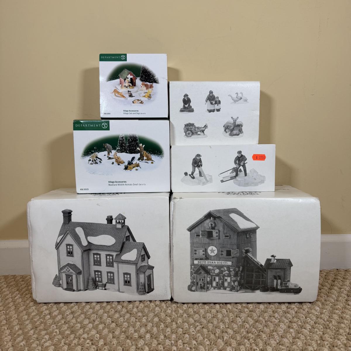 LOT 59B: Dept 56 Heritage Village Collection New England Series - PA Dutch Farmhouse, Blue Star Ice Co. and Harvesters w/ More Village Accessories