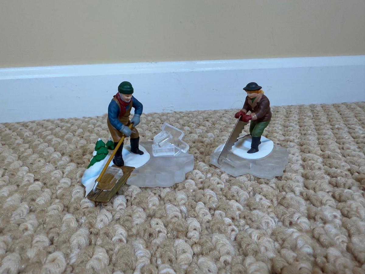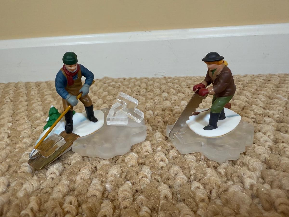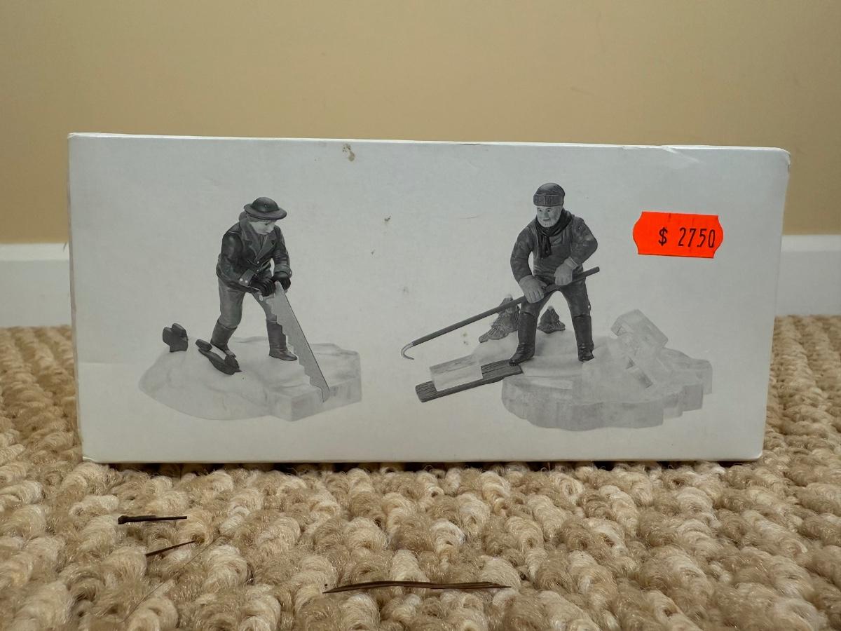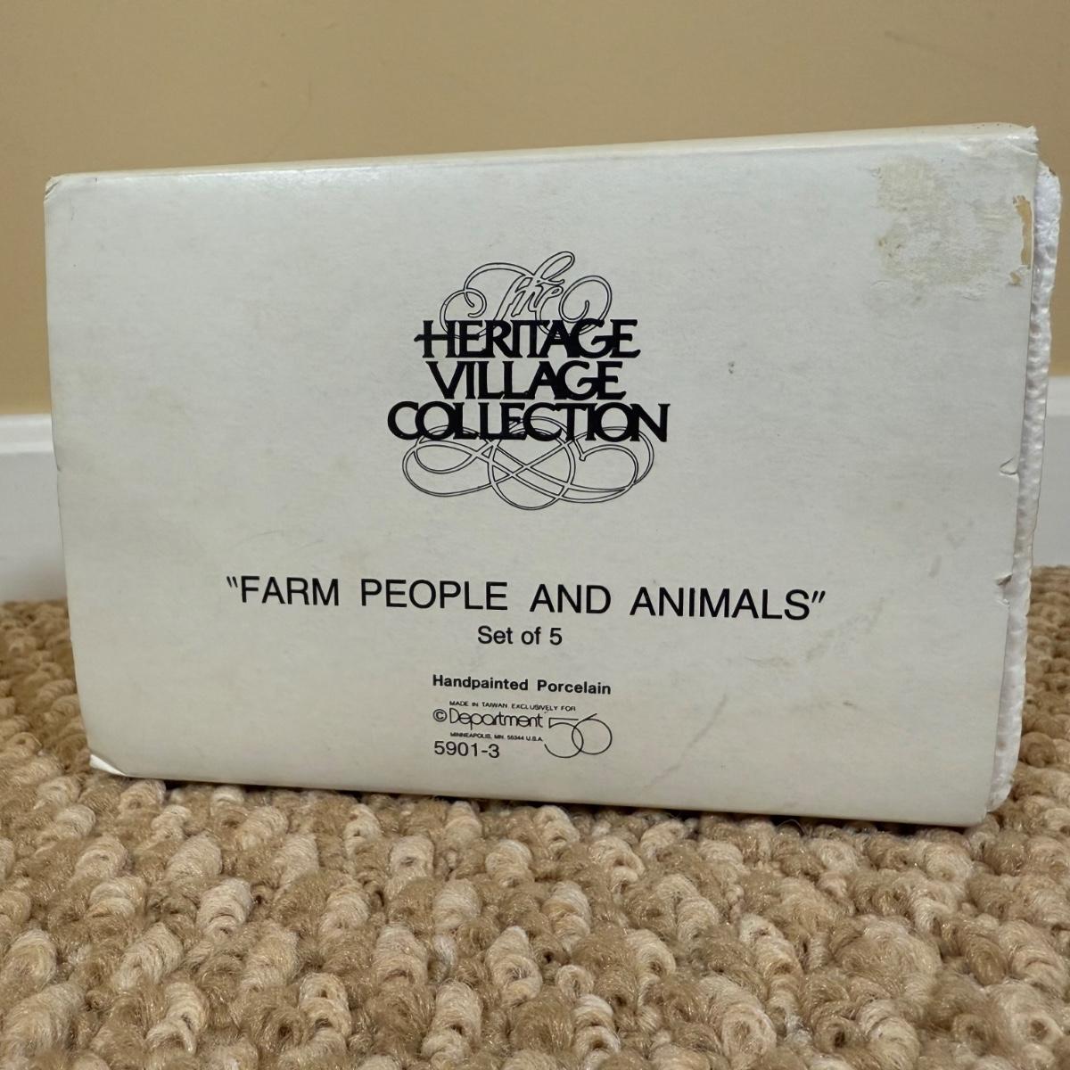 LOT 59B: Dept 56 Heritage Village Collection New England Series - PA Dutch Farmhouse, Blue Star Ice Co. and Harvesters w/ More Village Accessories