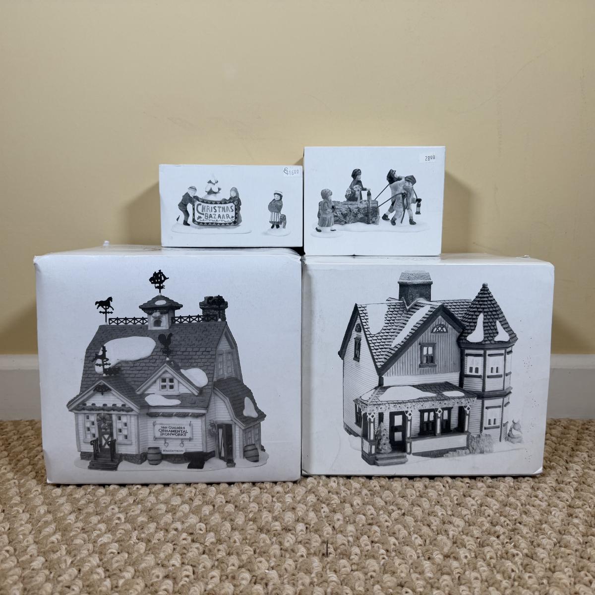 LOT 60B: Dept 56 Heritage Village Collection New England Series - Van Guilder's Ornamental Ironworks, Jeremiah Brewster House & More