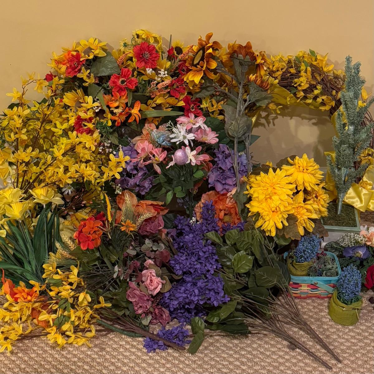 LOT 79B: Large Collection of Spring Faux Flowers & Wreaths