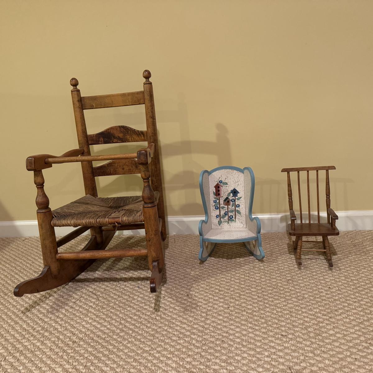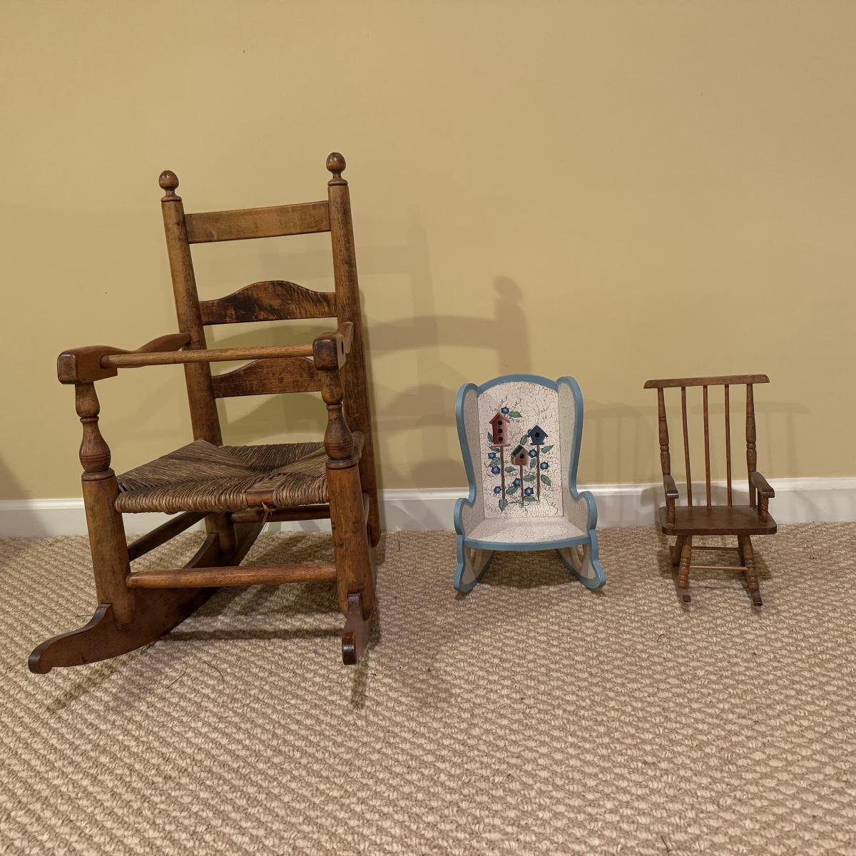 LOT 167B: Child's Rocking Chair & Two Mini Home Decor Rocking Chairs