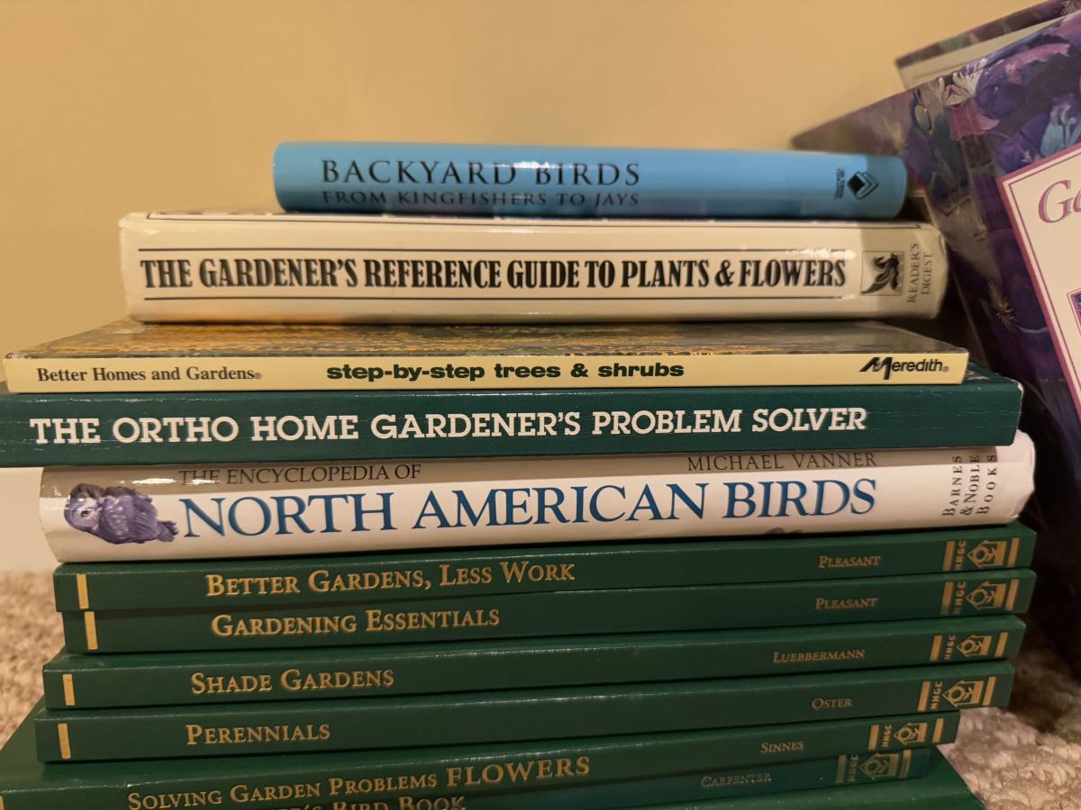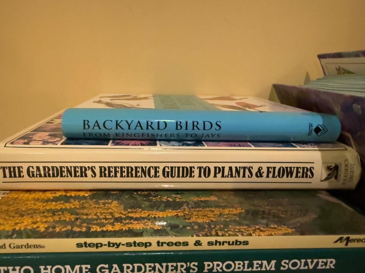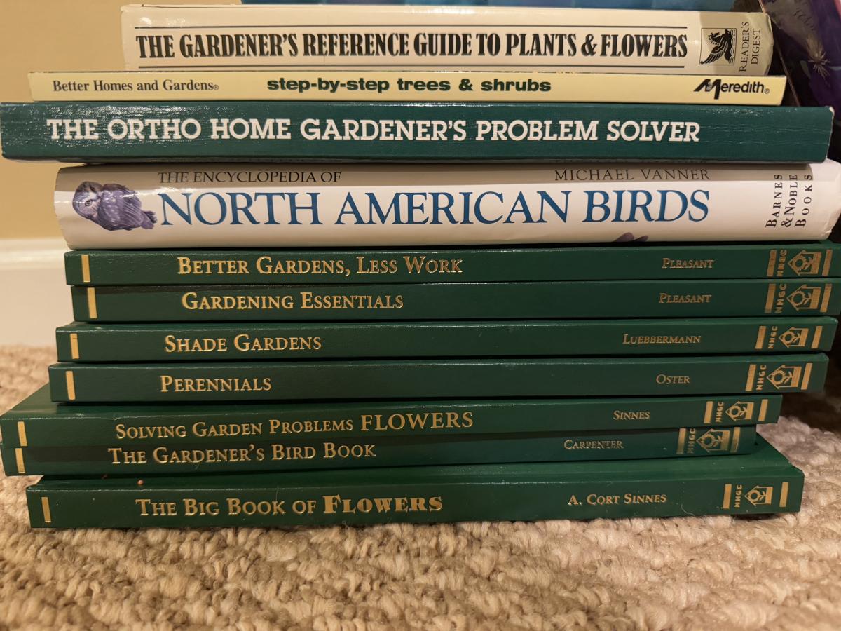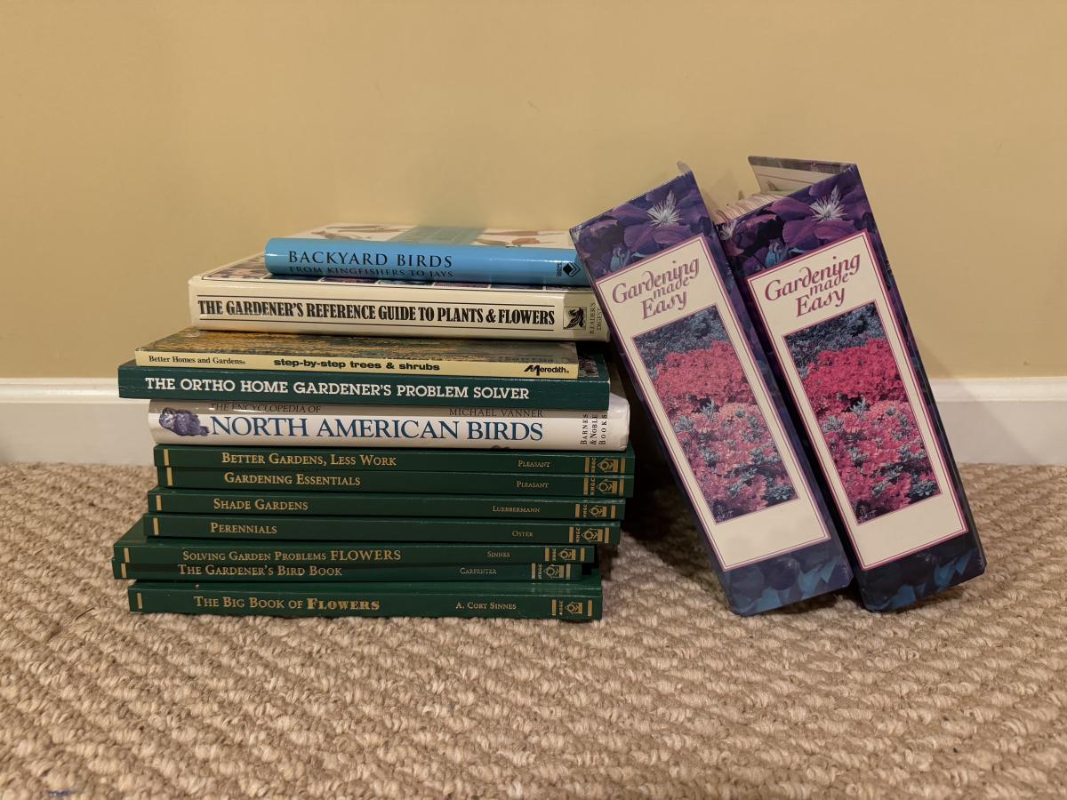 LOT 170B: Hummingbird Feeder & Parts w/ Books about Gardening & Bird Watching