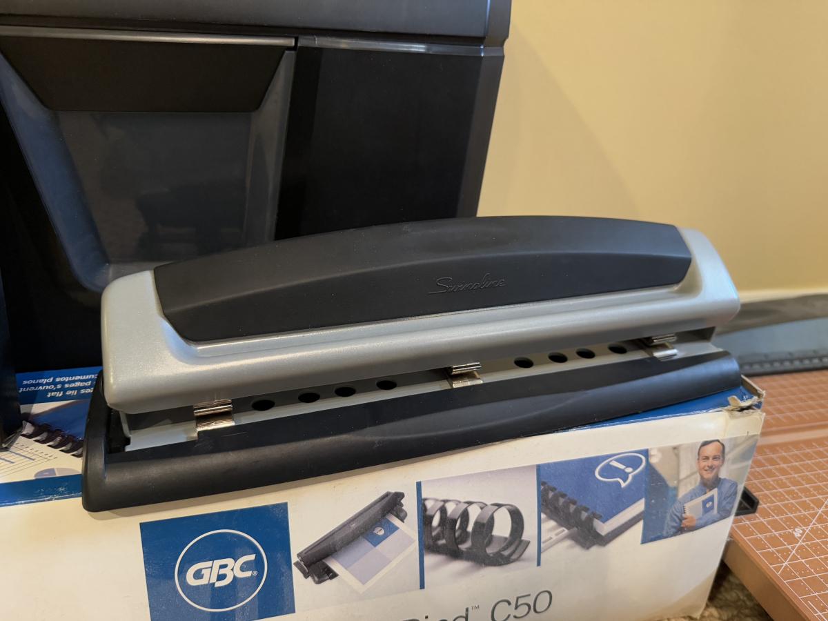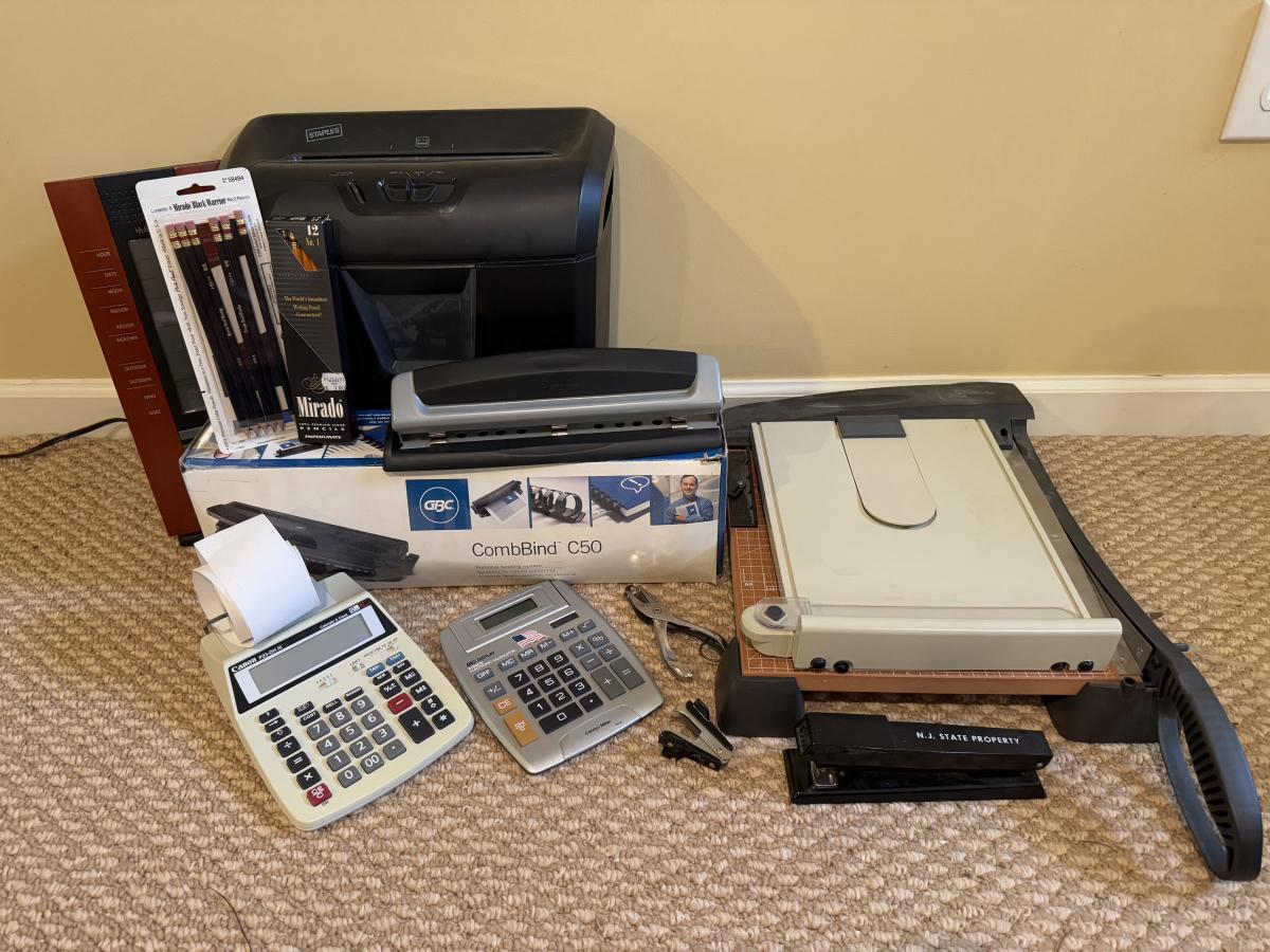 LOT 175B: Office Supply Lot - Staples Shredder, CombBind C50 Binding Tool, Xacto Paper Cutter & More