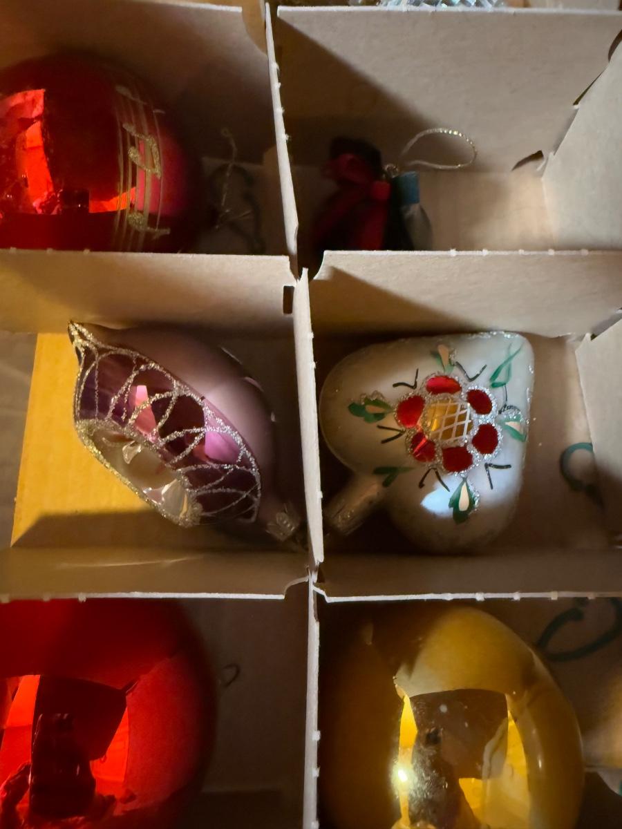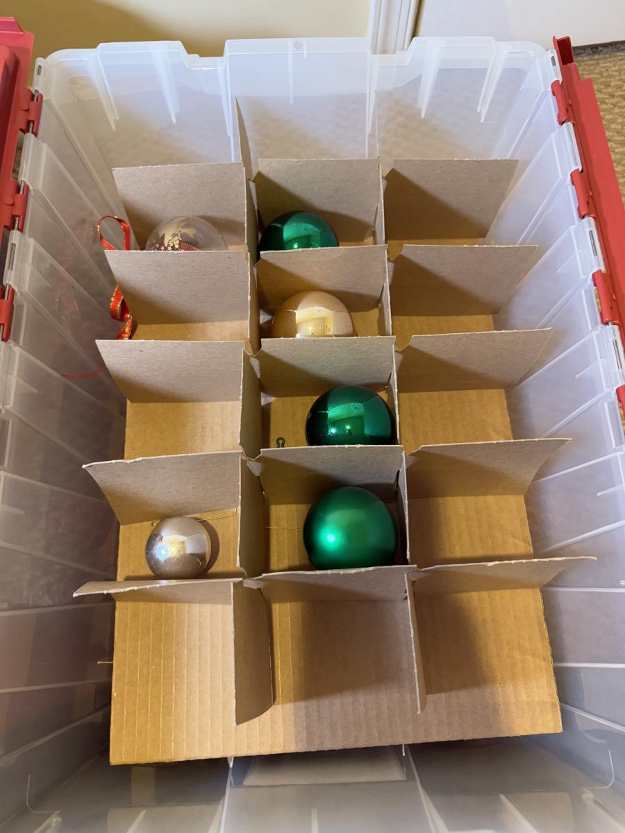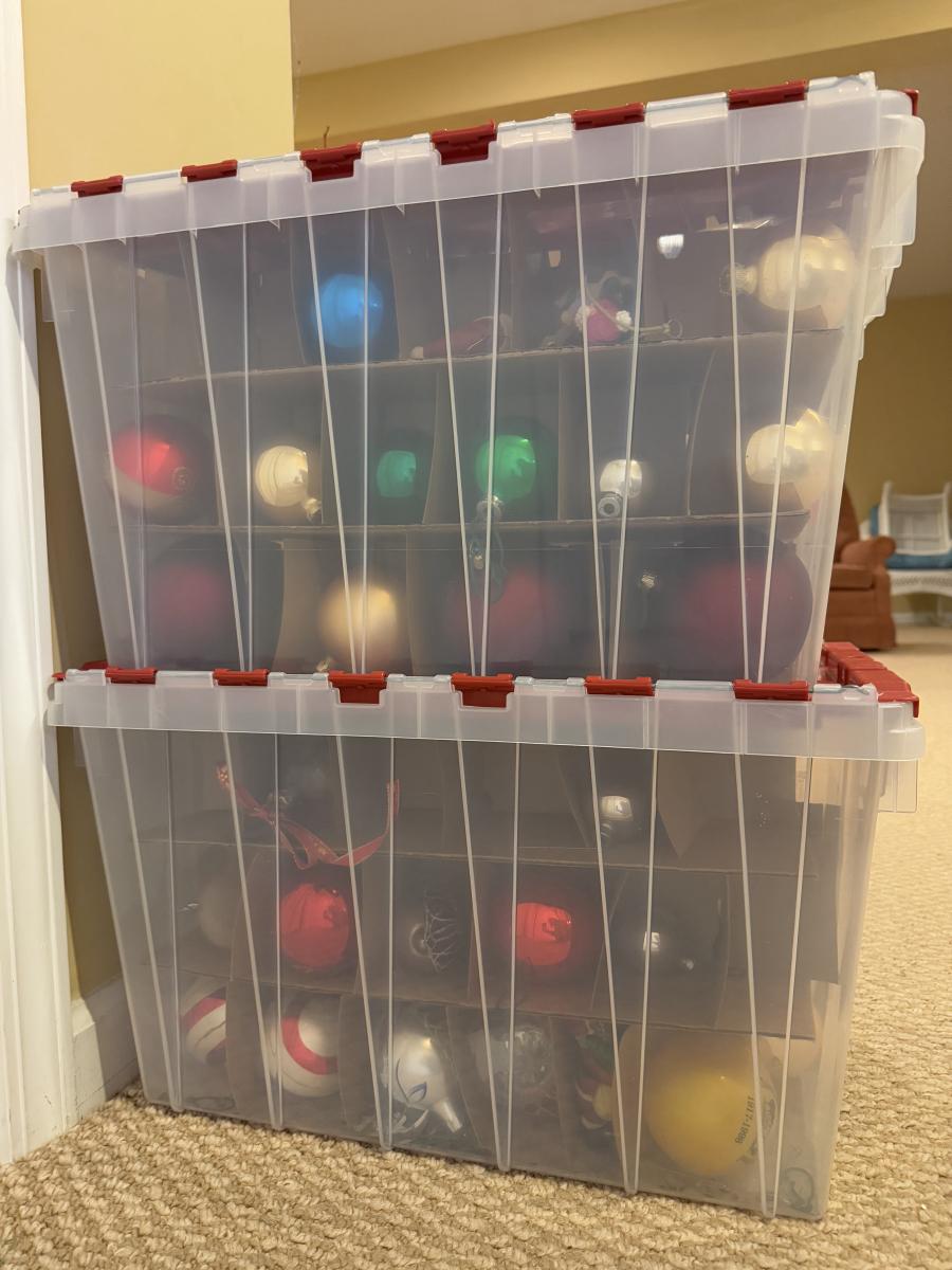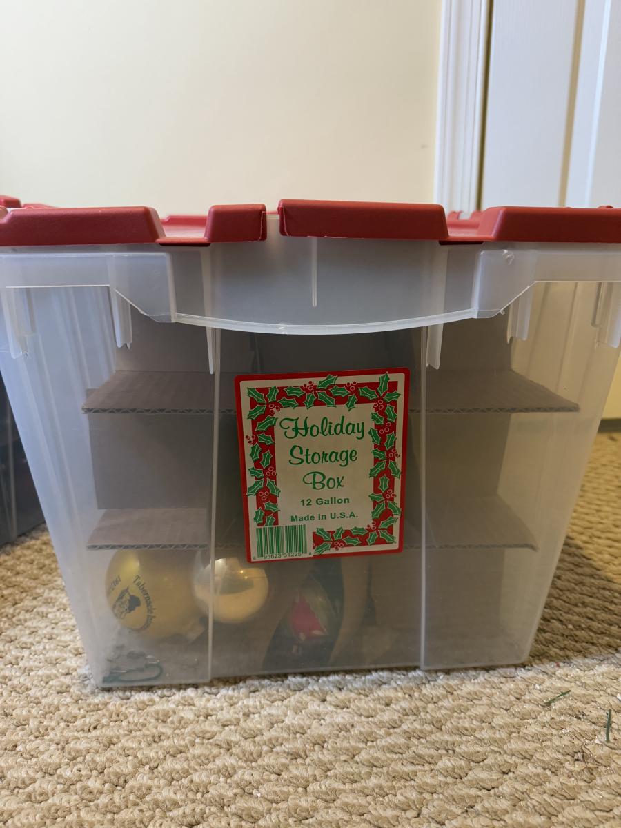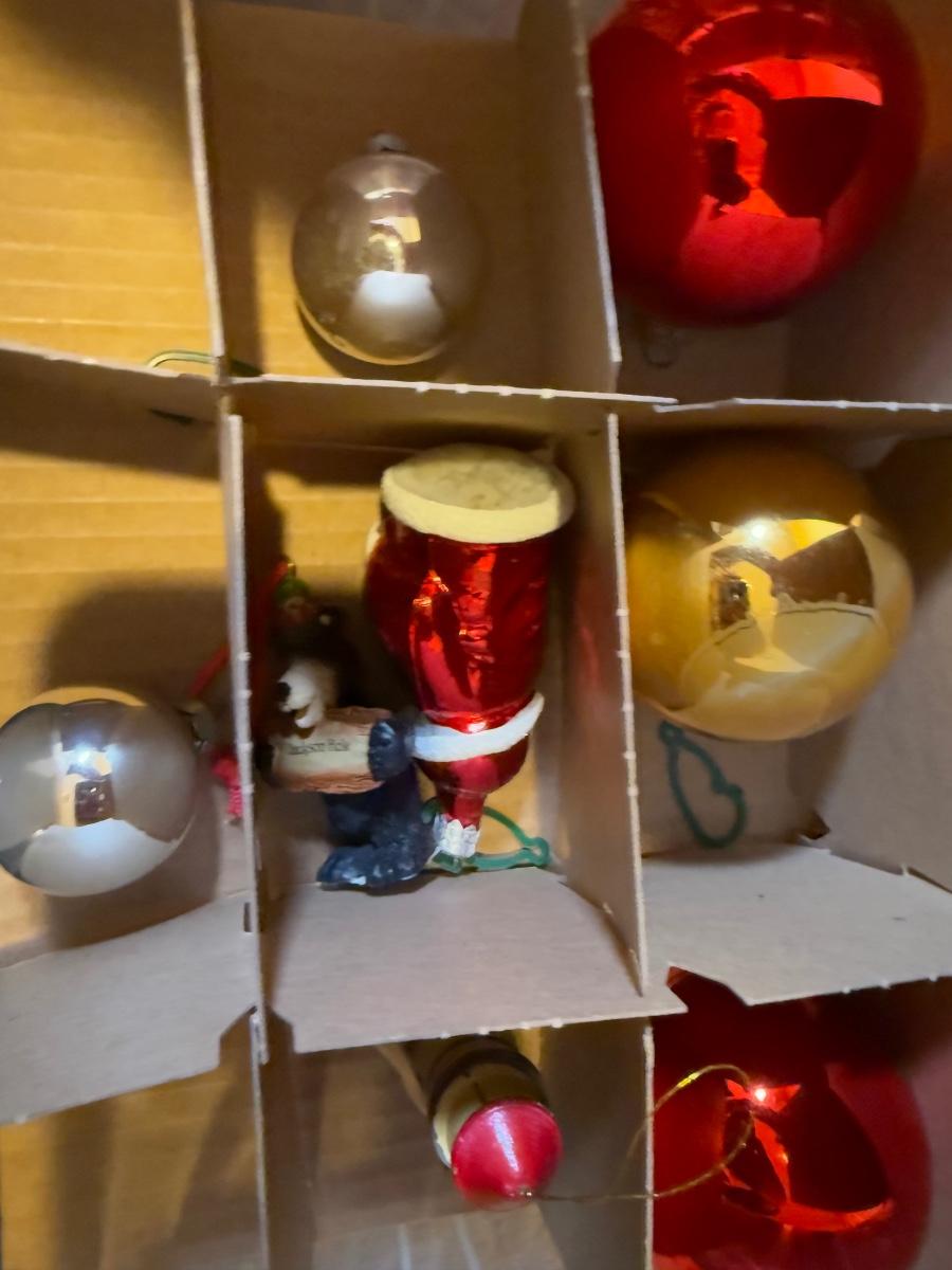 LOT 179B: Two Holiday Ornament Storage Totes w/ Glass Ornaments, Mini Tree