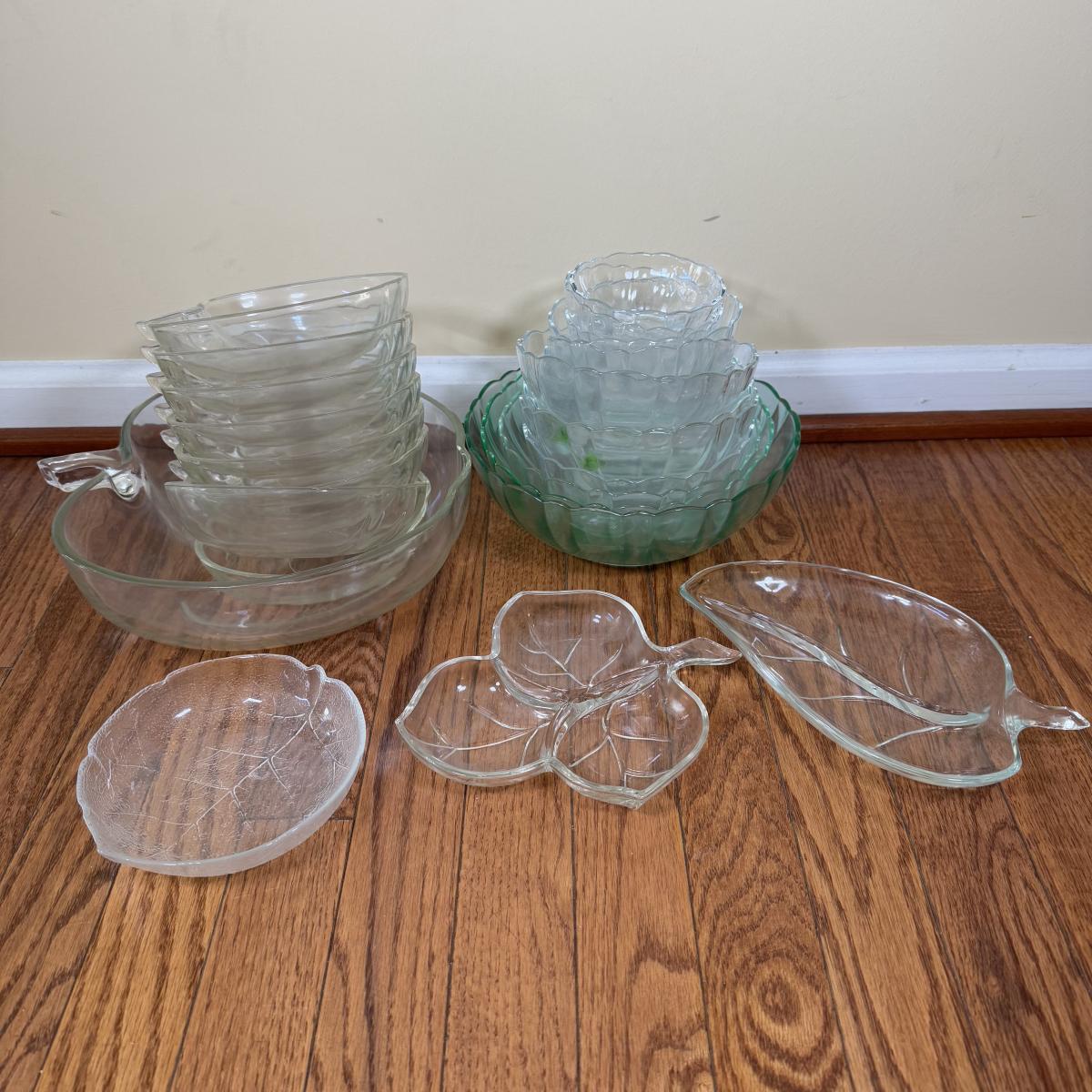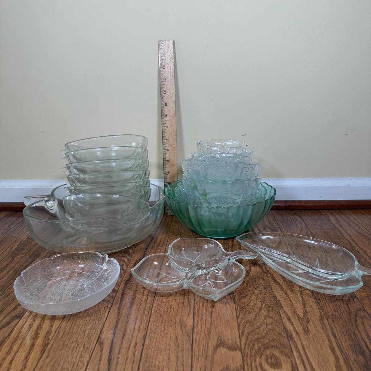 LOT 180N: Collection of Glass Bowls & Shaped Dishes - Apple Set, Arc Set & Tinted Bowls