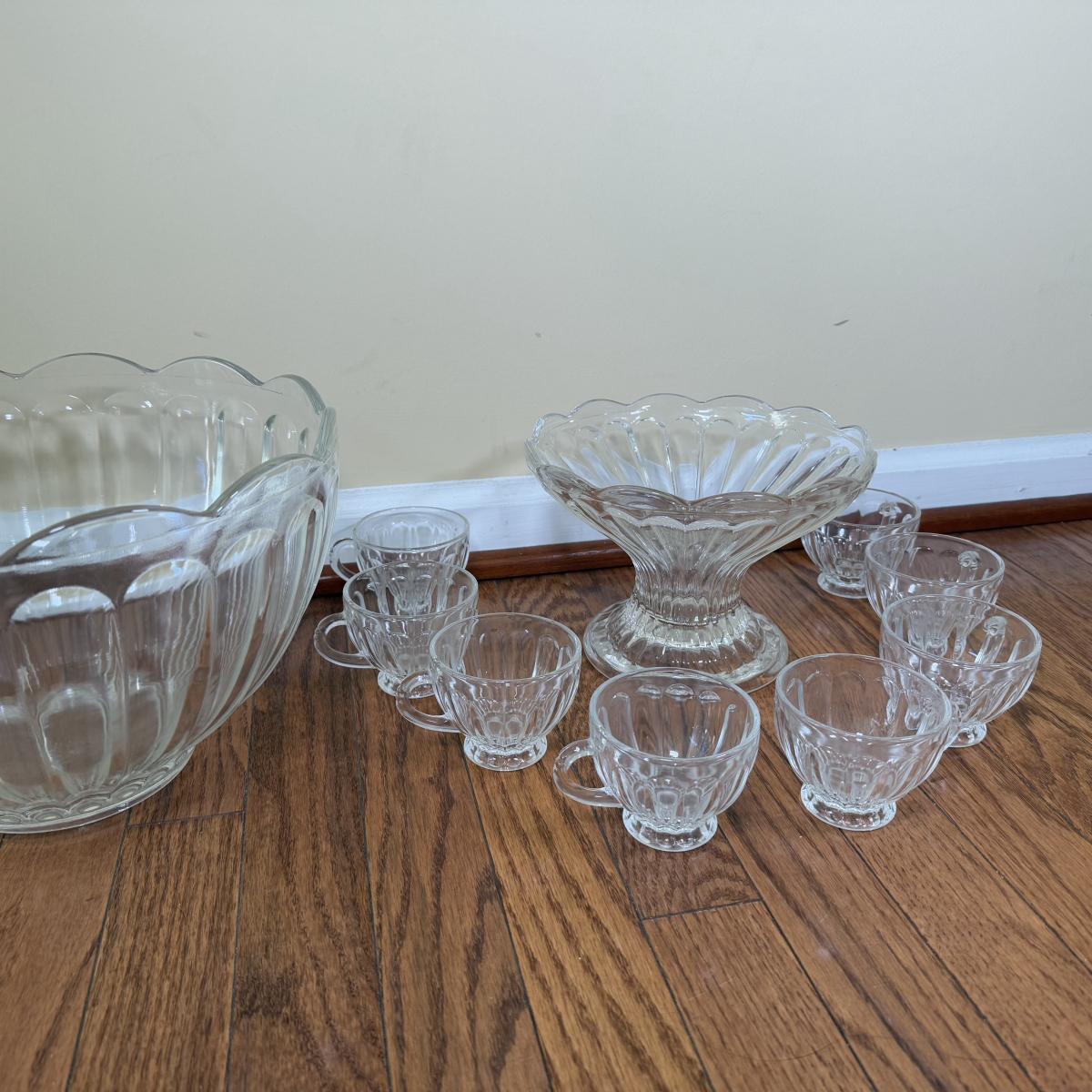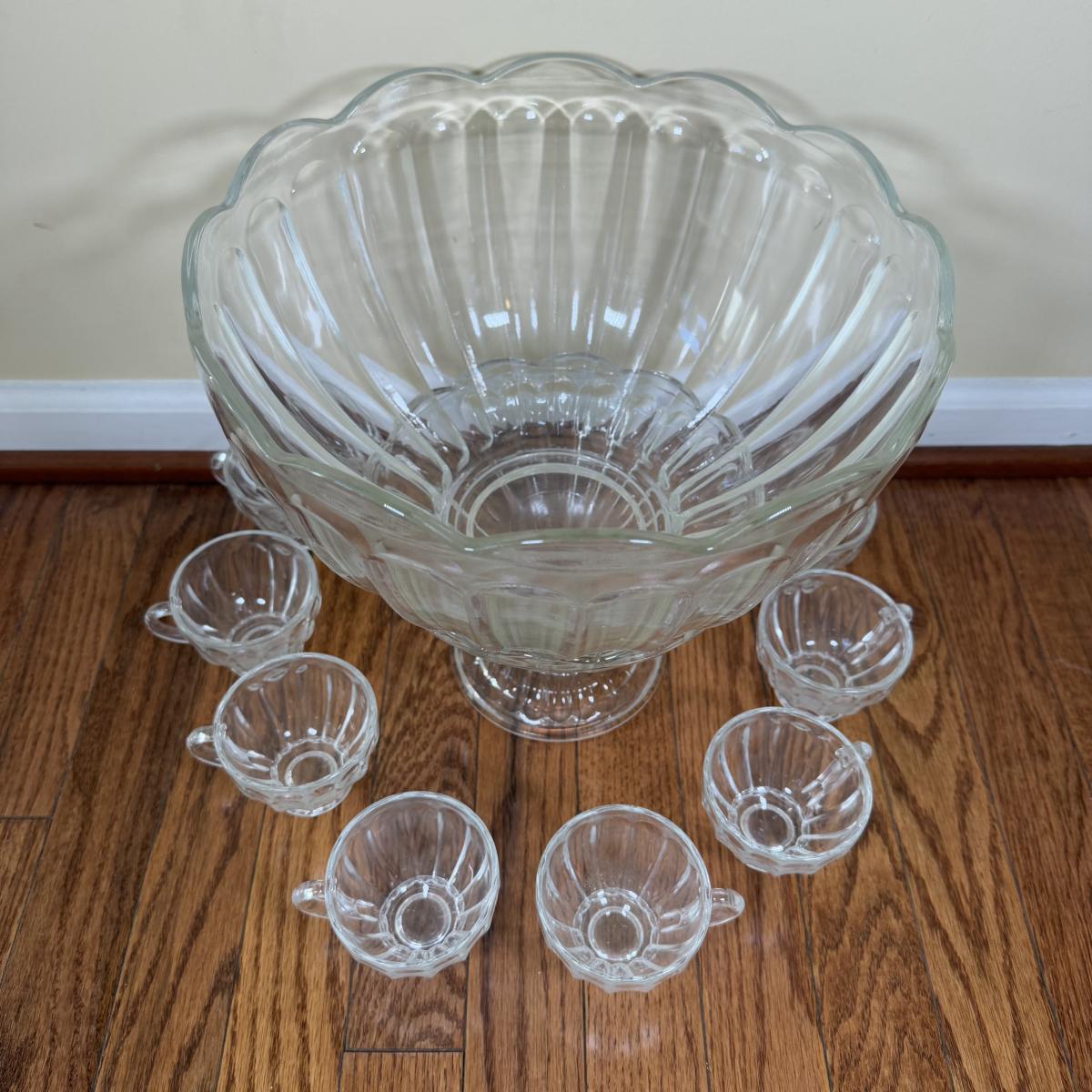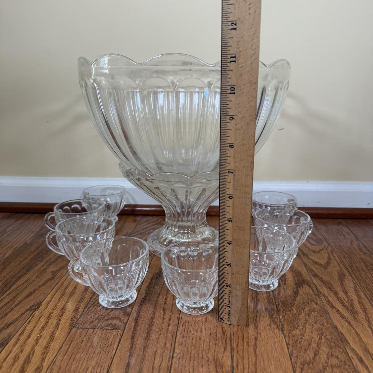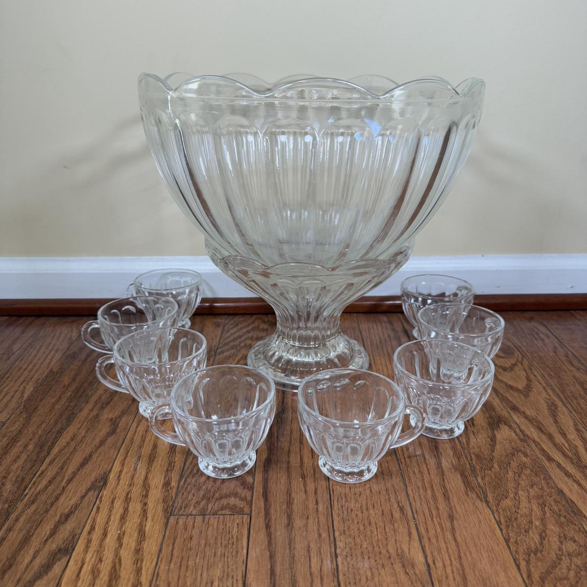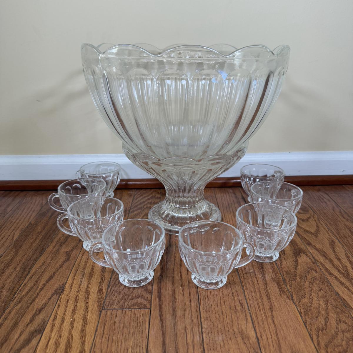 LOT 181N: Large Punch Bowl w/ Pedestal & 8 Matching Cups