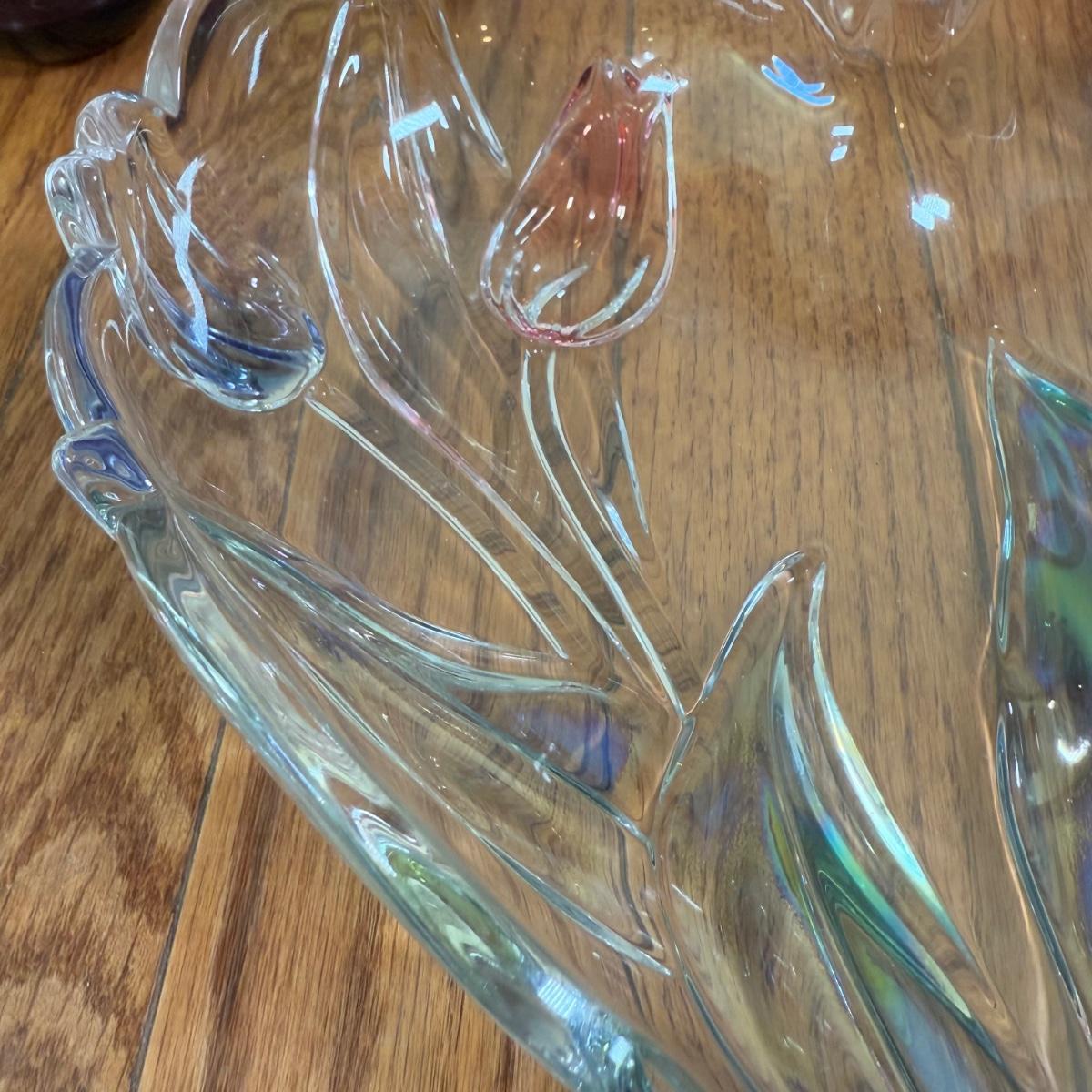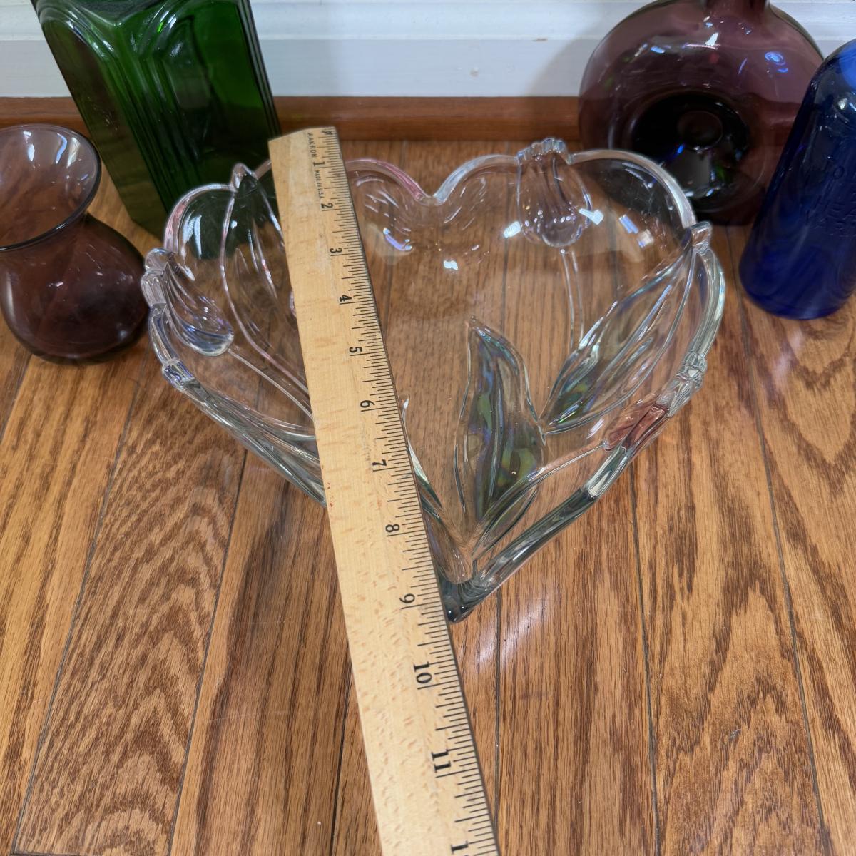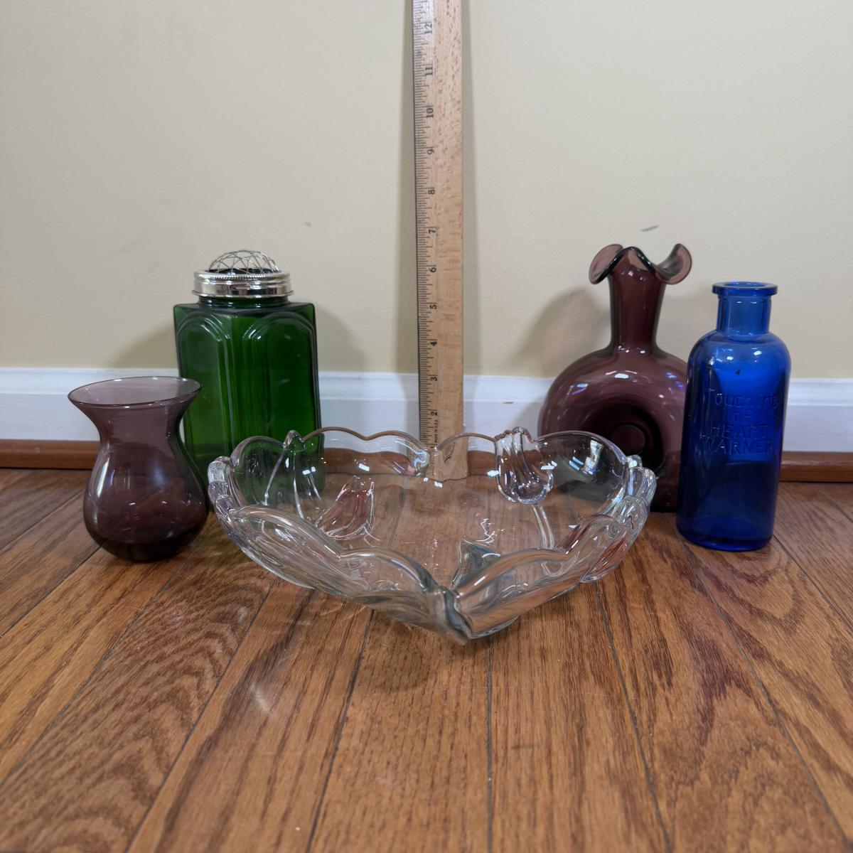 LOT 183N: Beautiful Tinted Glass Tulip Heart Shaped Bowl w/ Collection of Color Glass Pieces