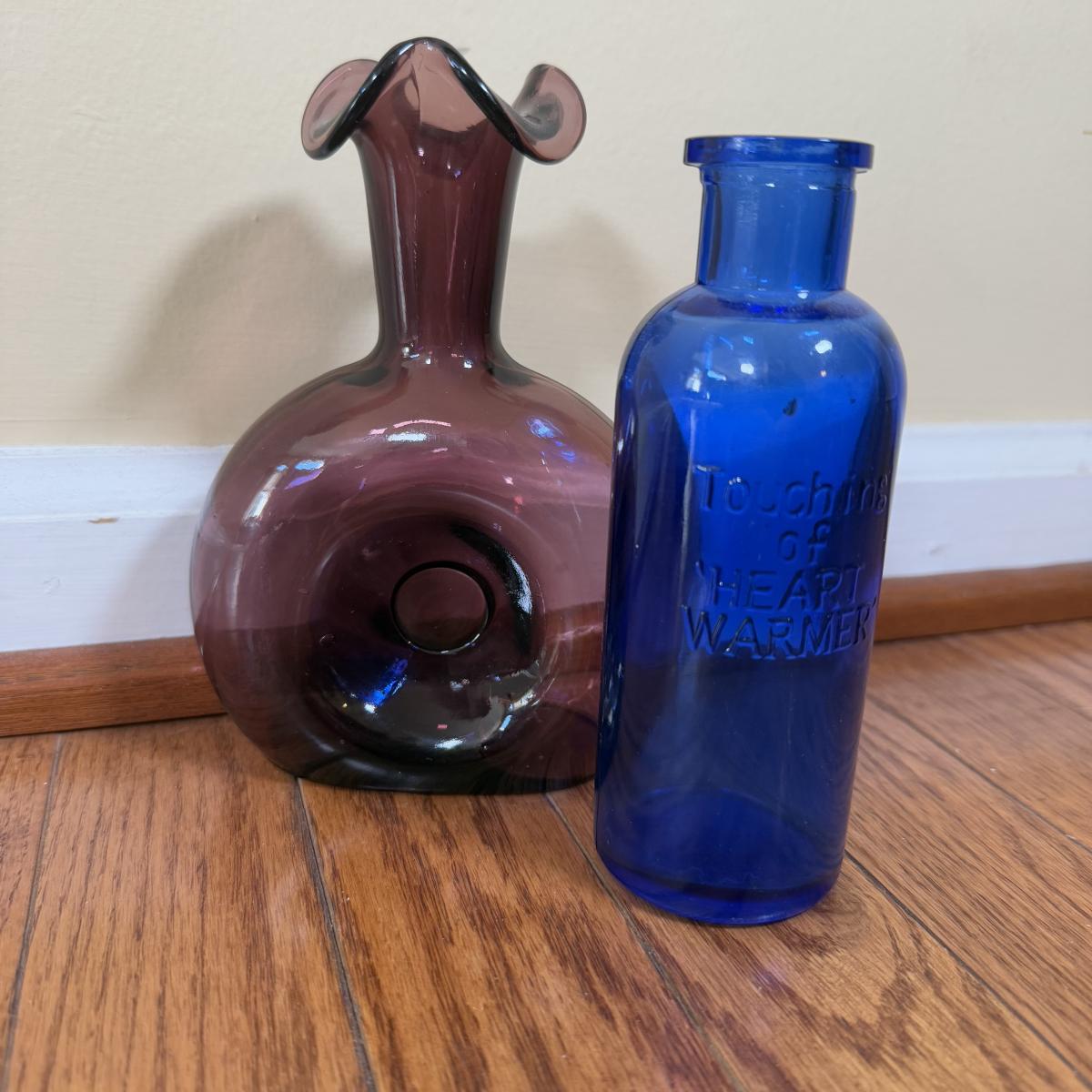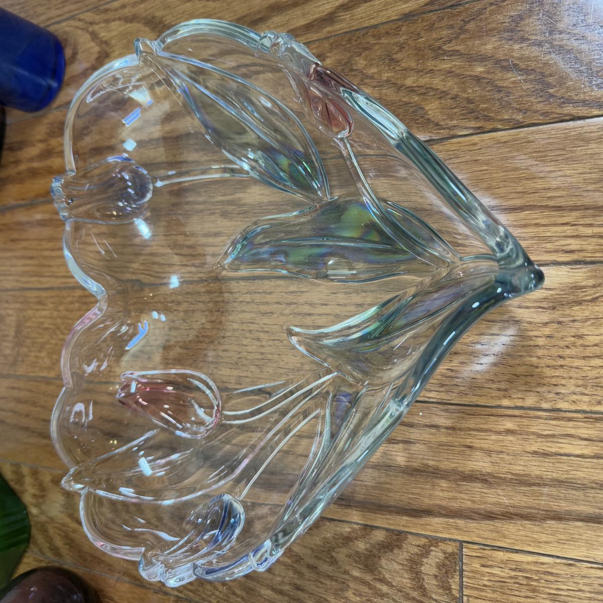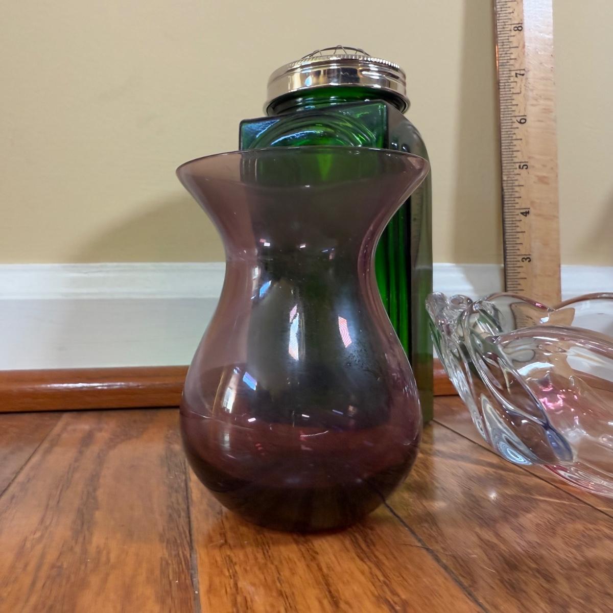 LOT 183N: Beautiful Tinted Glass Tulip Heart Shaped Bowl w/ Collection of Color Glass Pieces