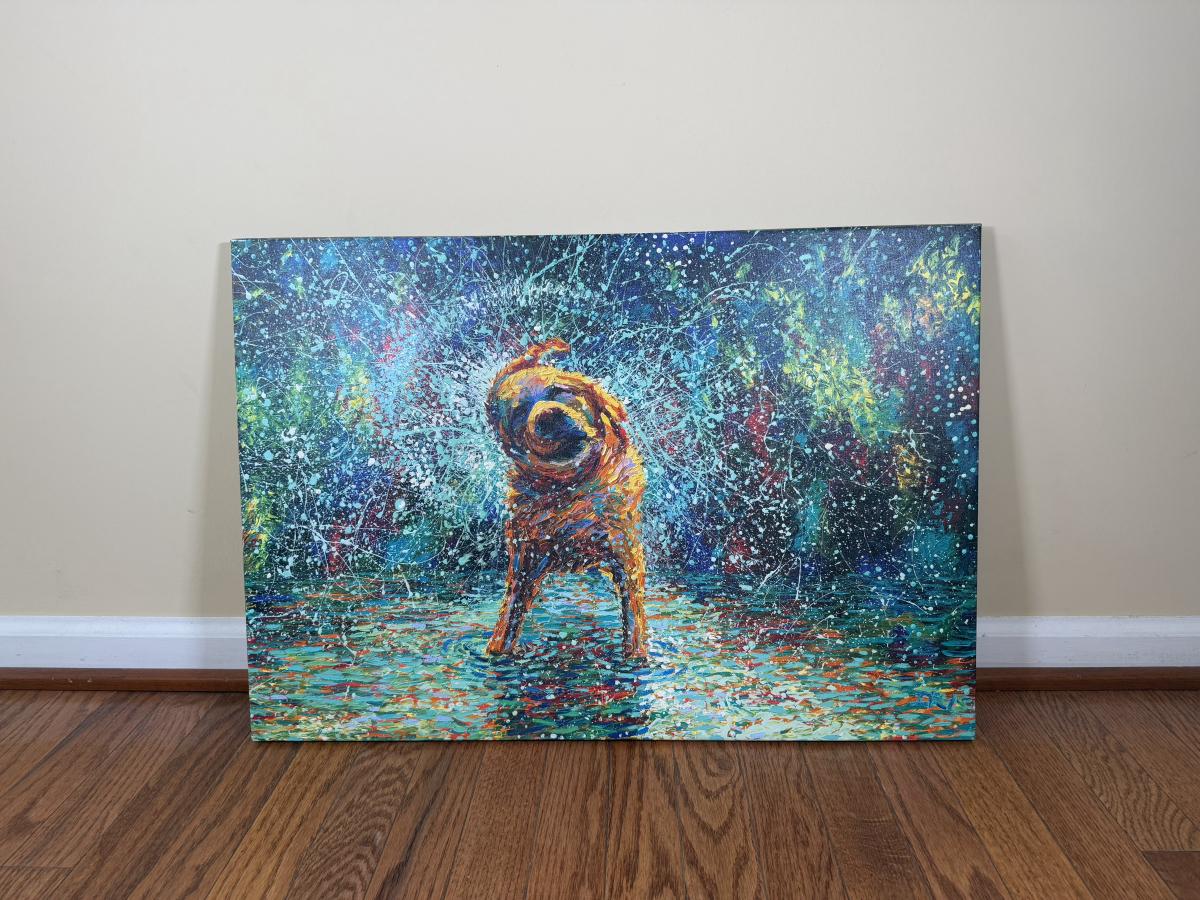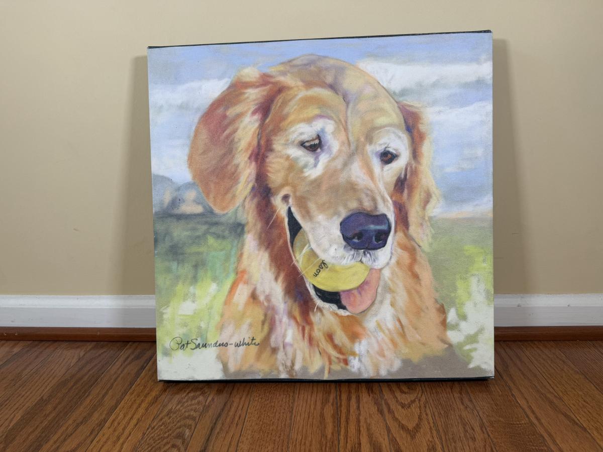 LOT 187L: Canvas Wall Art - Golden Retrievers, Pink Castle & Soccer Goal