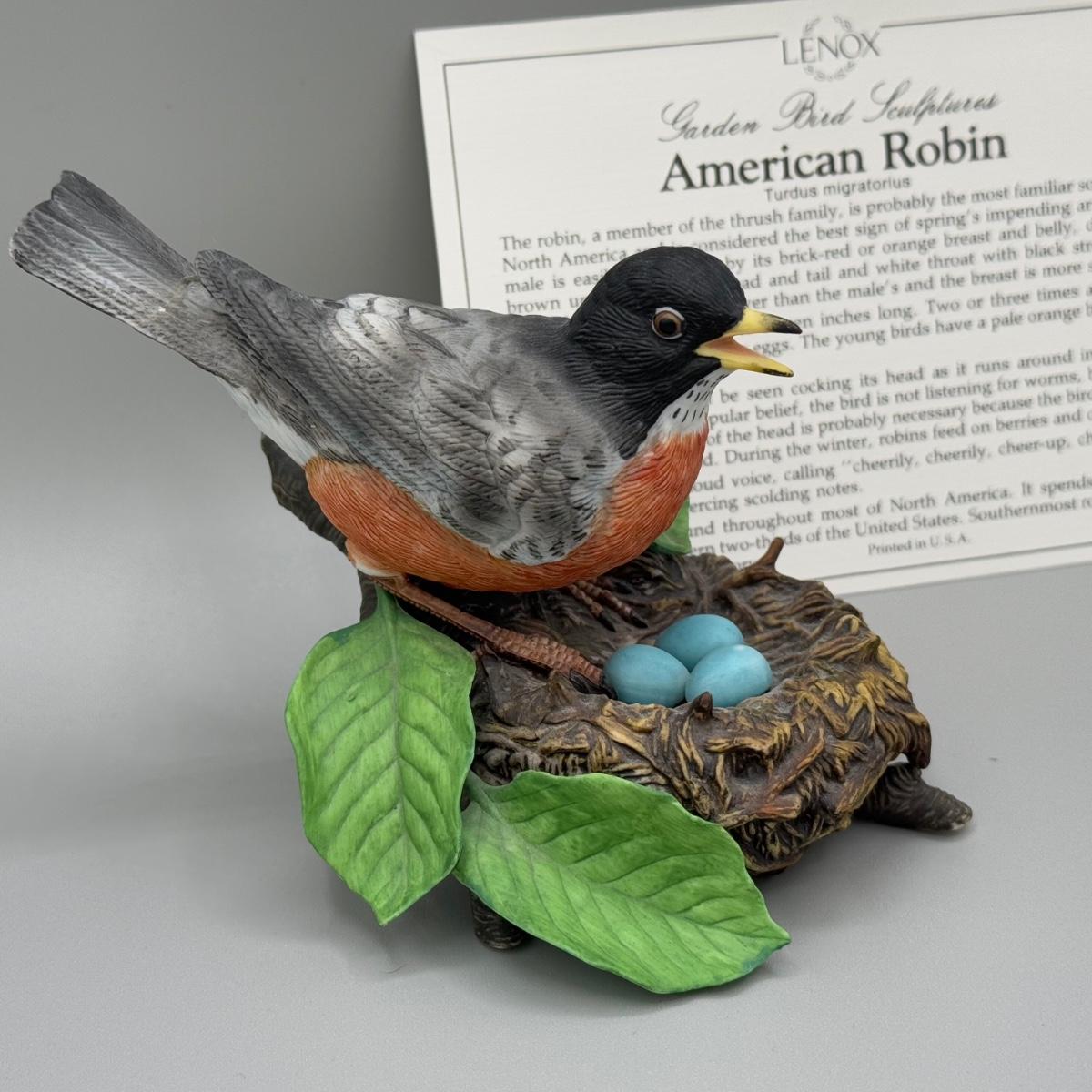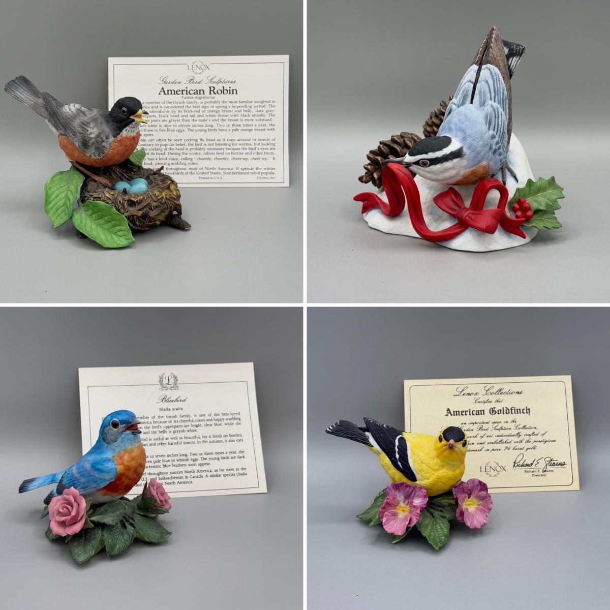LOT 189N: Lenox Porcelain Birds - American Robin, 2001 Christmas Nuthatch, Bluebird & American Goldfinch
