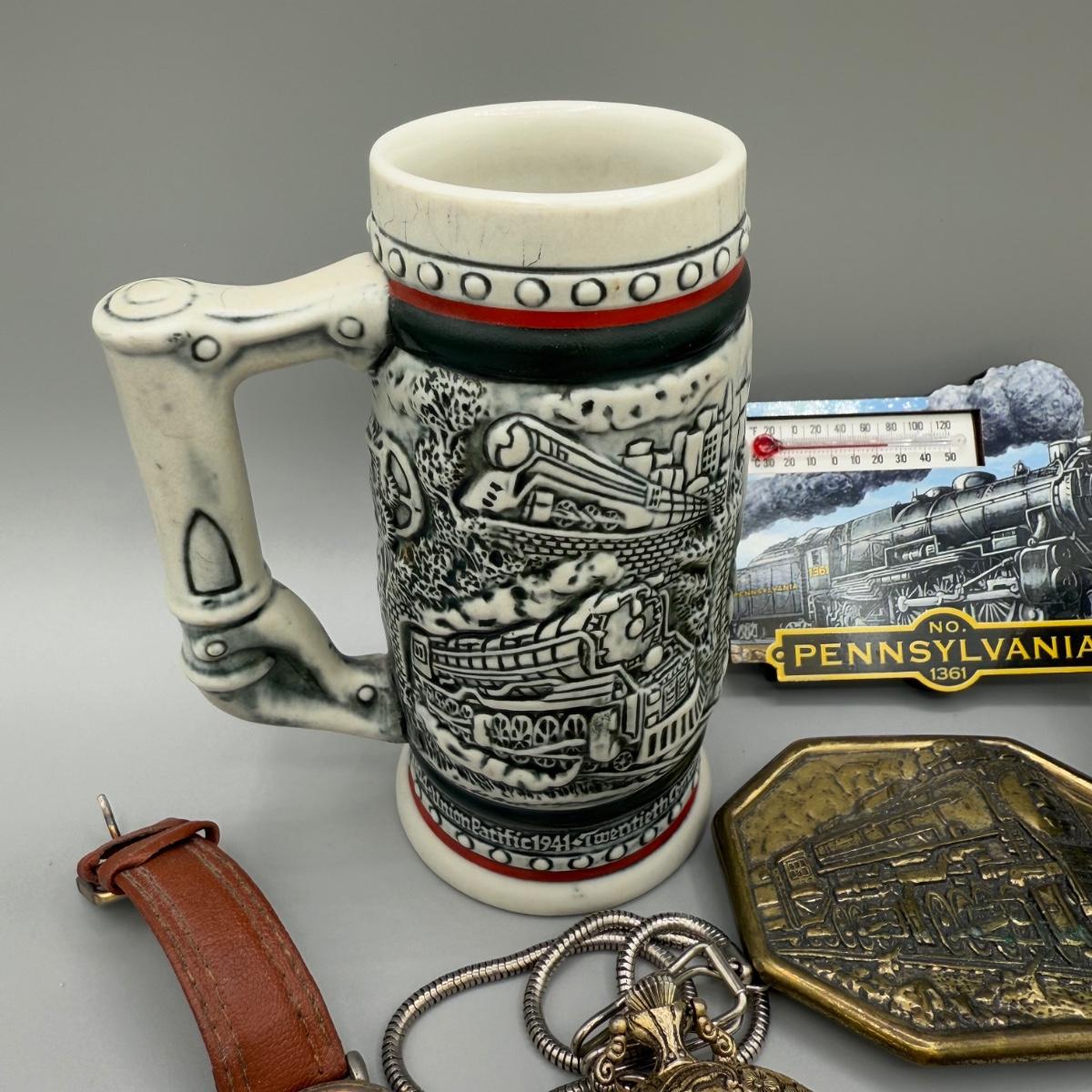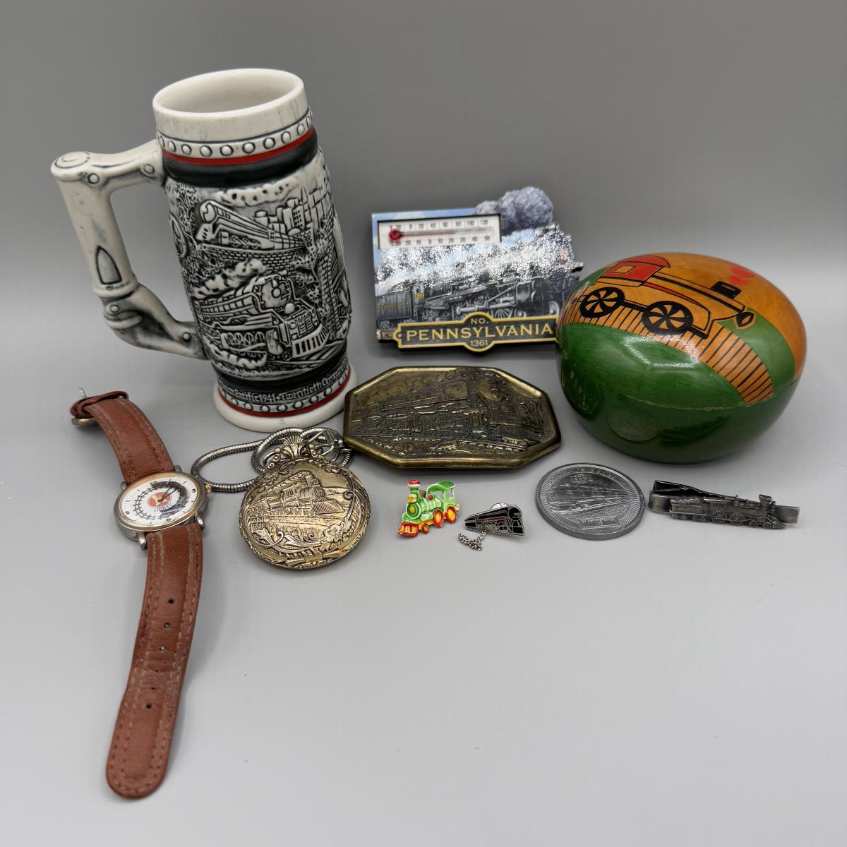 LOT 198J: Train Collection - Lionel Wristwatch, Pocket Watch, Avon Mug & More