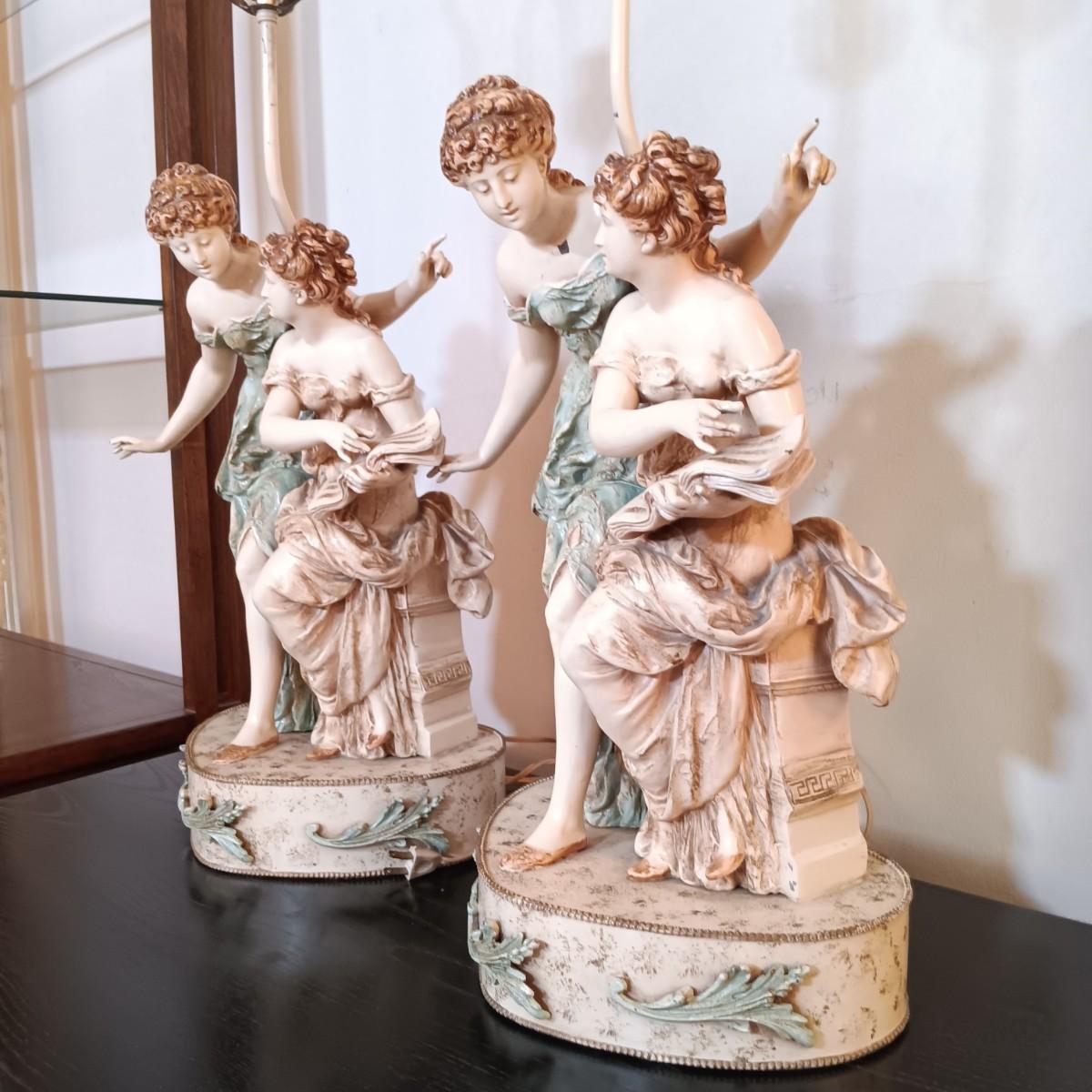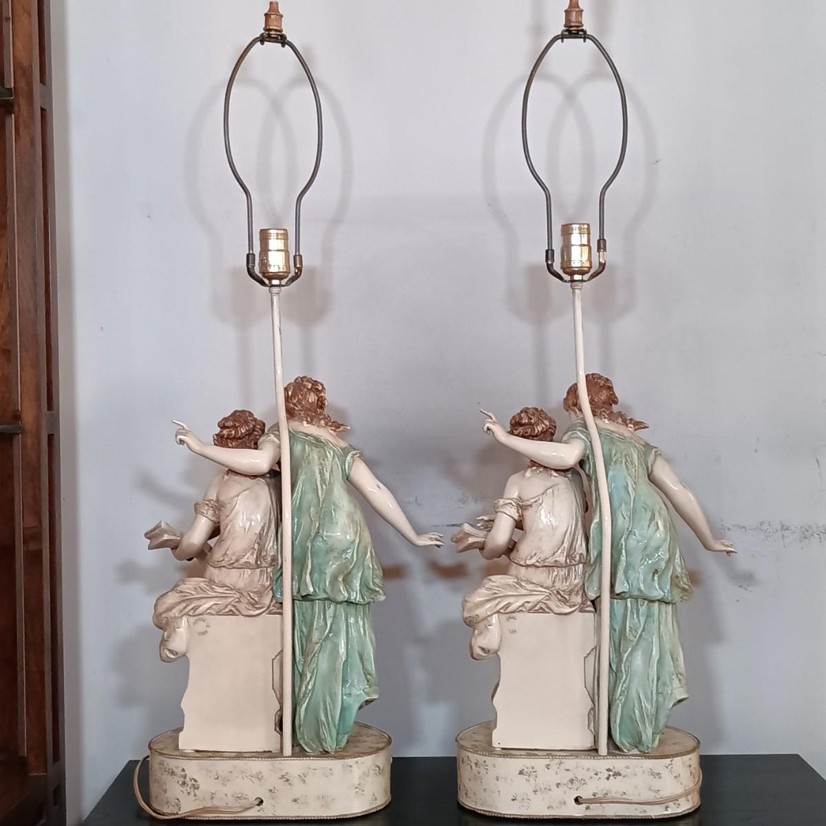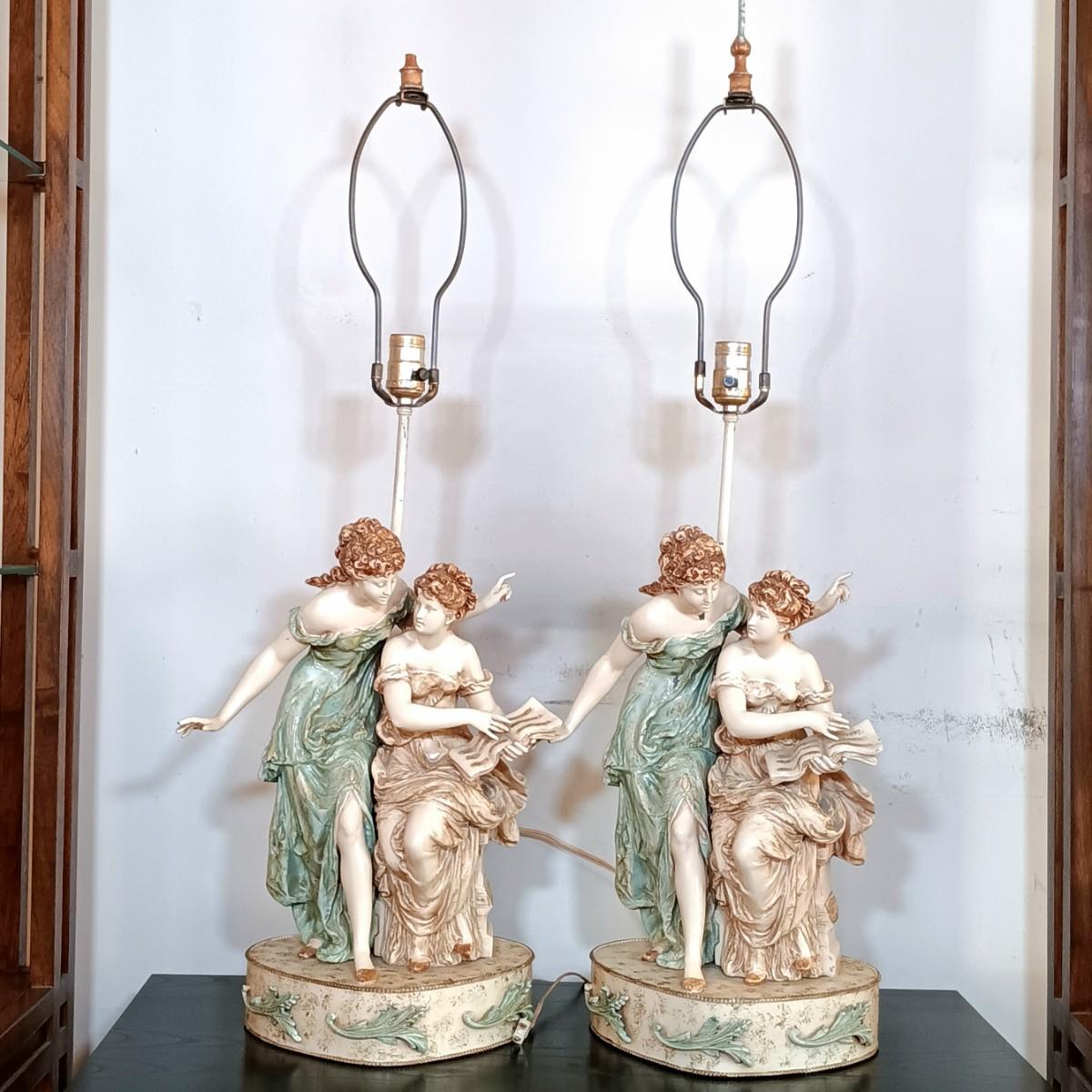LOT 32: Pair of Neoclassical Style Metal Table Lamps Francaise Paris