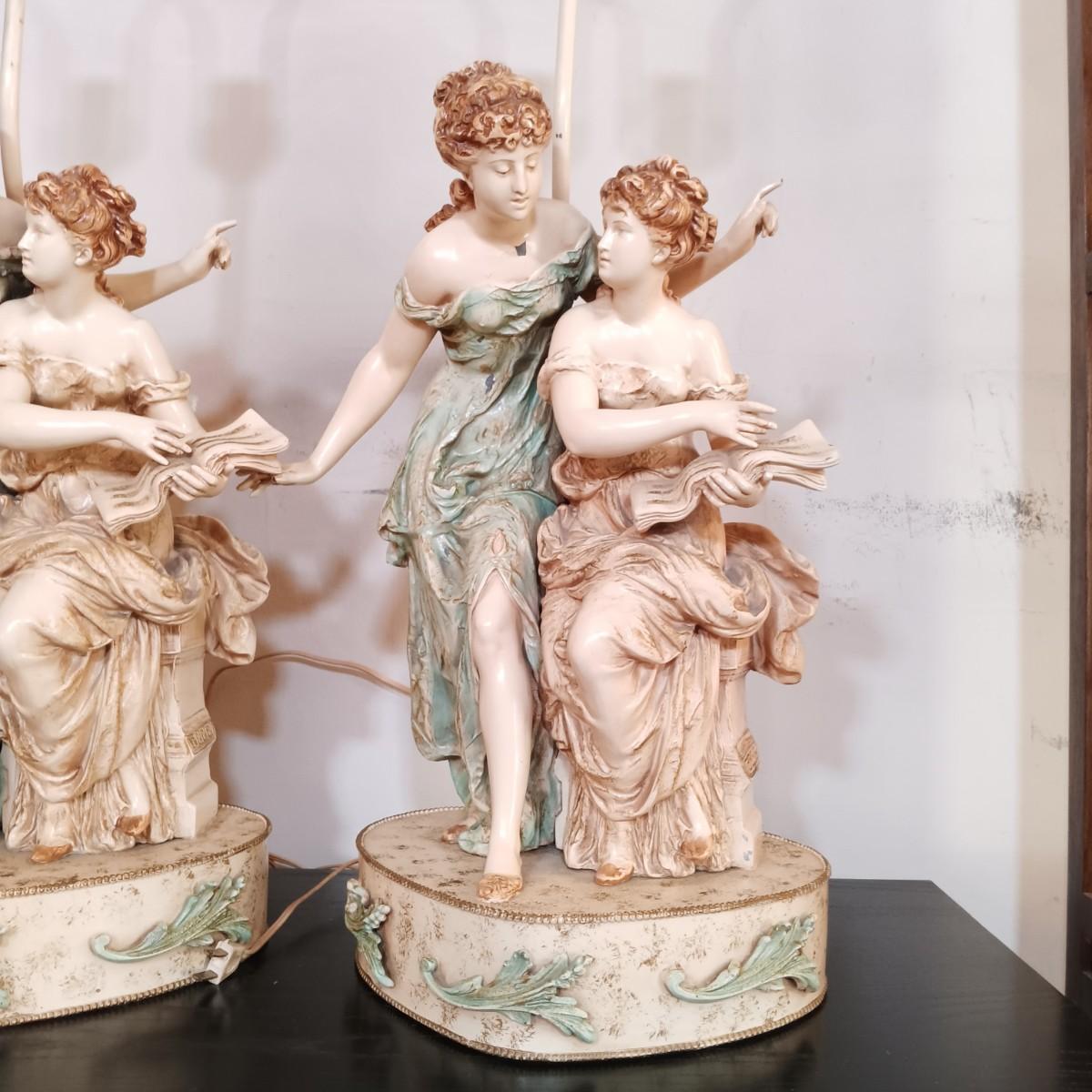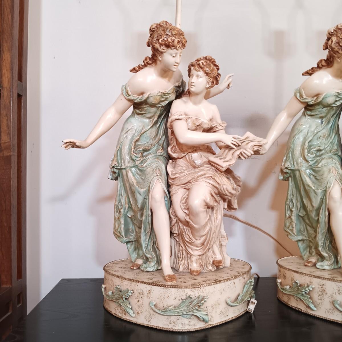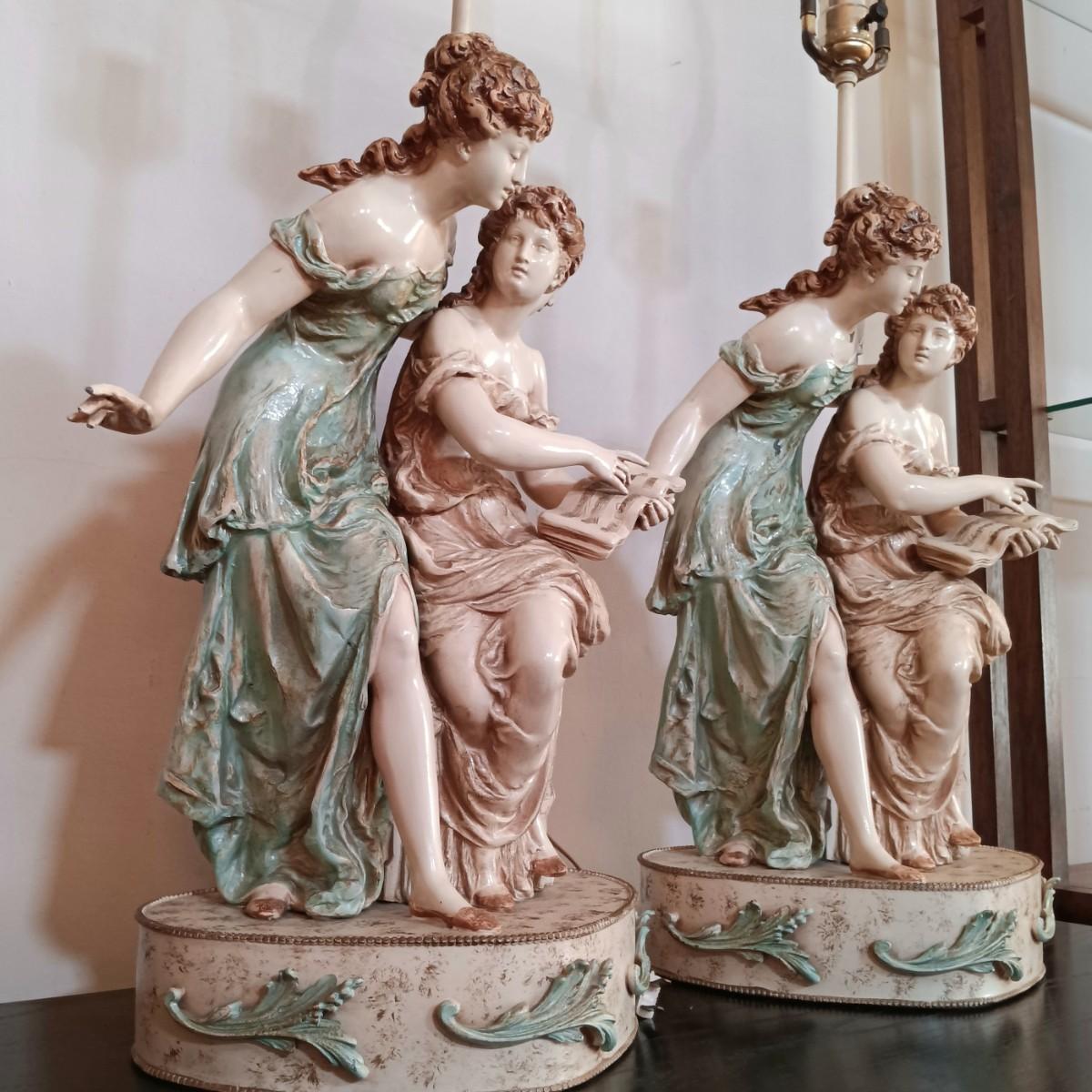 LOT 32: Pair of Neoclassical Style Metal Table Lamps Francaise Paris
