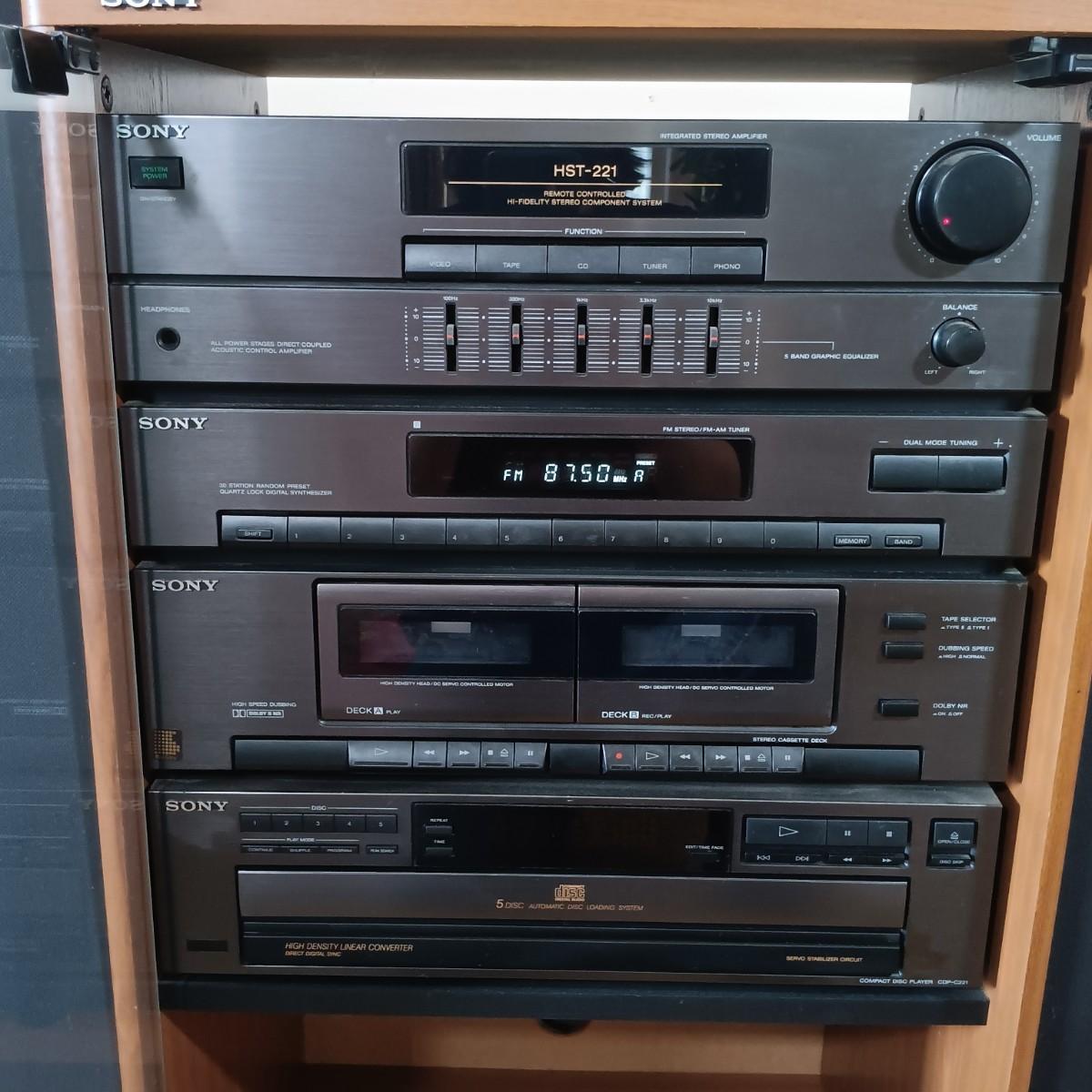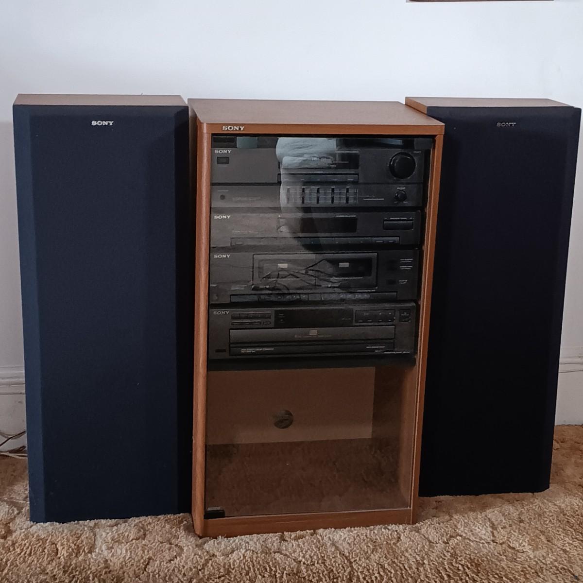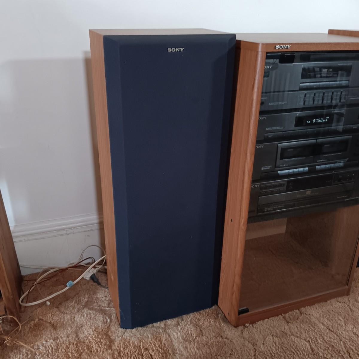 LOT 38: Sony HST-221 Stereo System with Sony Speakers SS-U221 and Cabinet
