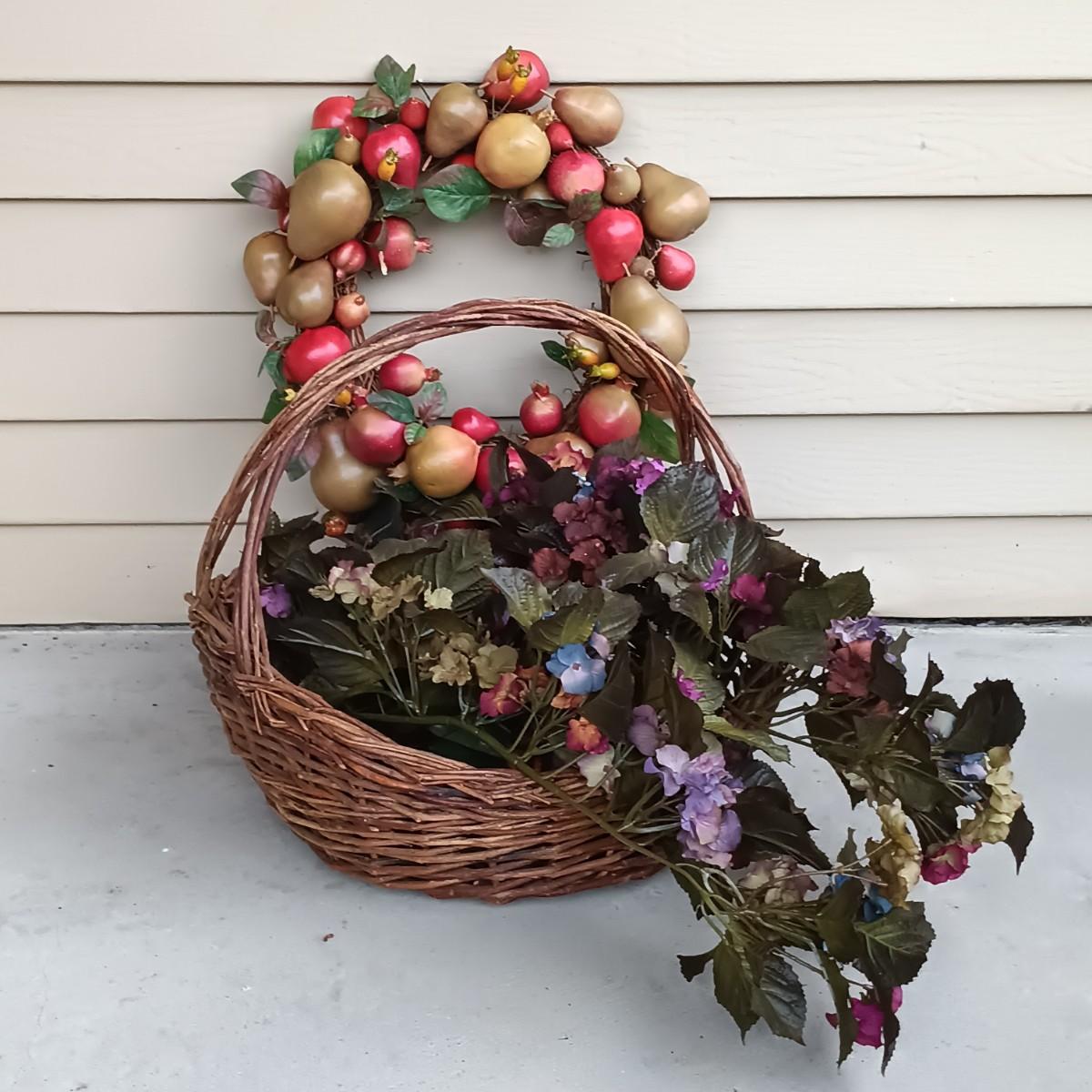 LOT 46: Wicker Basket with Floral Swags and Wreath