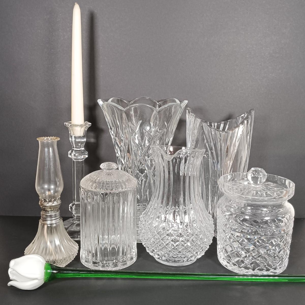 LOT 53: Art Glass Rose with a Collection of Crystal