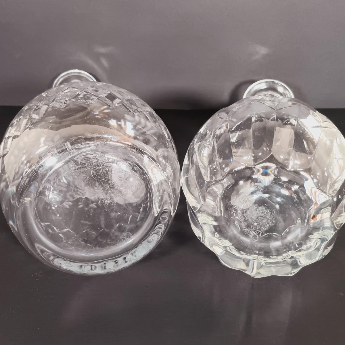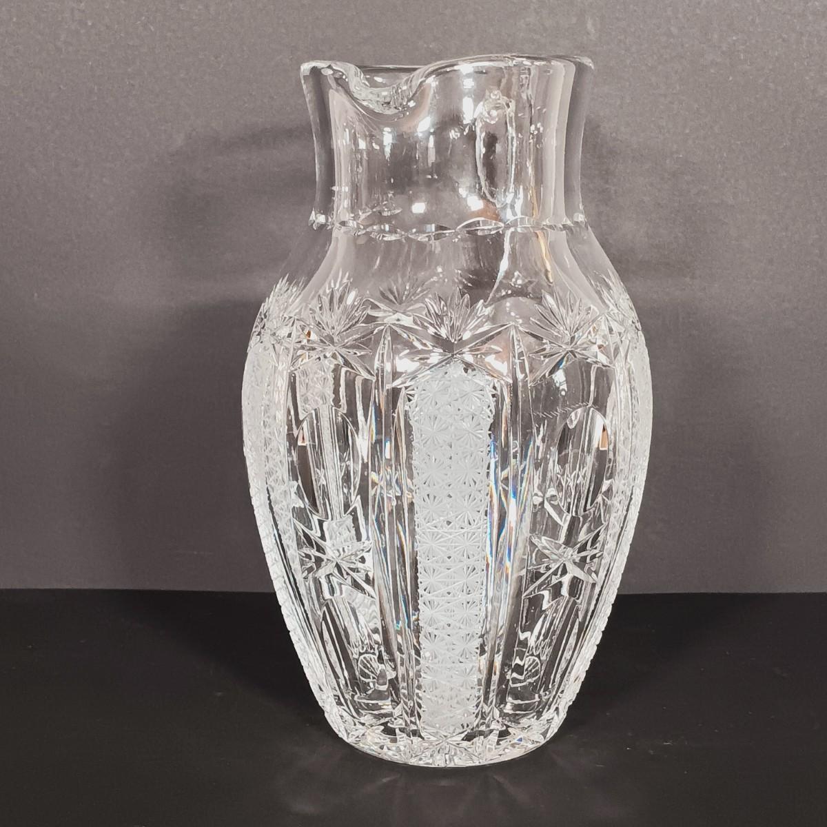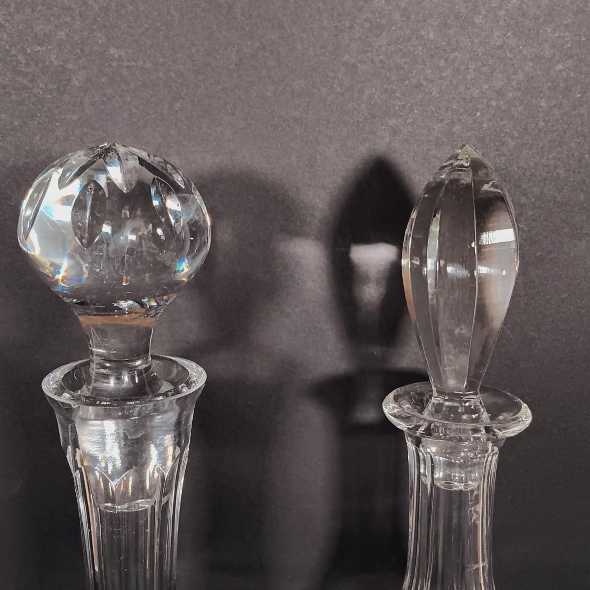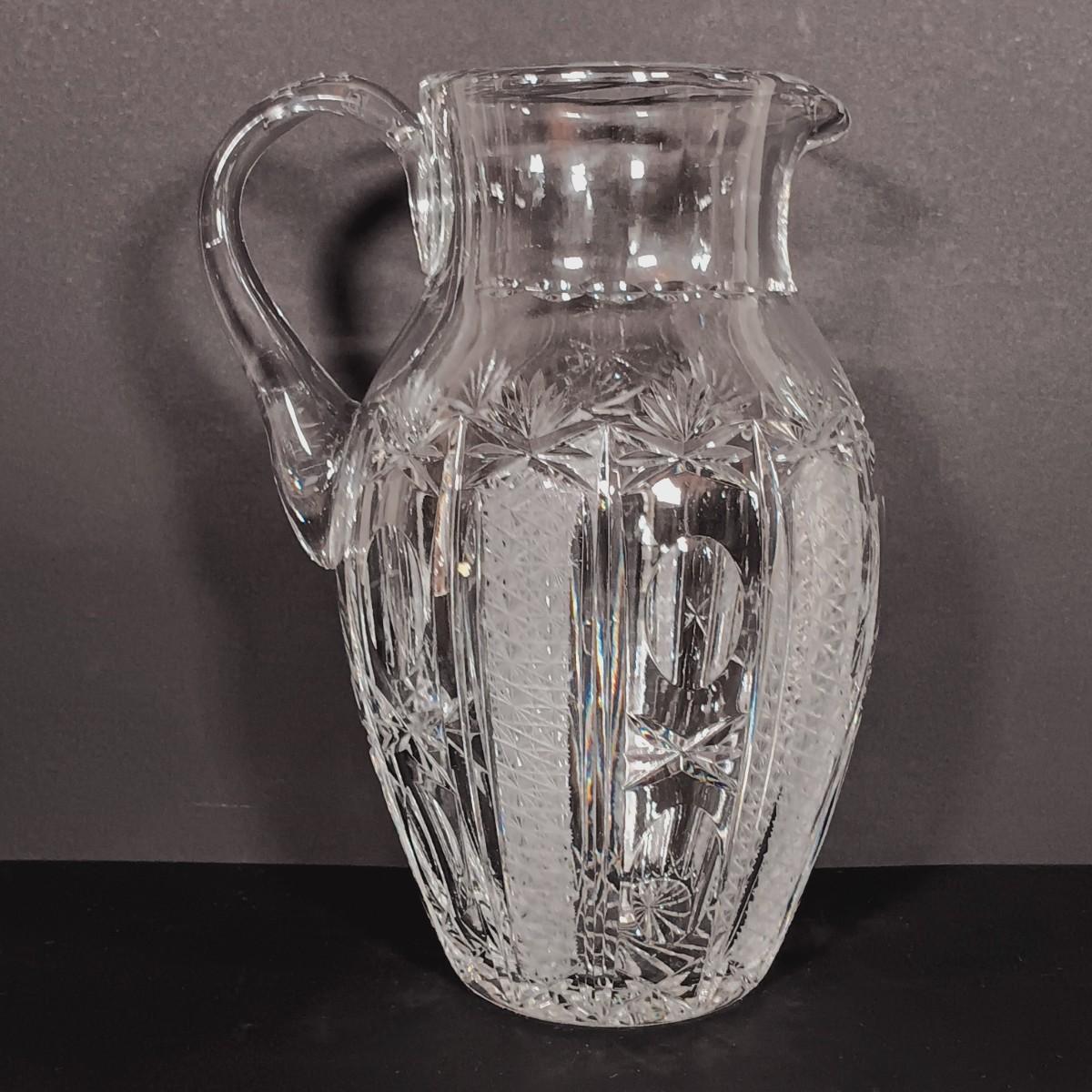 LOT 54: Antique Needlepoint with Crystal Decanters and Pitcher