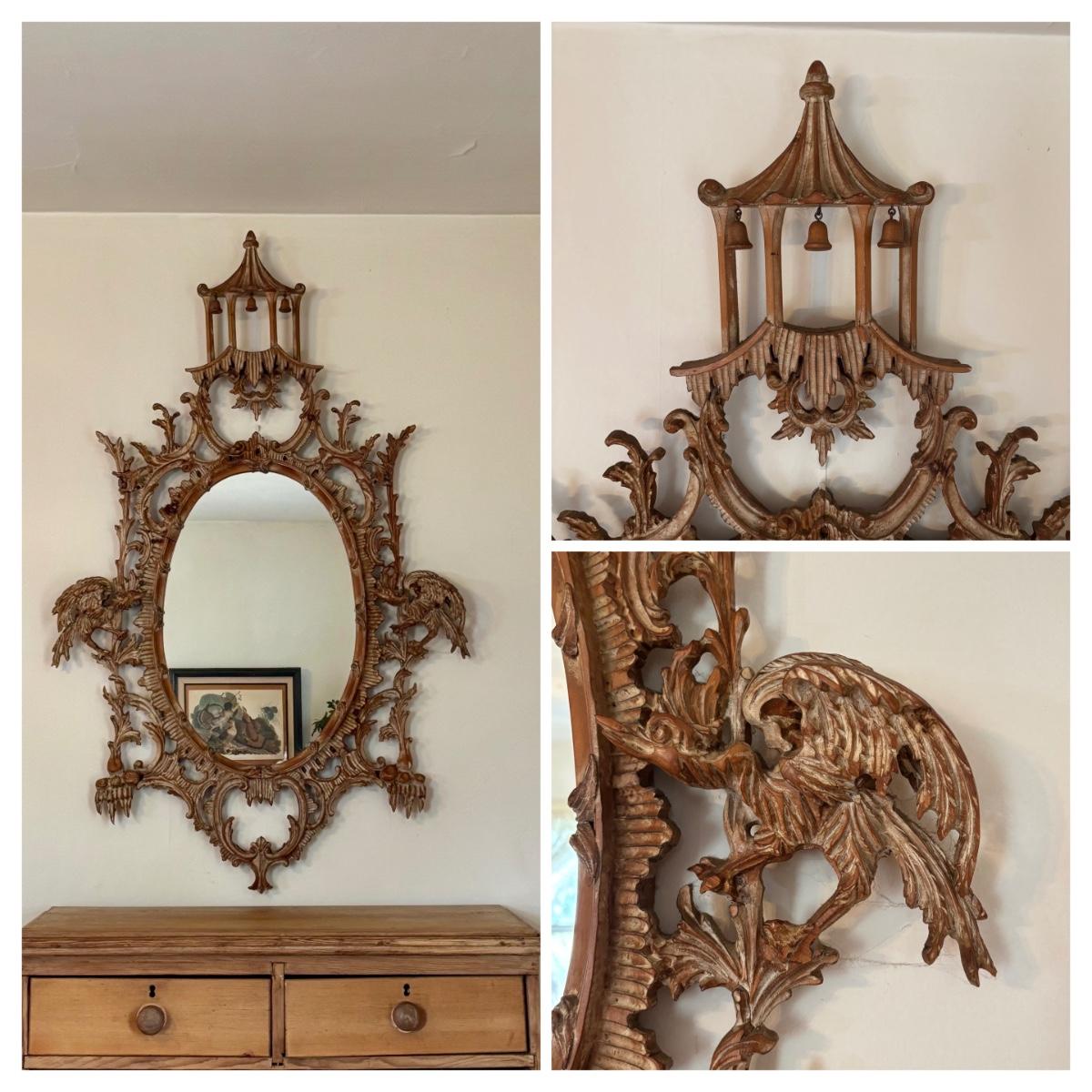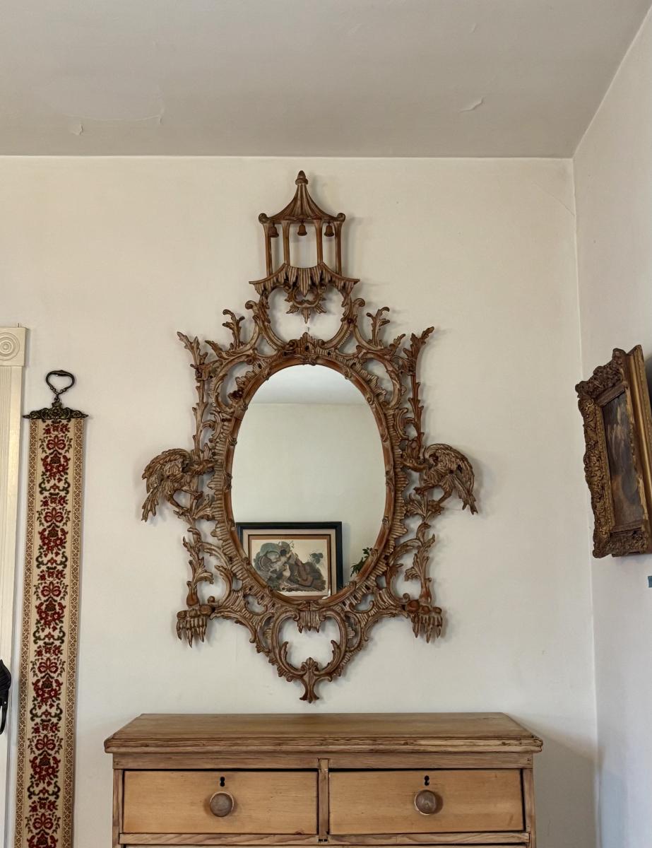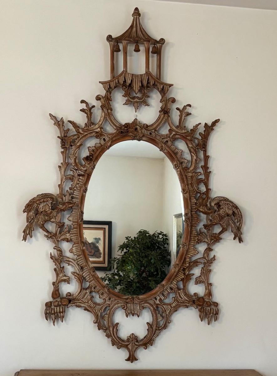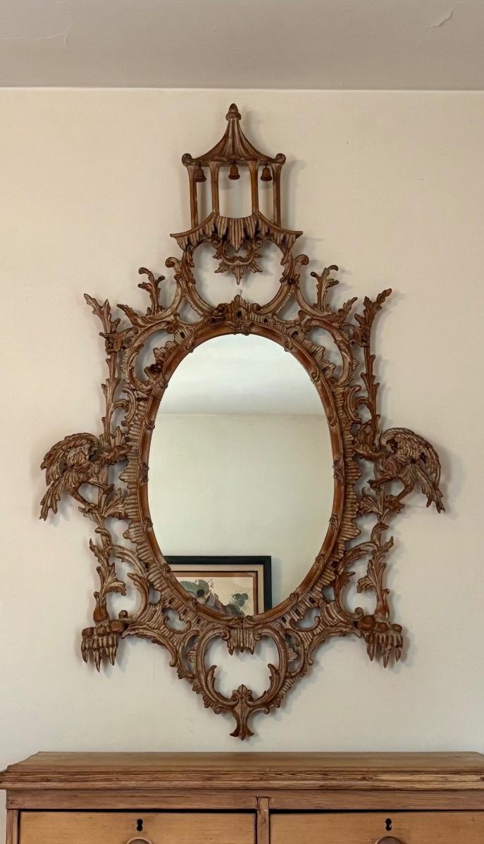 LOT 56: Vintage Chippendale Pogoda Ornate Oval Mirror, Made in Italy