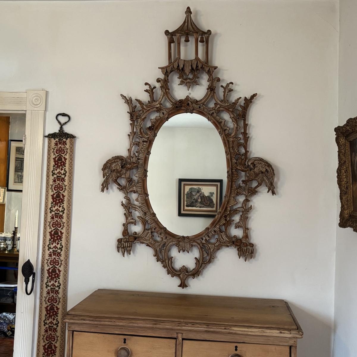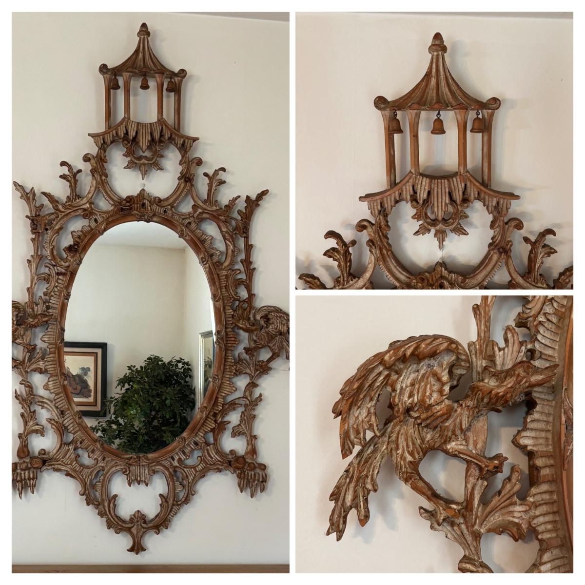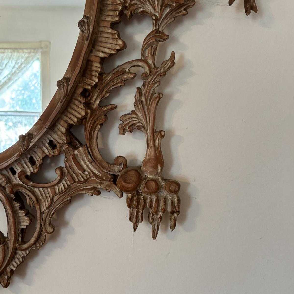 LOT 56: Vintage Chippendale Pogoda Ornate Oval Mirror, Made in Italy