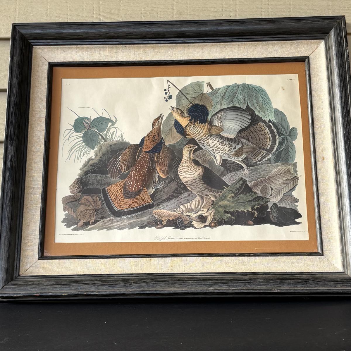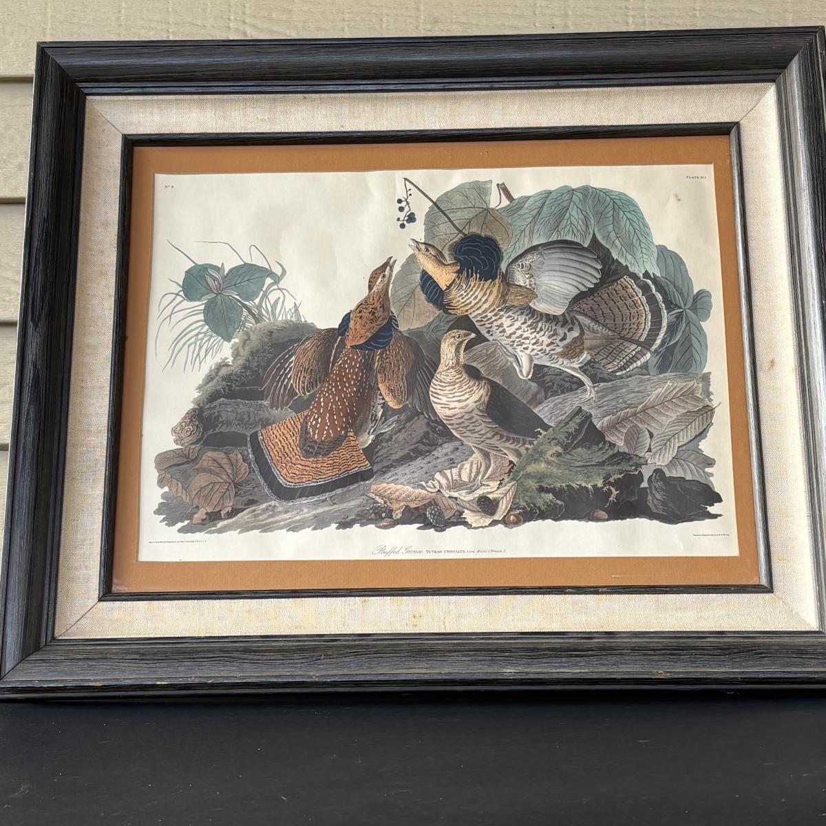 LOT 61: Vintage Framed Ruffled Grouse Print:: Engraved/Printed/Coloured by R.Havell