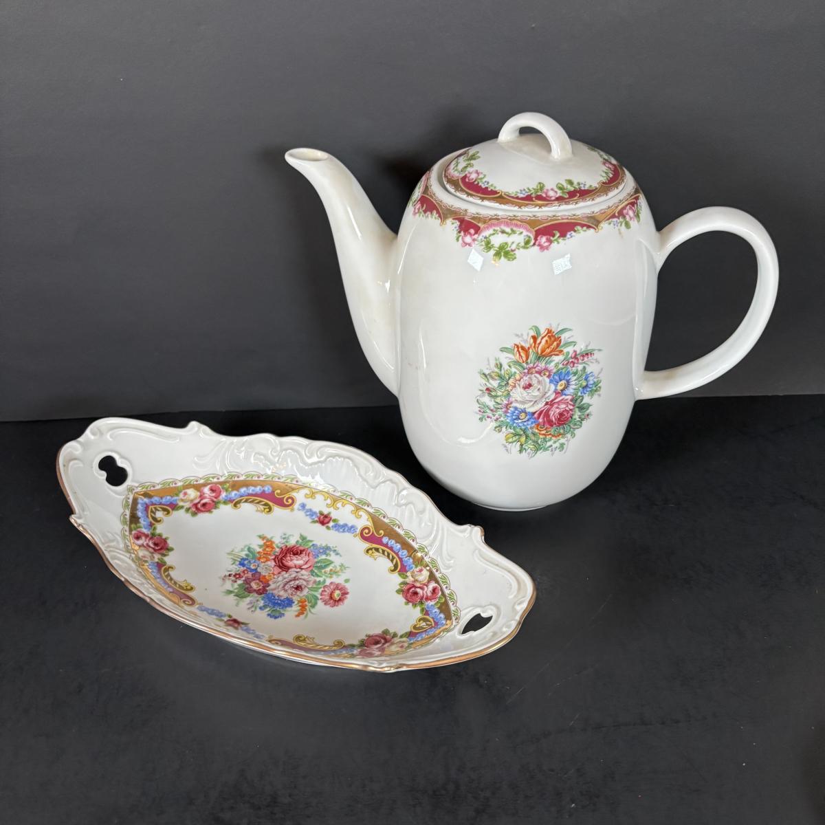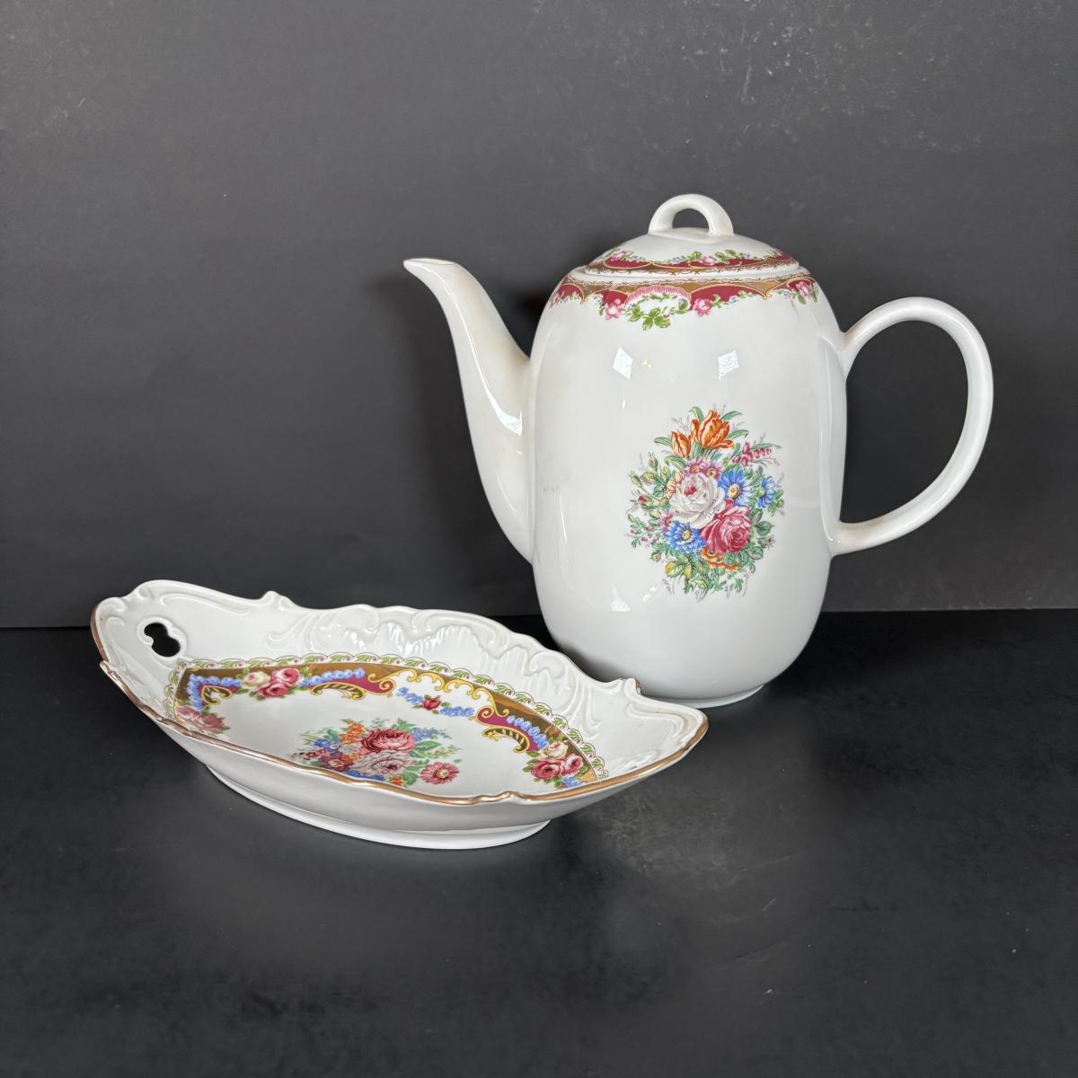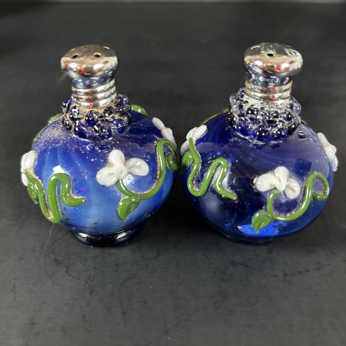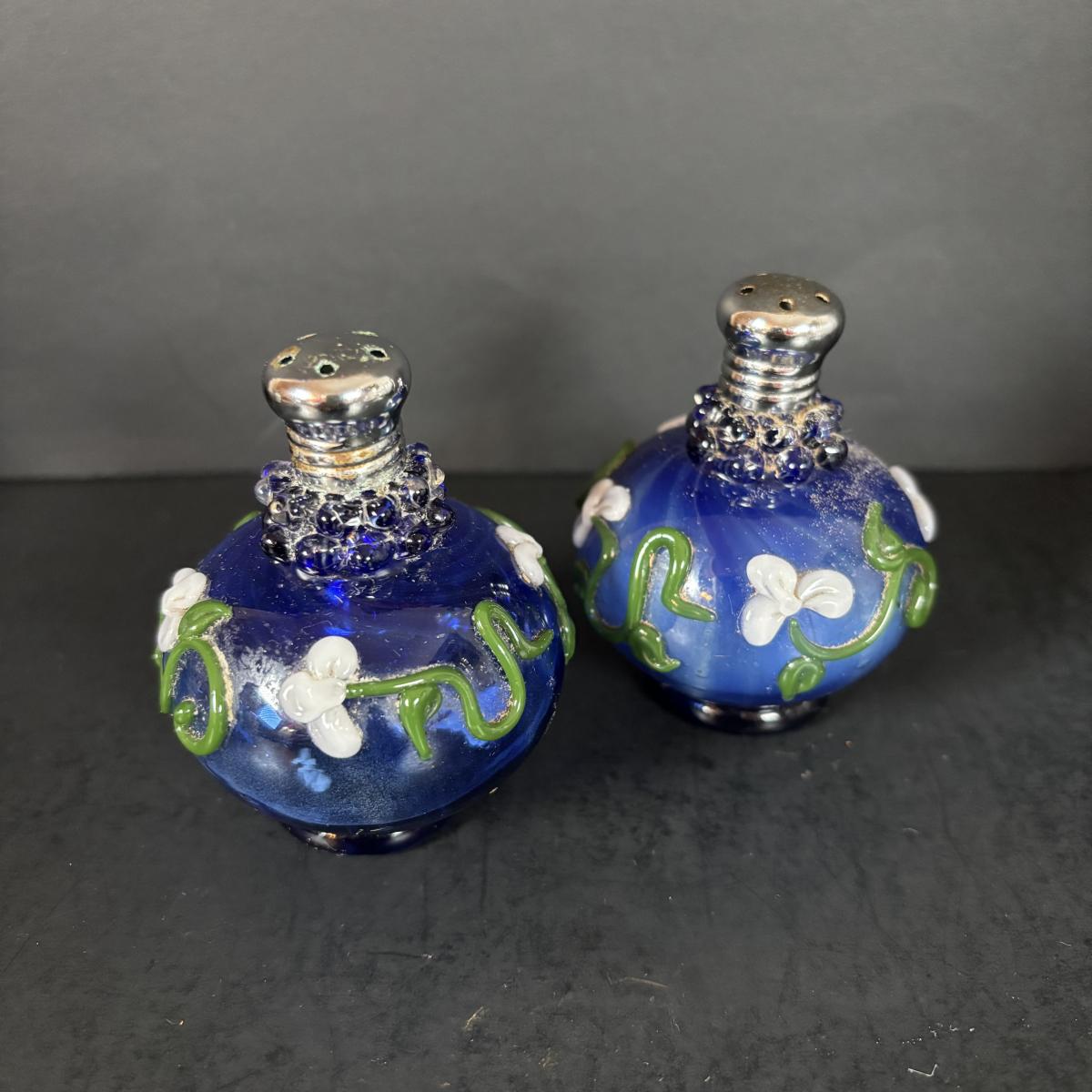 LOT 69: Royal Brierley Etched Sugar Shaker, Hand Blower Blue Salt/Pepper Shakers, Royal Worchester Egg Coddlers, Limoges
