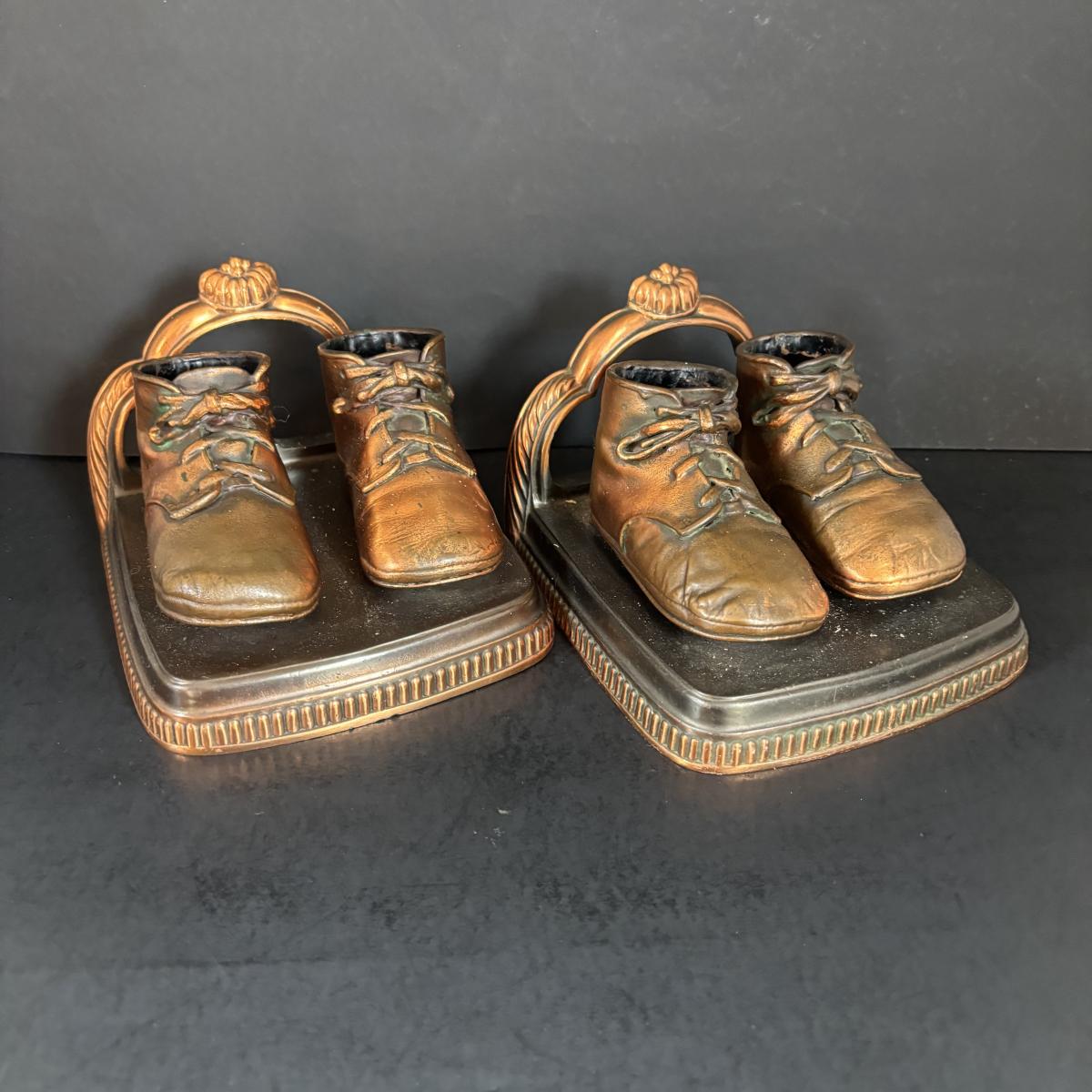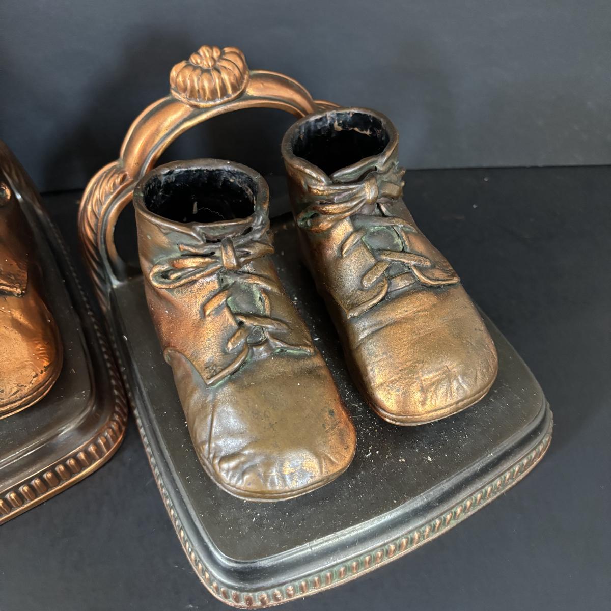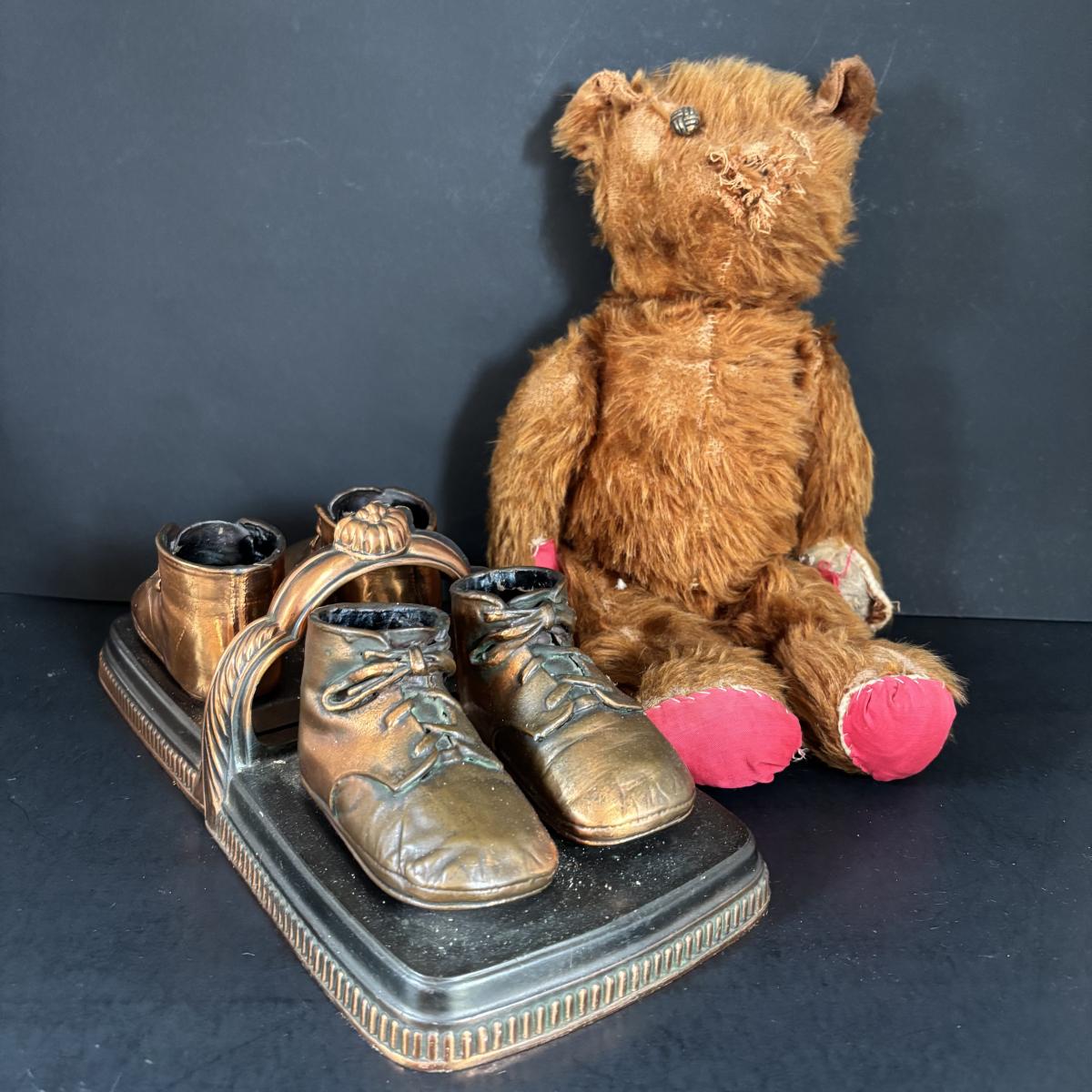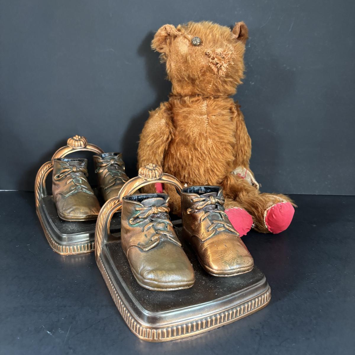 LOT 73: Very Vintage Well Loved Teddy Bear & Bronze Shoe Bookends